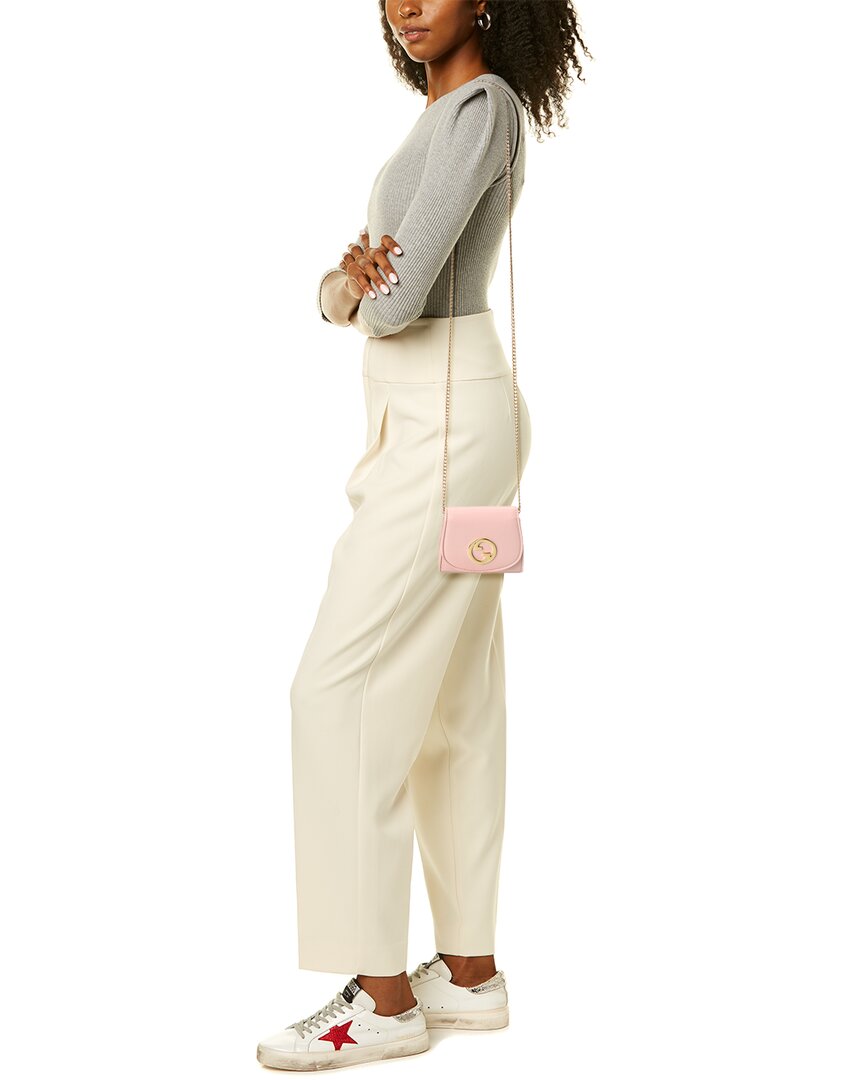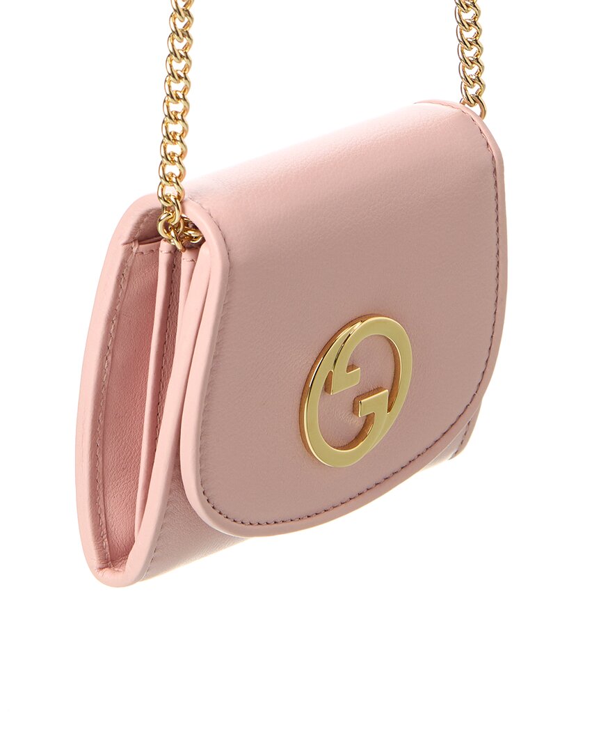 • Blondie Medium Leather Wallet On Chain In Pink Leather And Light Fine Gold Hardware With Interlocking G Logo Accent