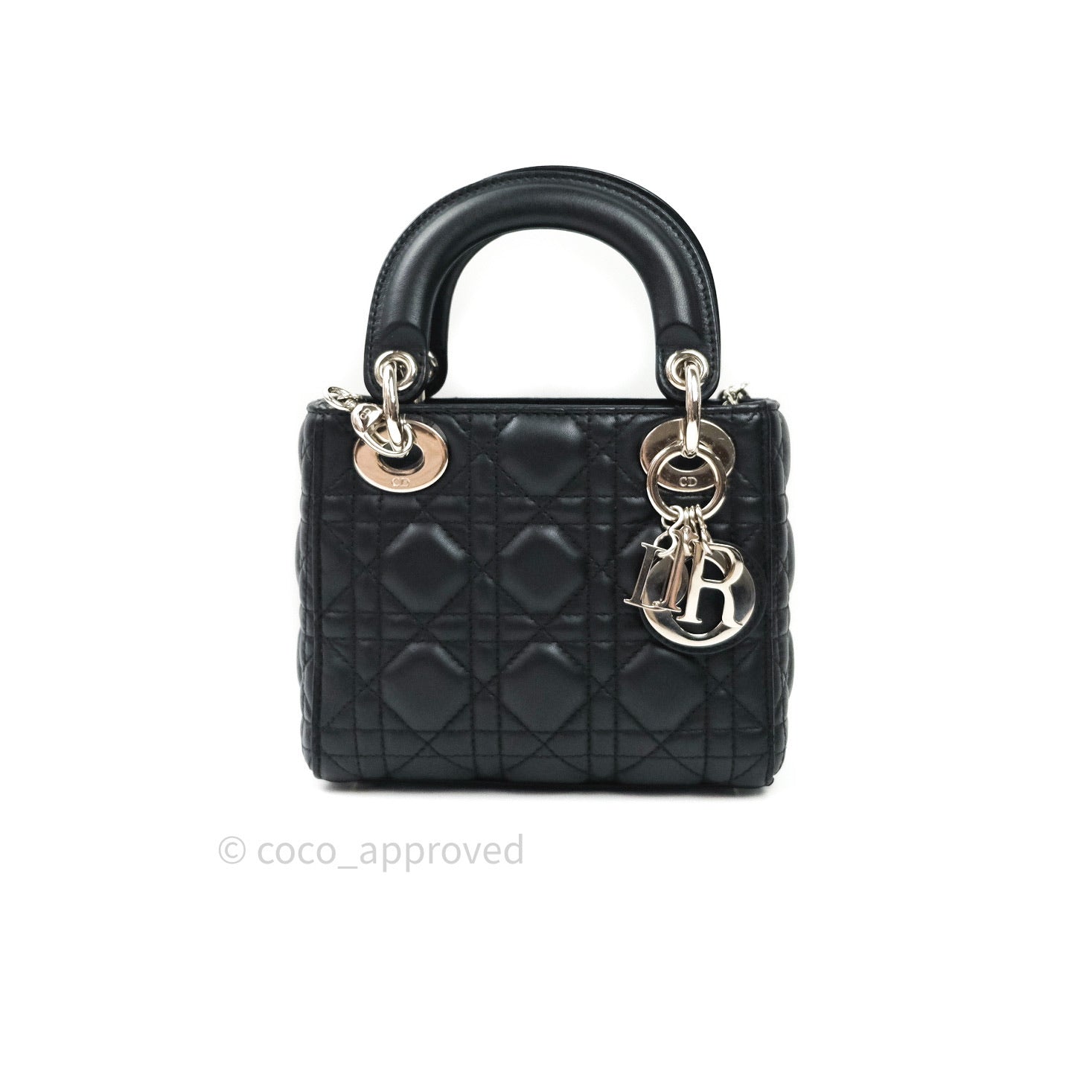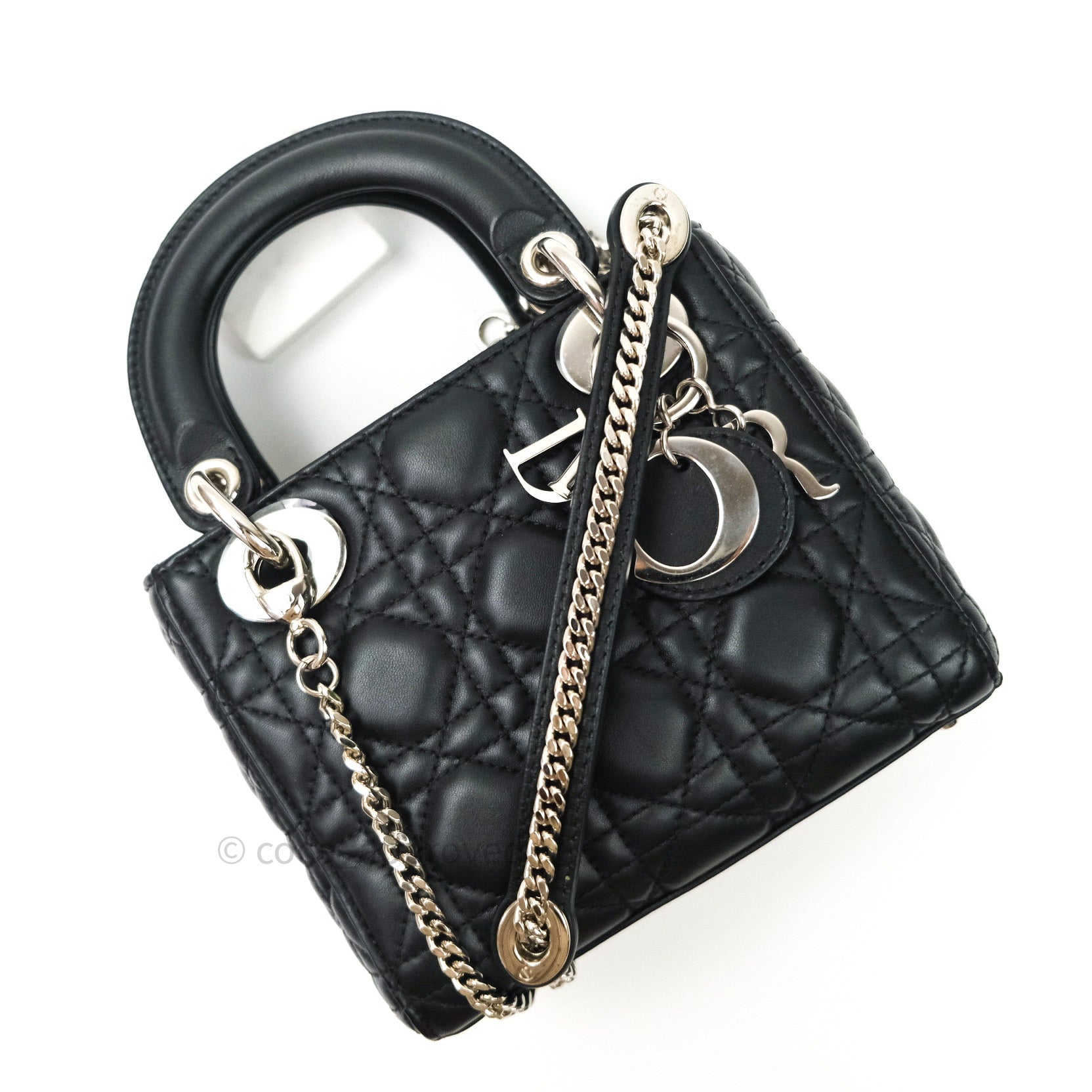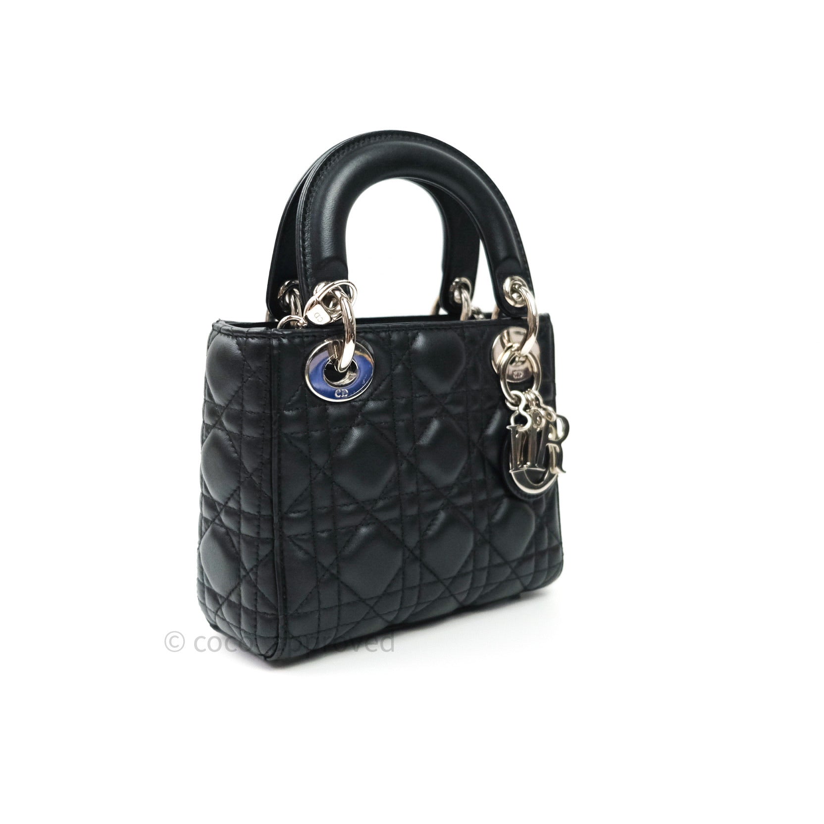Christian Dior Cannage Mini Lady Dior Black Silver Hardware