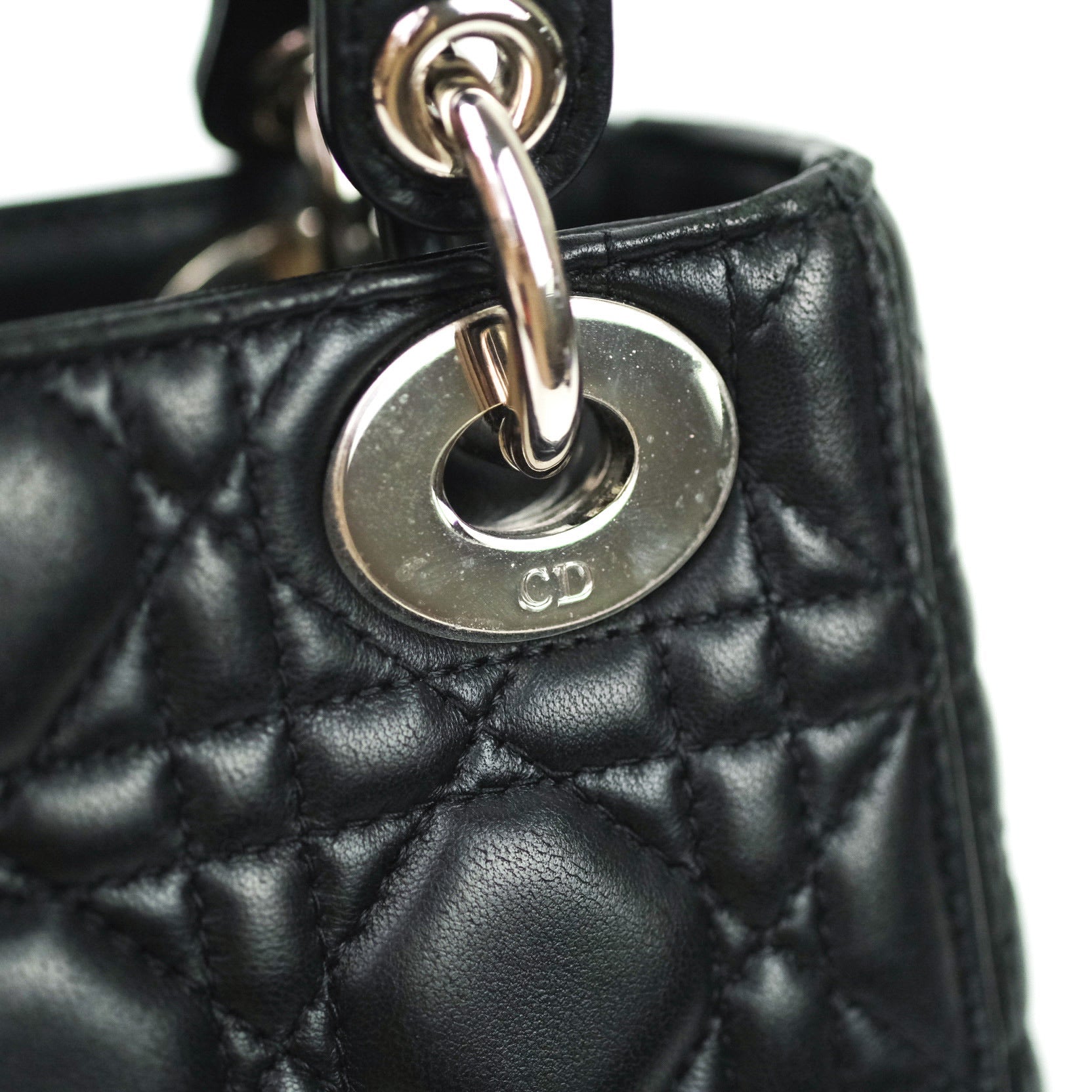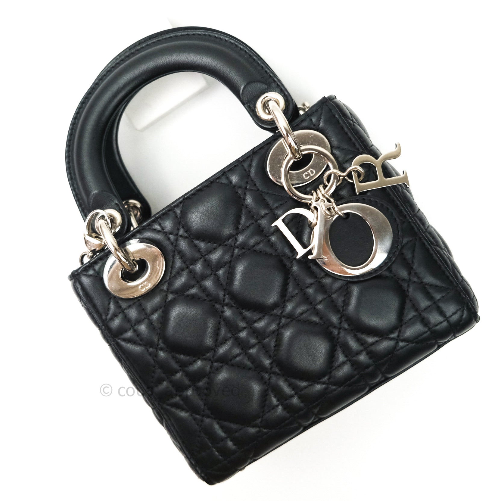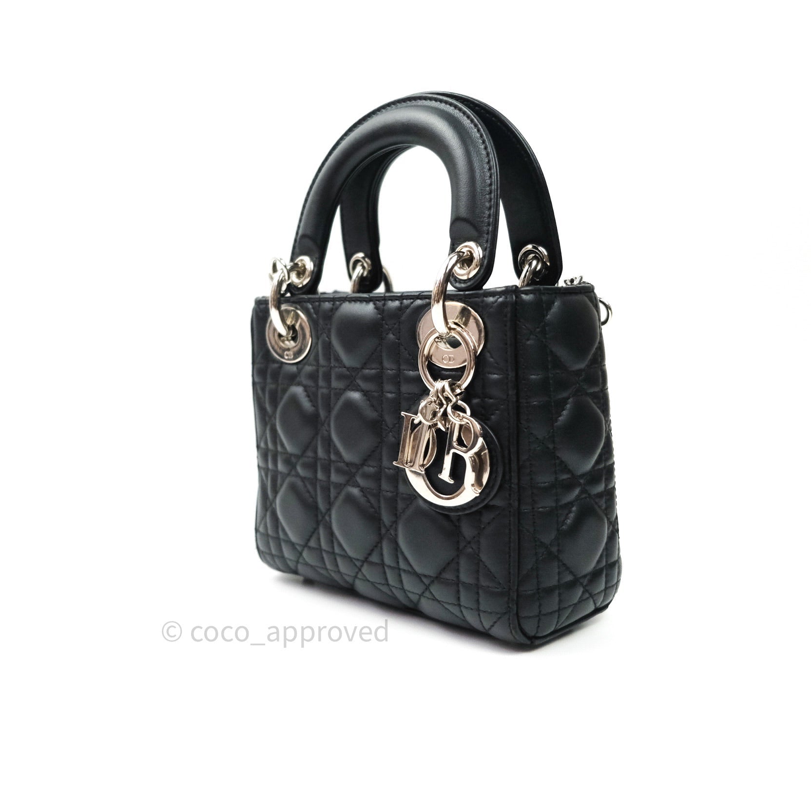 Christian Dior Cannage Mini Lady Dior Black Silver Hardware