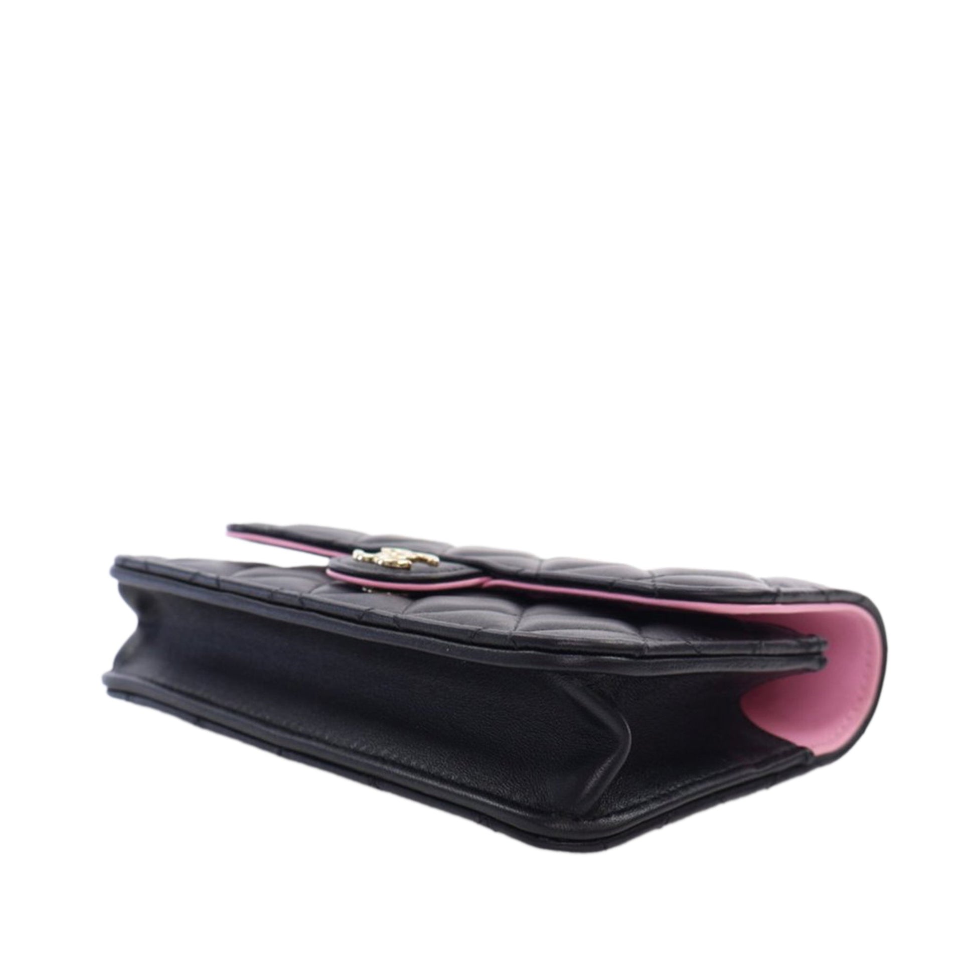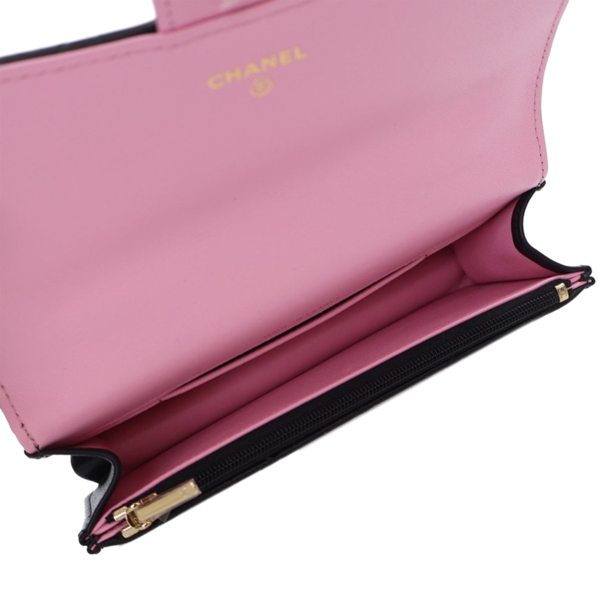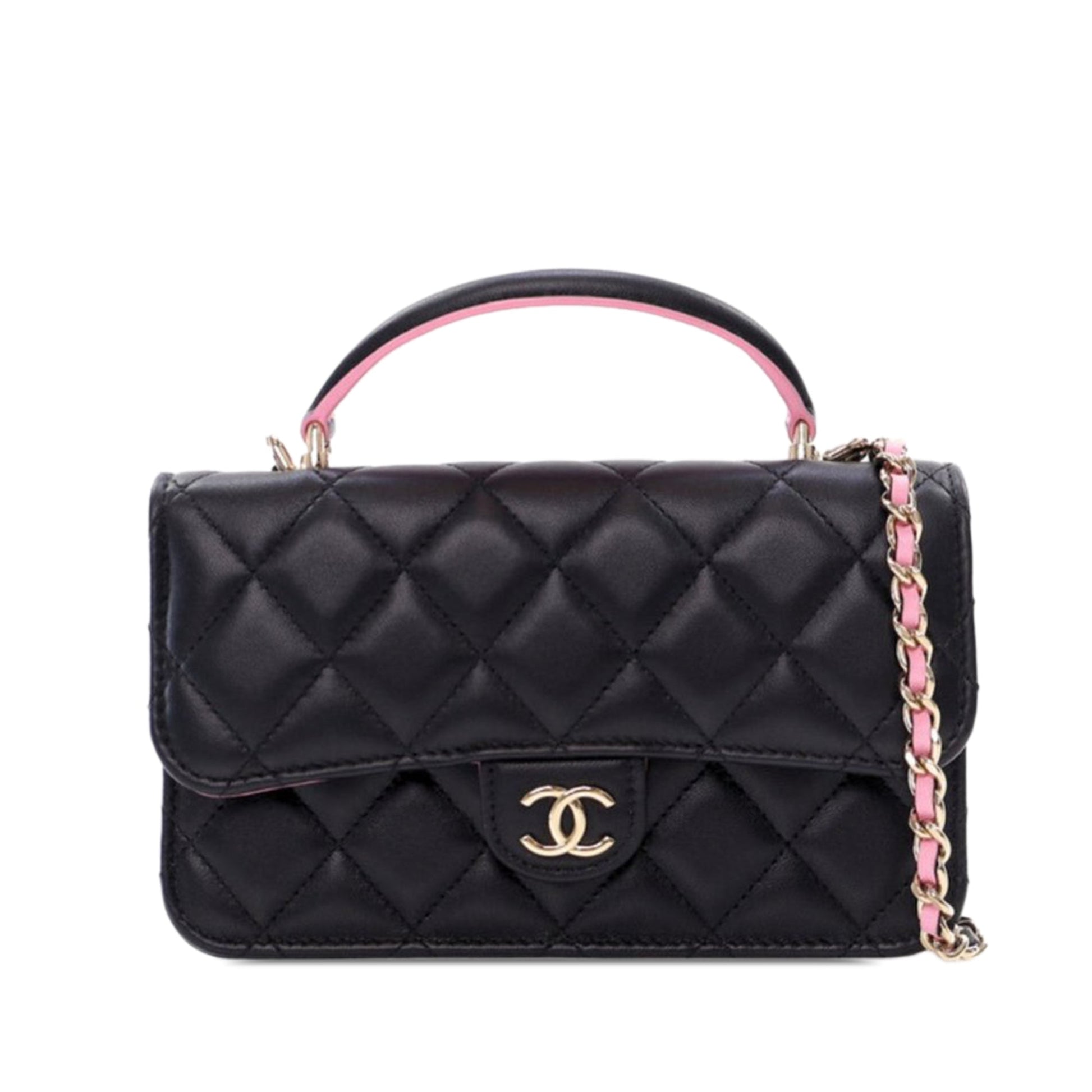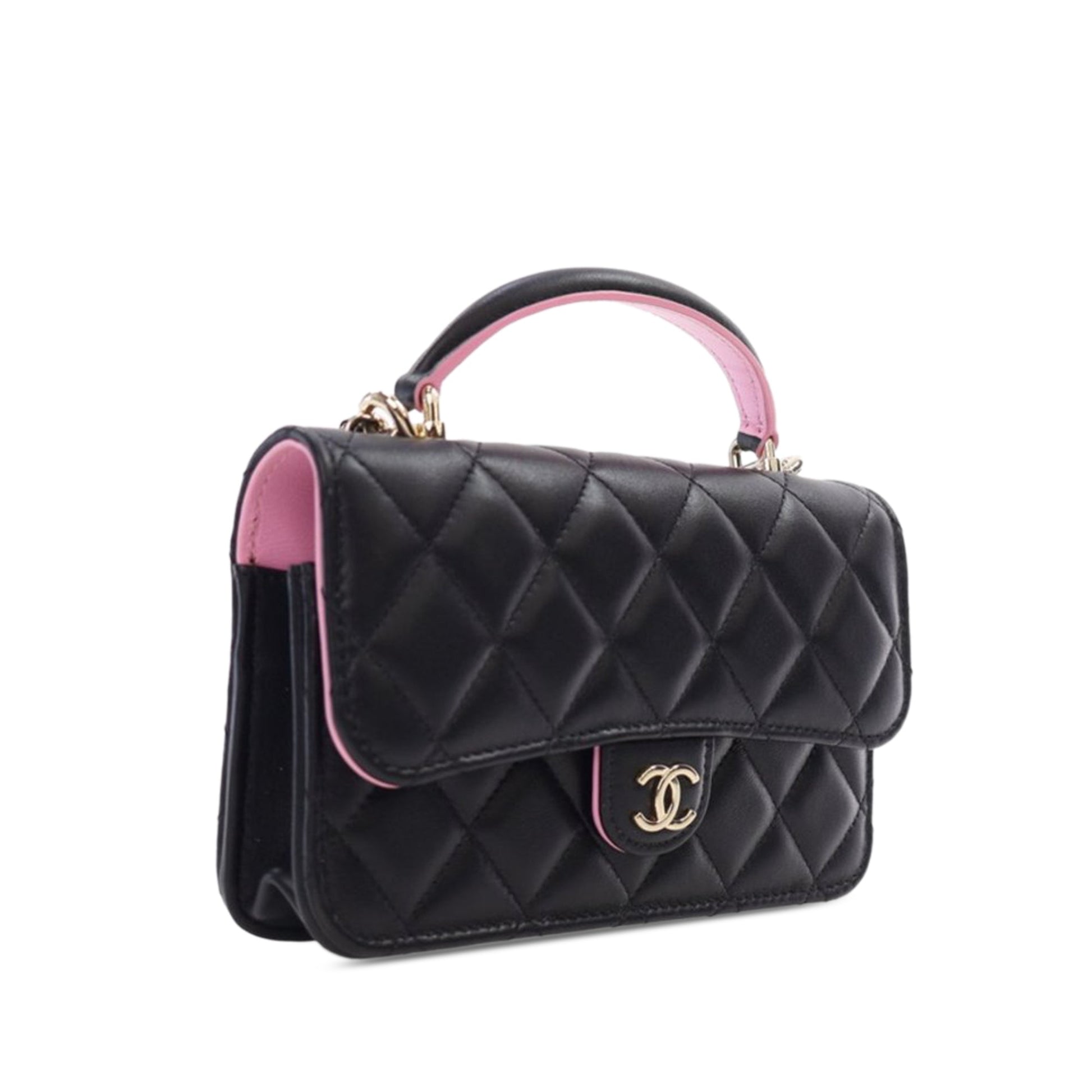 Black Chanel Bicolor Quilted Lambskin Top Handle Phone Holder with Chain Satchel