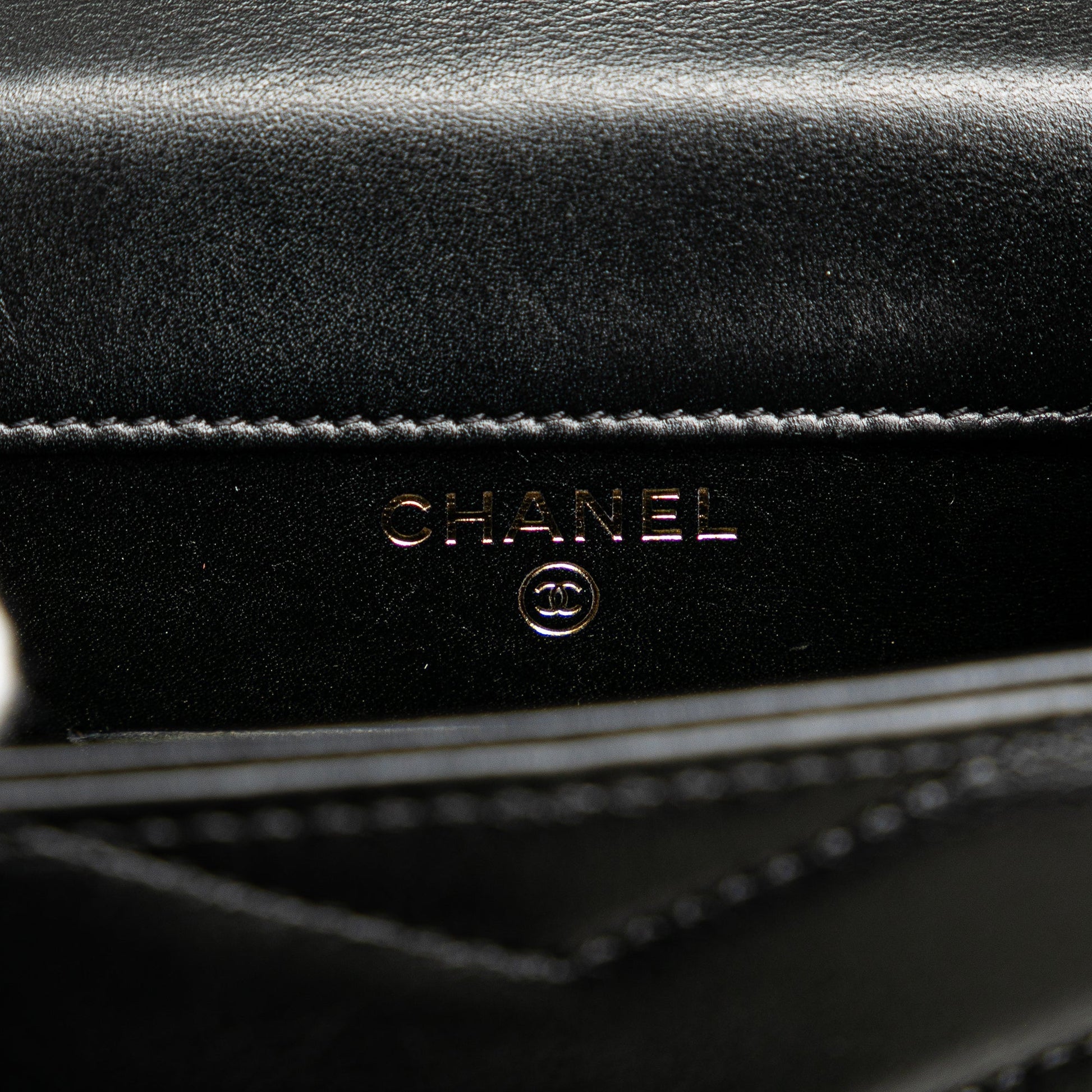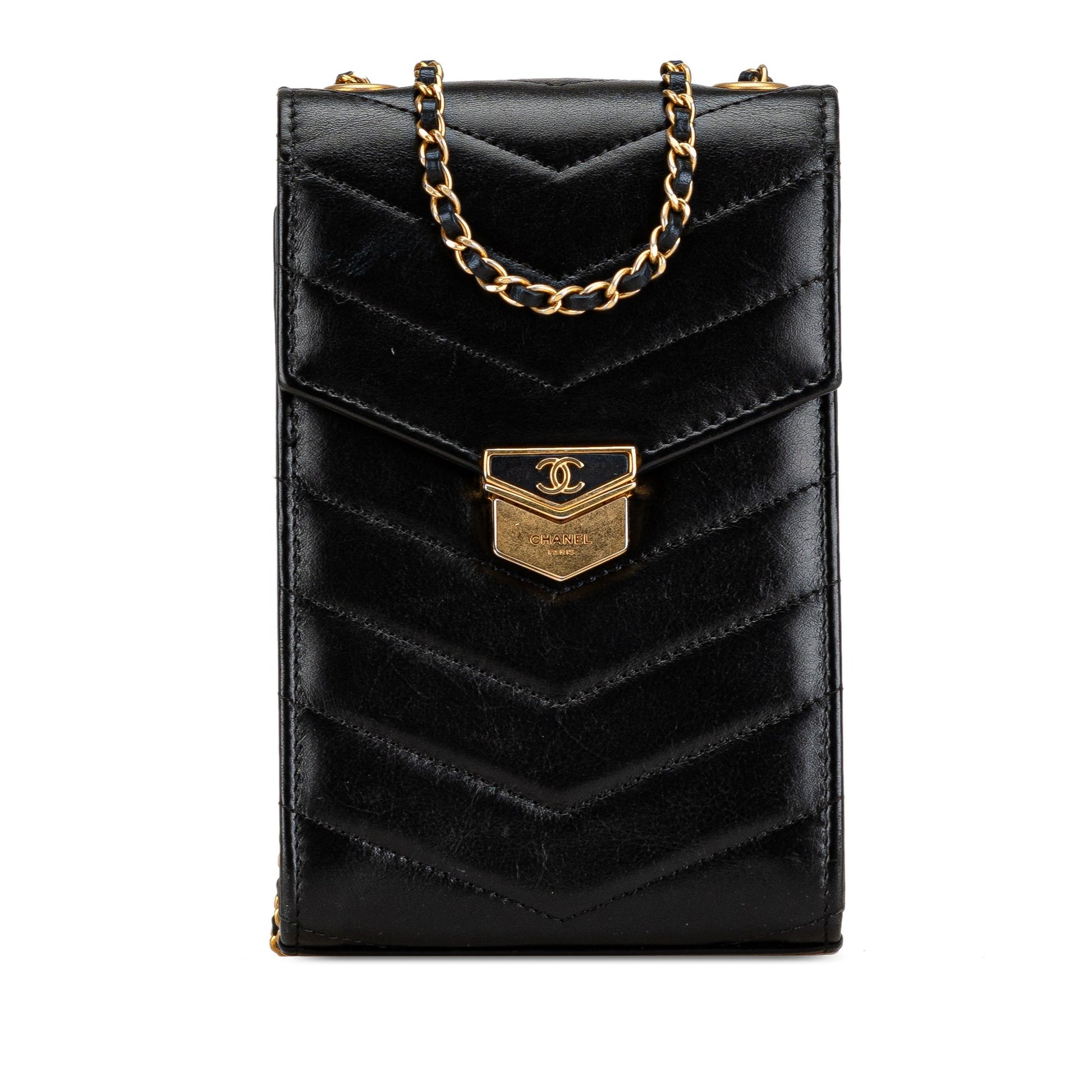 Black Chanel Calfskin CC Chevron Medal Envelope Vertical Clutch With Chain Crossbody Bag
