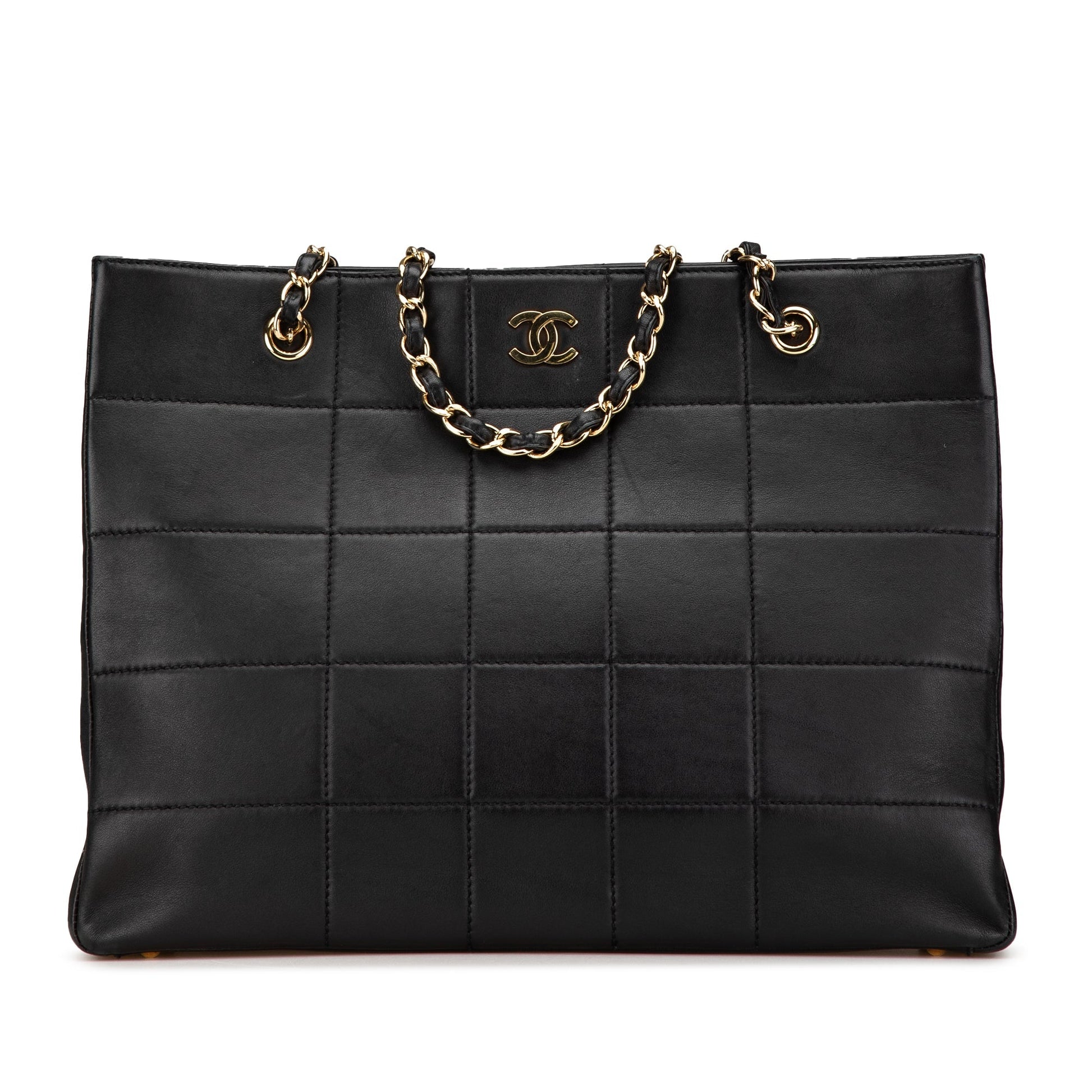Black Chanel Calfskin Choco Bar Chain Shopping Tote
