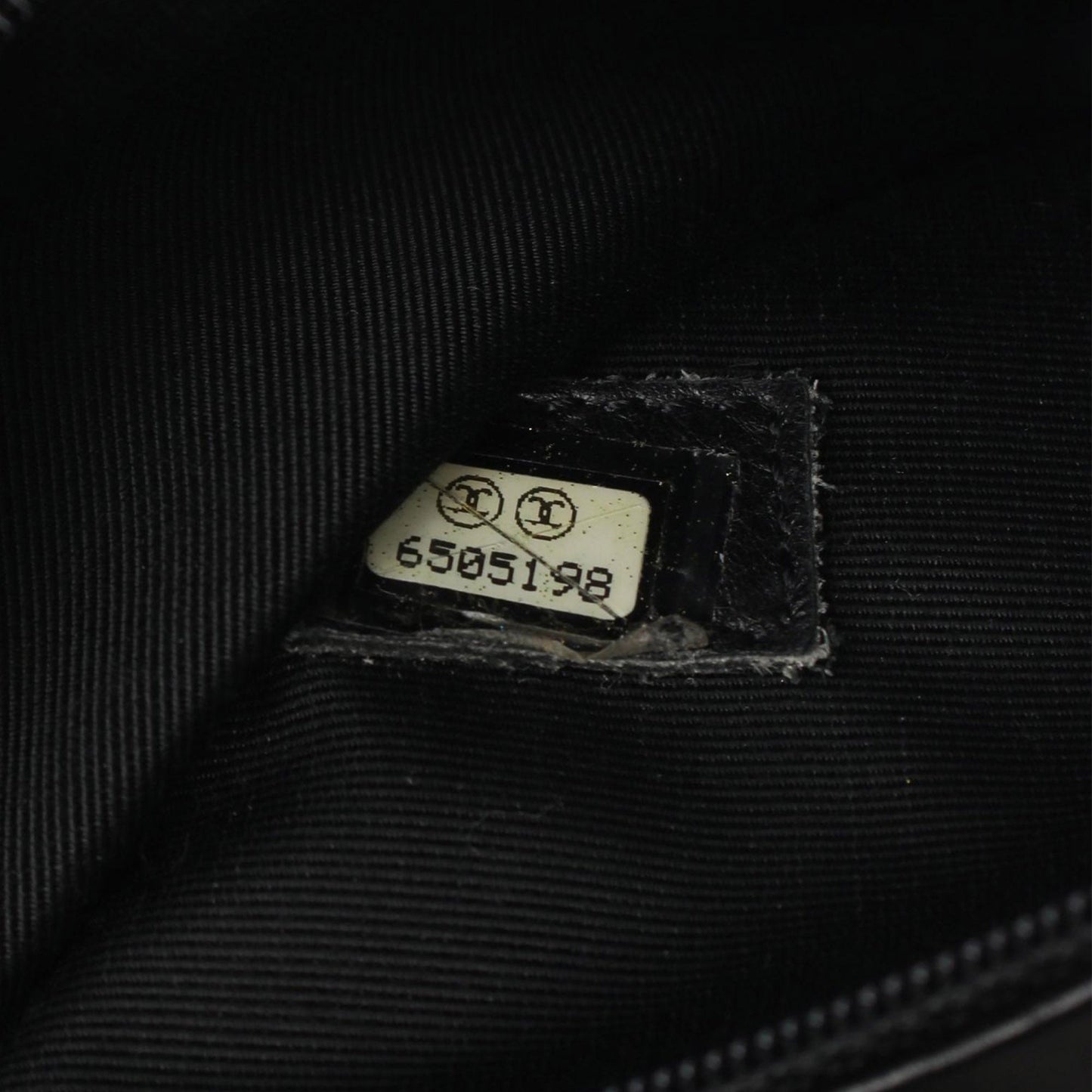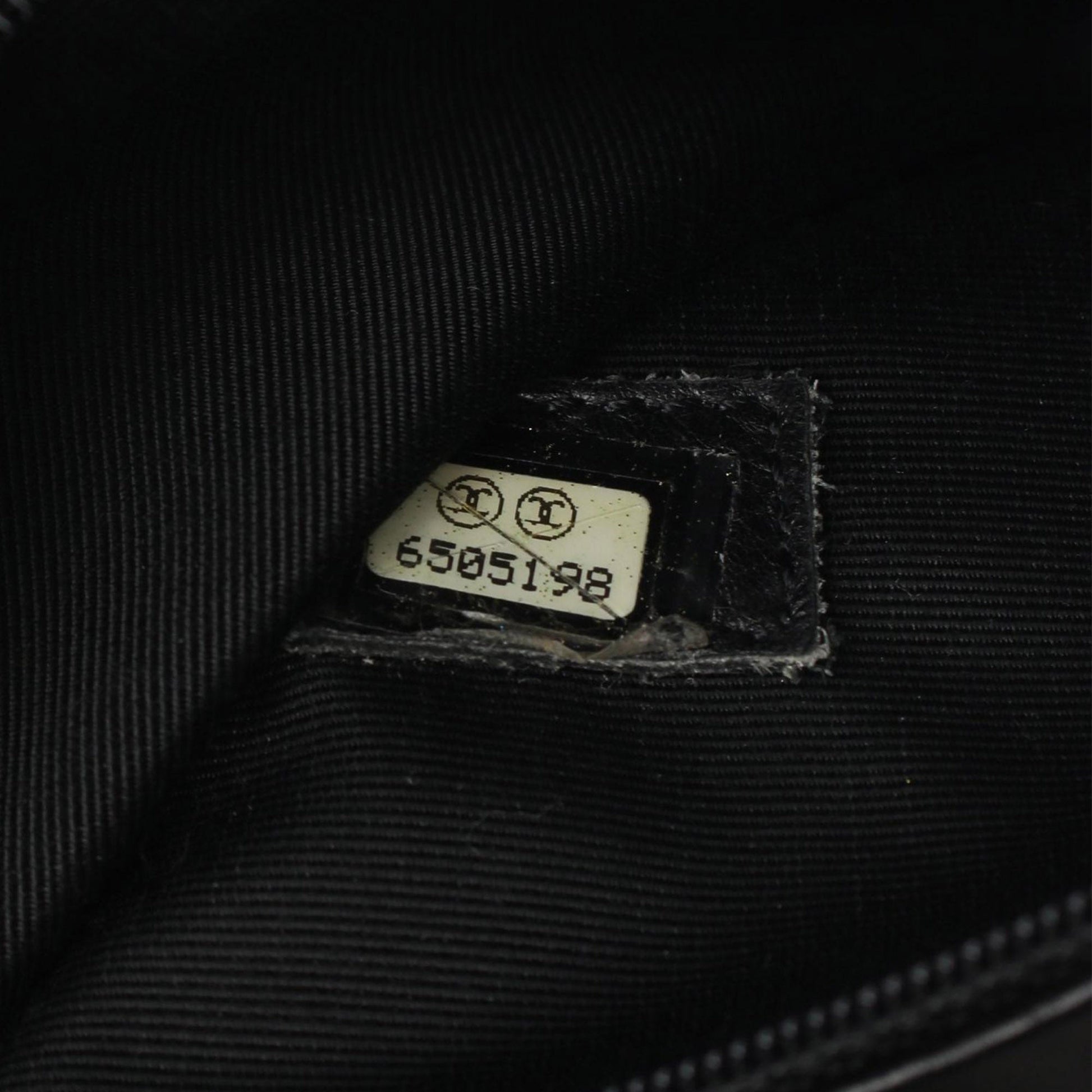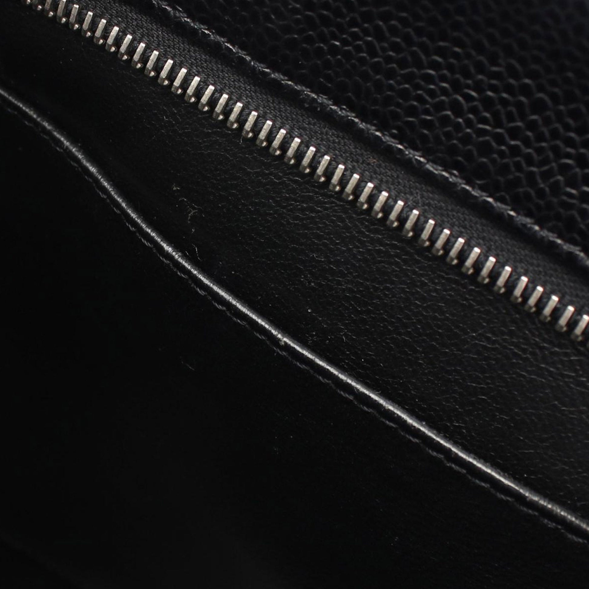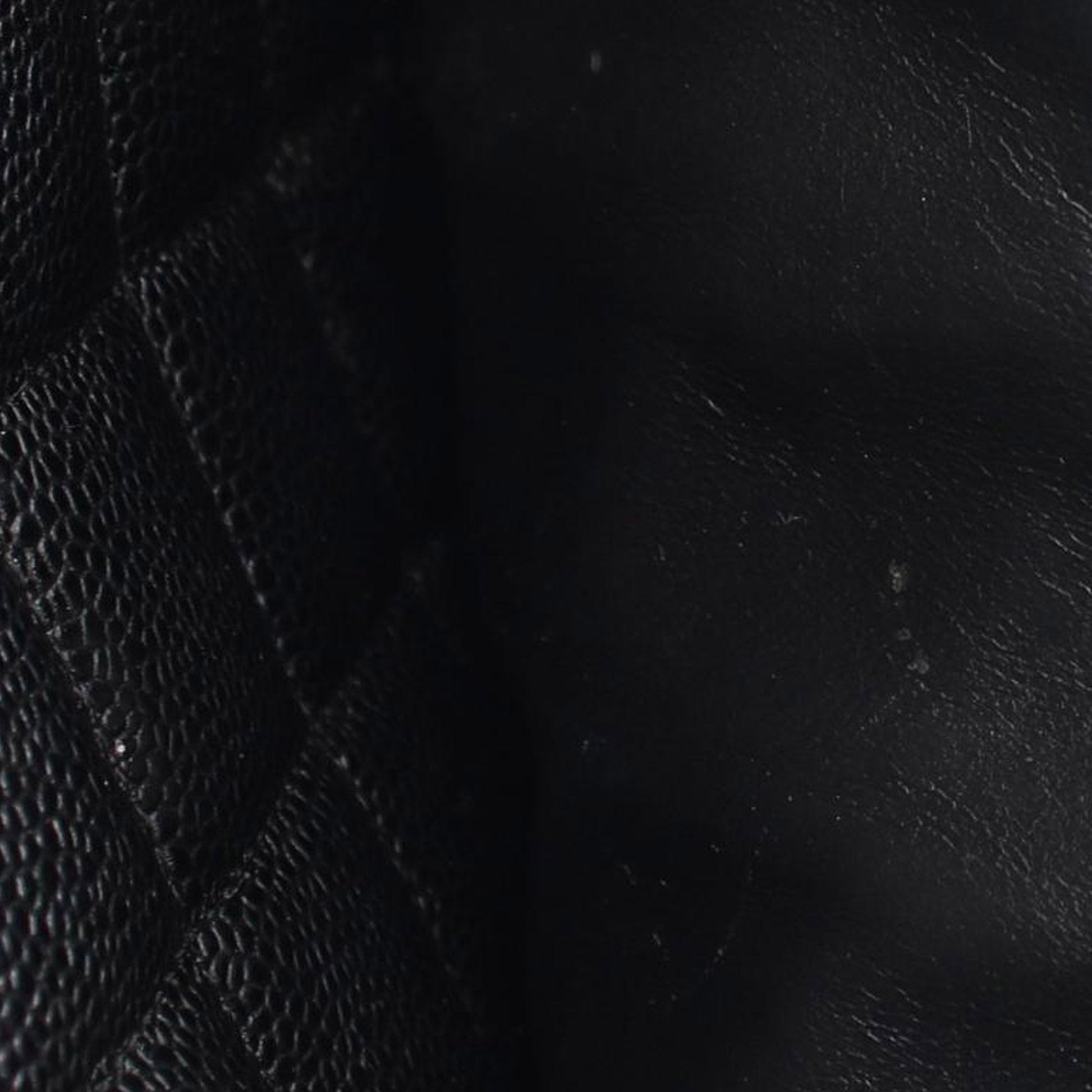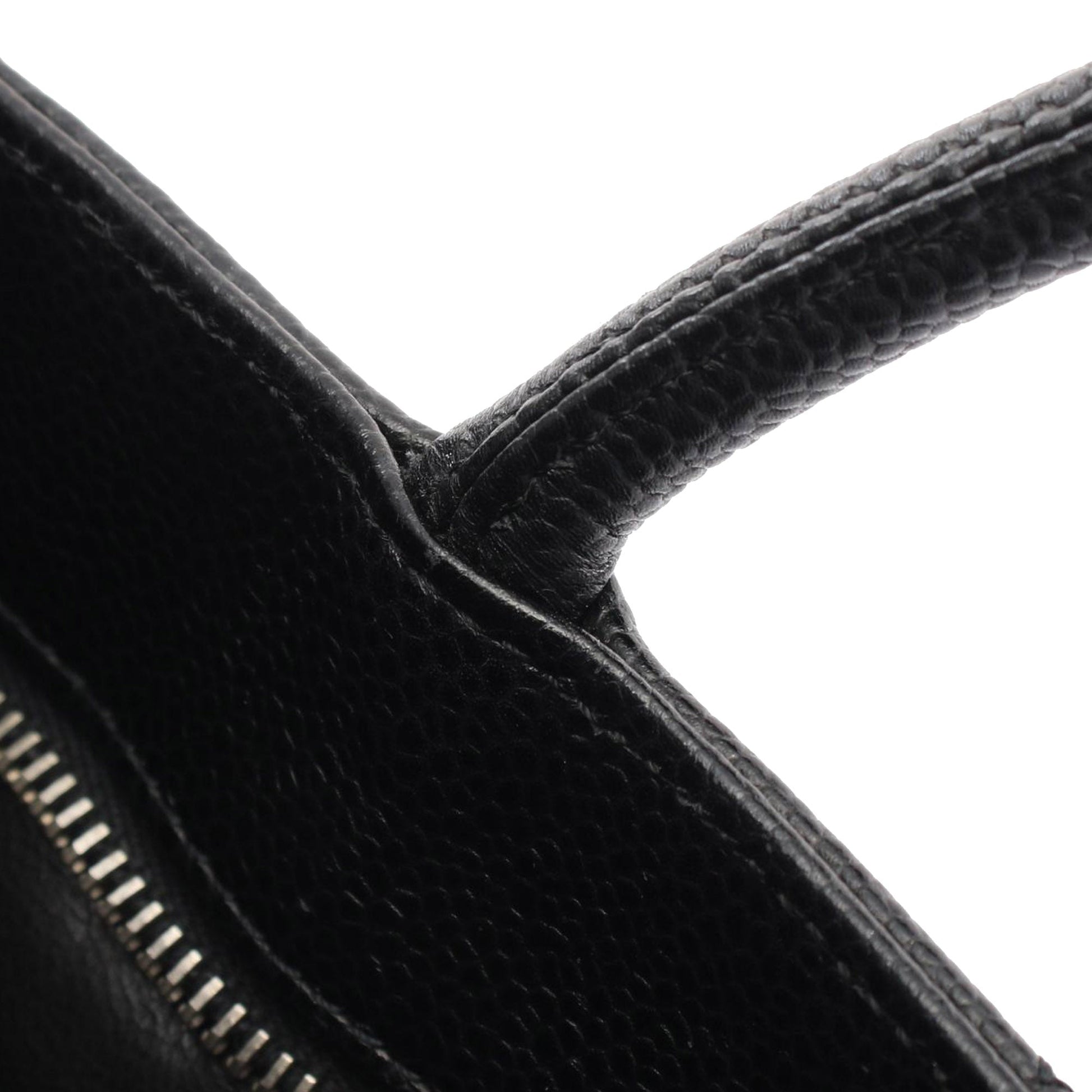 Product Details: Black Chanel Caviar Medallion Tote. The Medallion tote bag features a quilted caviar leather body, rolled leather handles, a top zip closure, an exterior back slip pocket, and interior zip and slip pockets. 9.8" L x 11.8" W x 5.5" D, 5.9" drop. Serial number 6505198.
