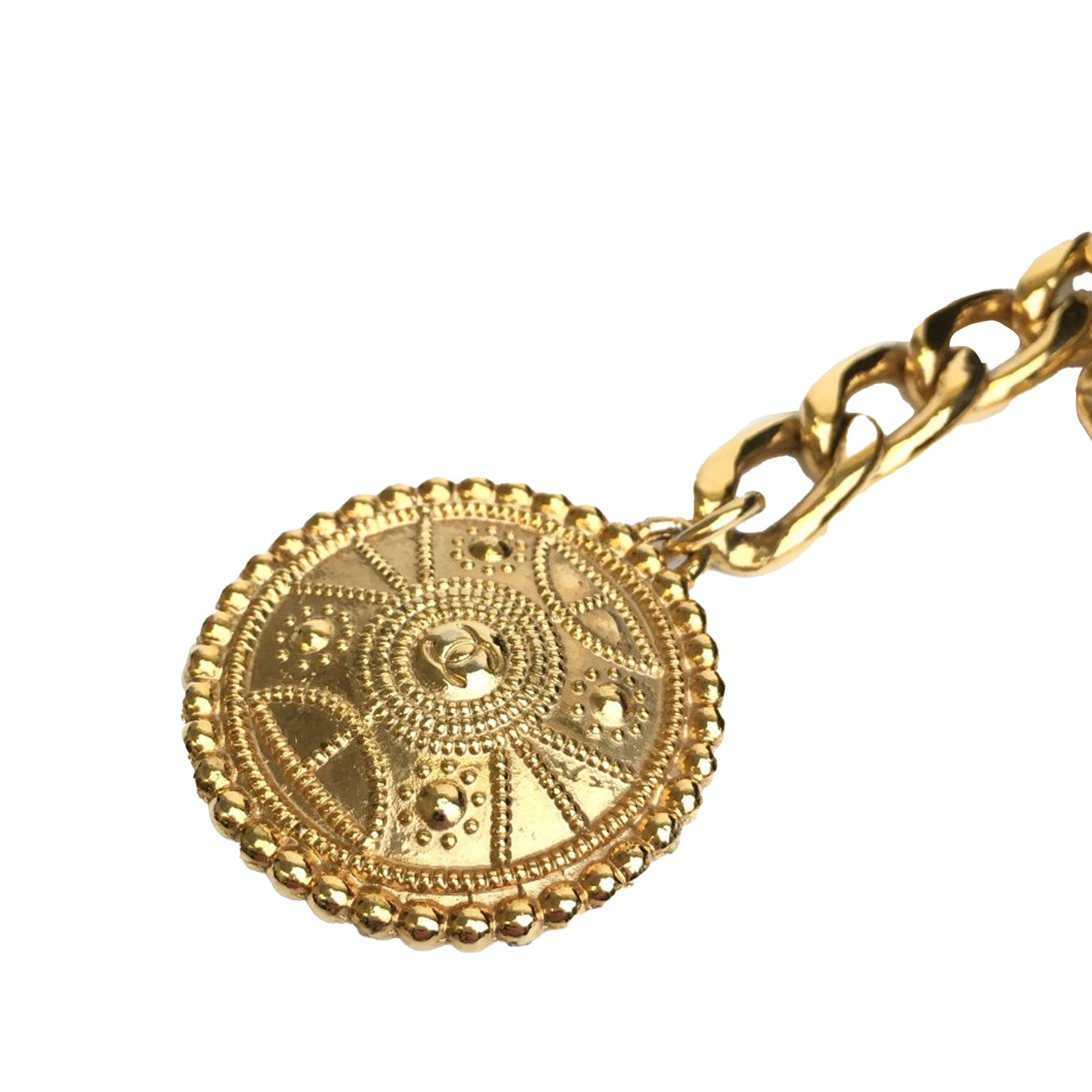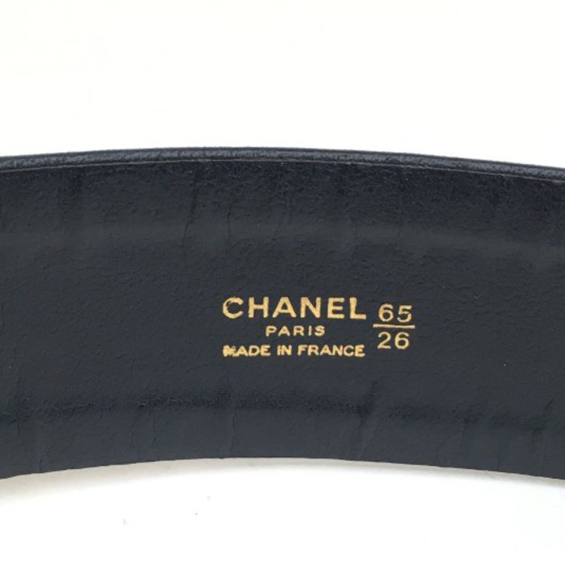 Product Details: Black Chanel CC Lambskin Leather Chain Belt. This belt features a lambskin leather and gold-tone chain and hardware, and a buckle closure. 25.6" L x 10.2" W x 0" D.