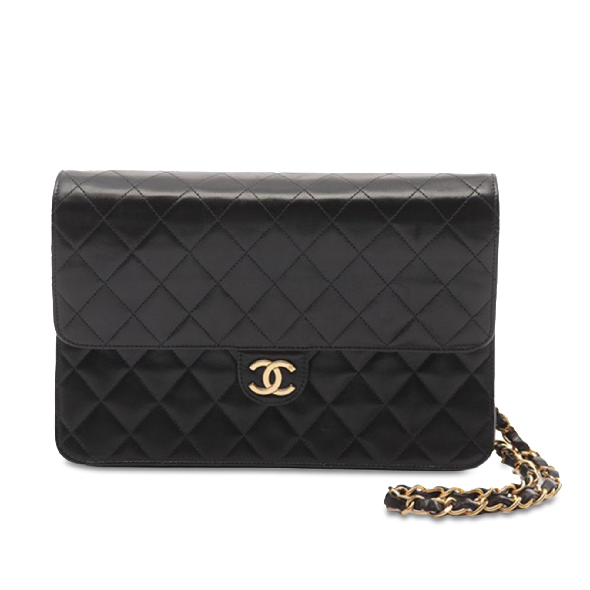 Black Chanel CC Quilted Lambskin Single Flap Crossbody Bag