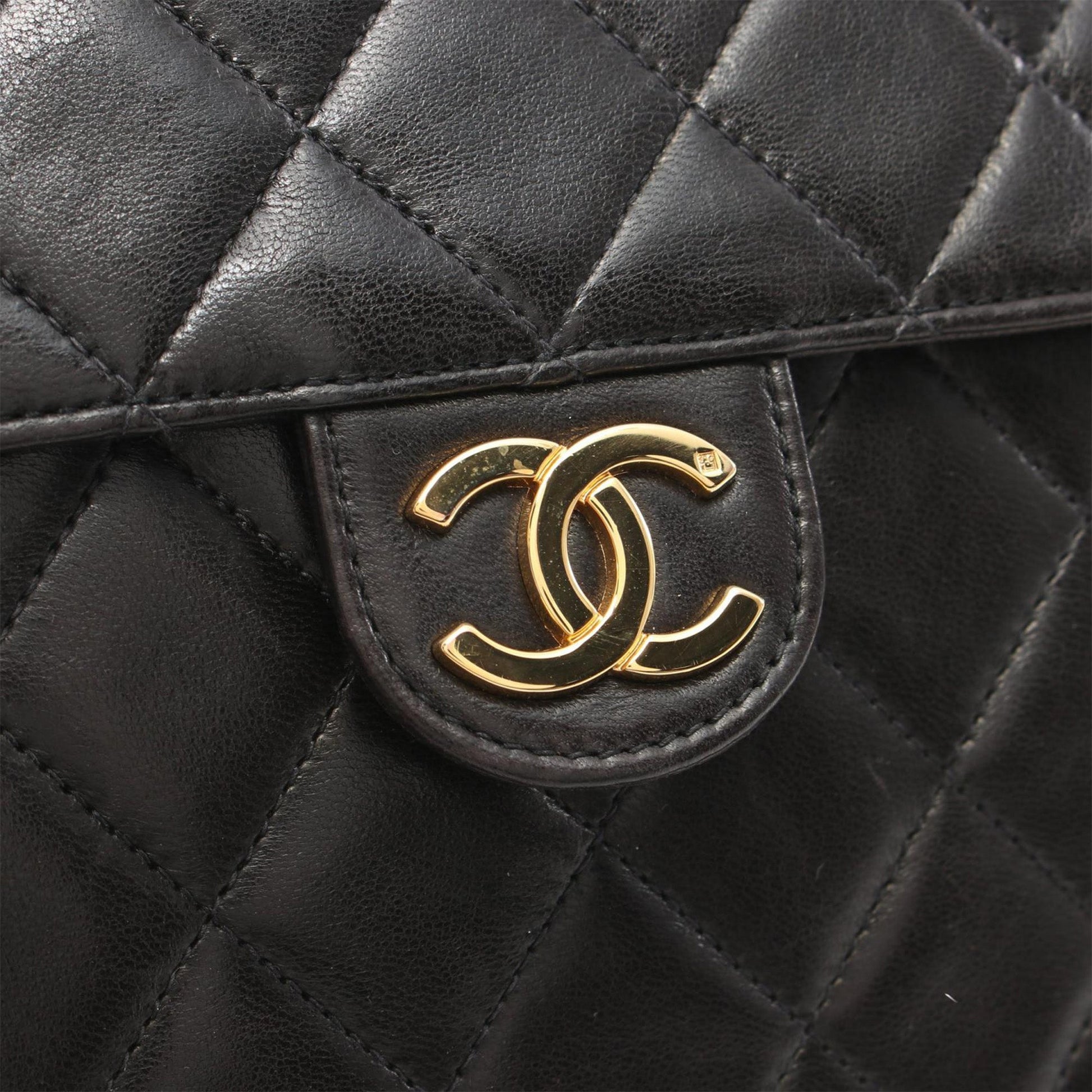 Black Chanel CC Quilted Lambskin Single Flap Crossbody Bag