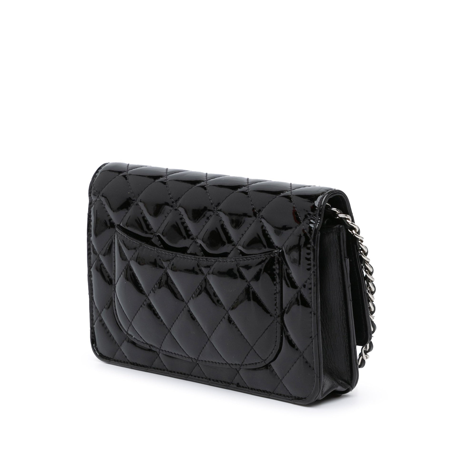Black Chanel CC Quilted Patent Wallet On Chain Crossbody Bag