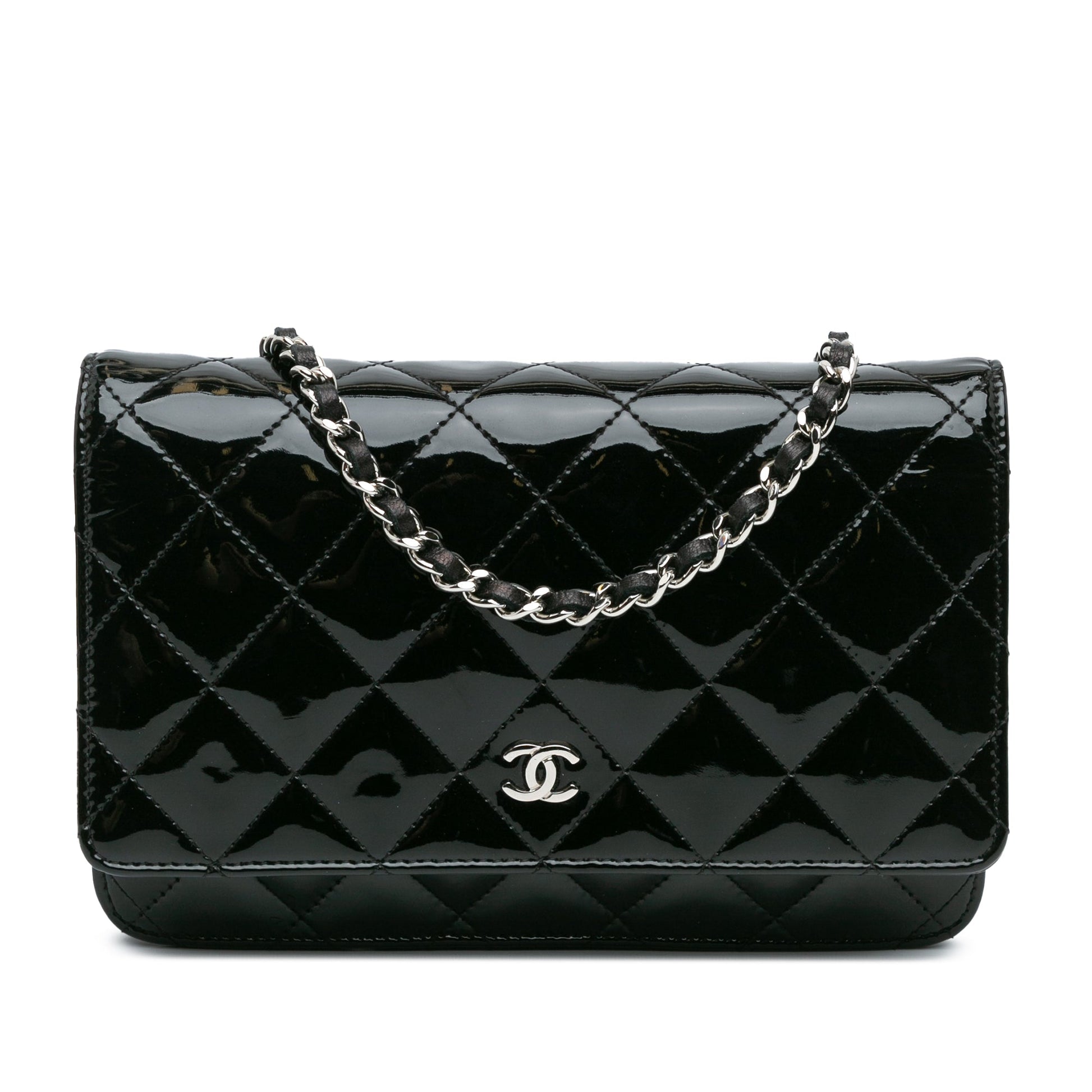 Black Chanel CC Quilted Patent Wallet On Chain Crossbody Bag