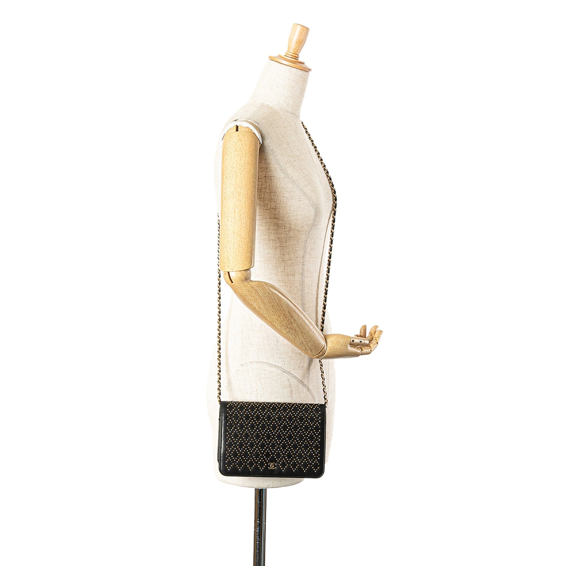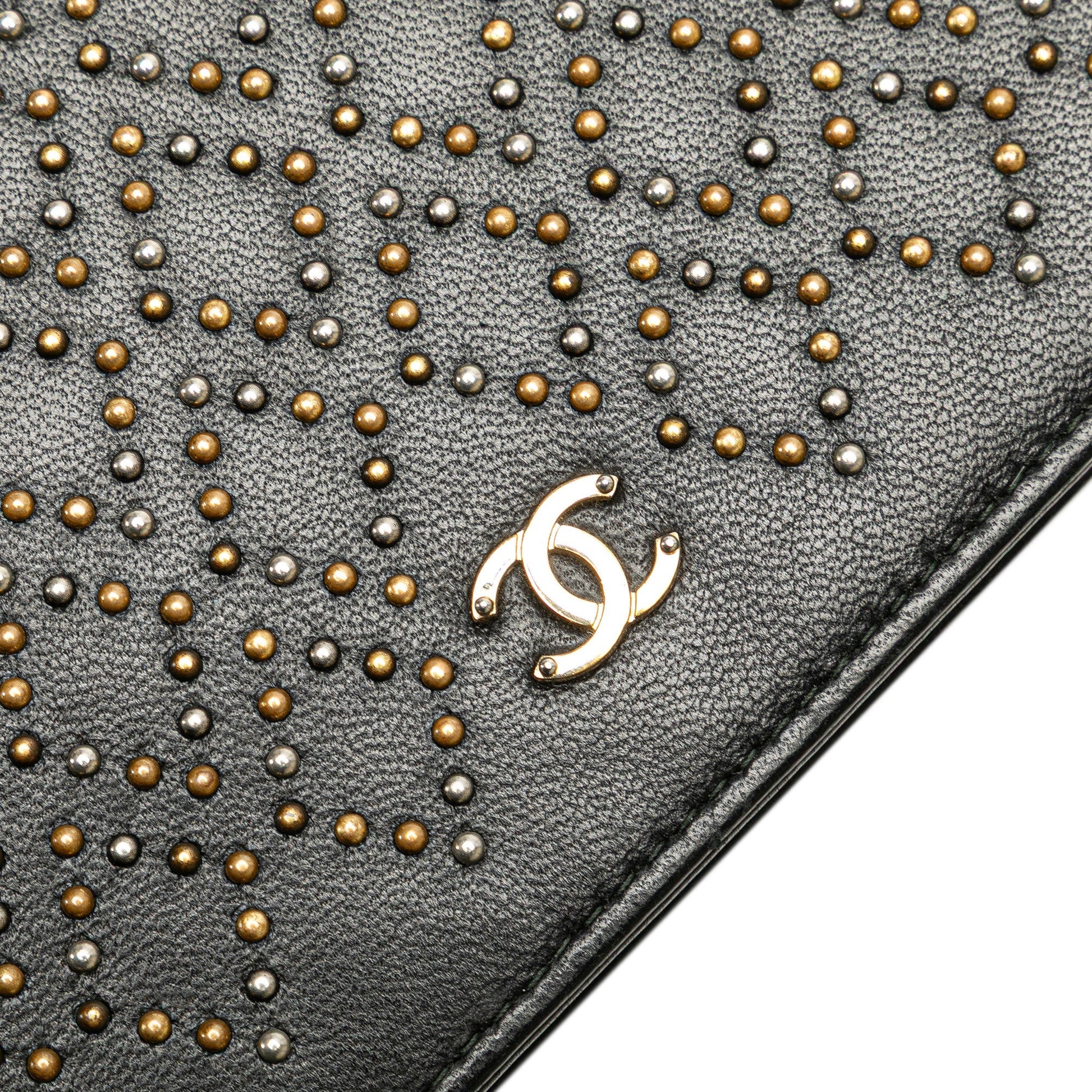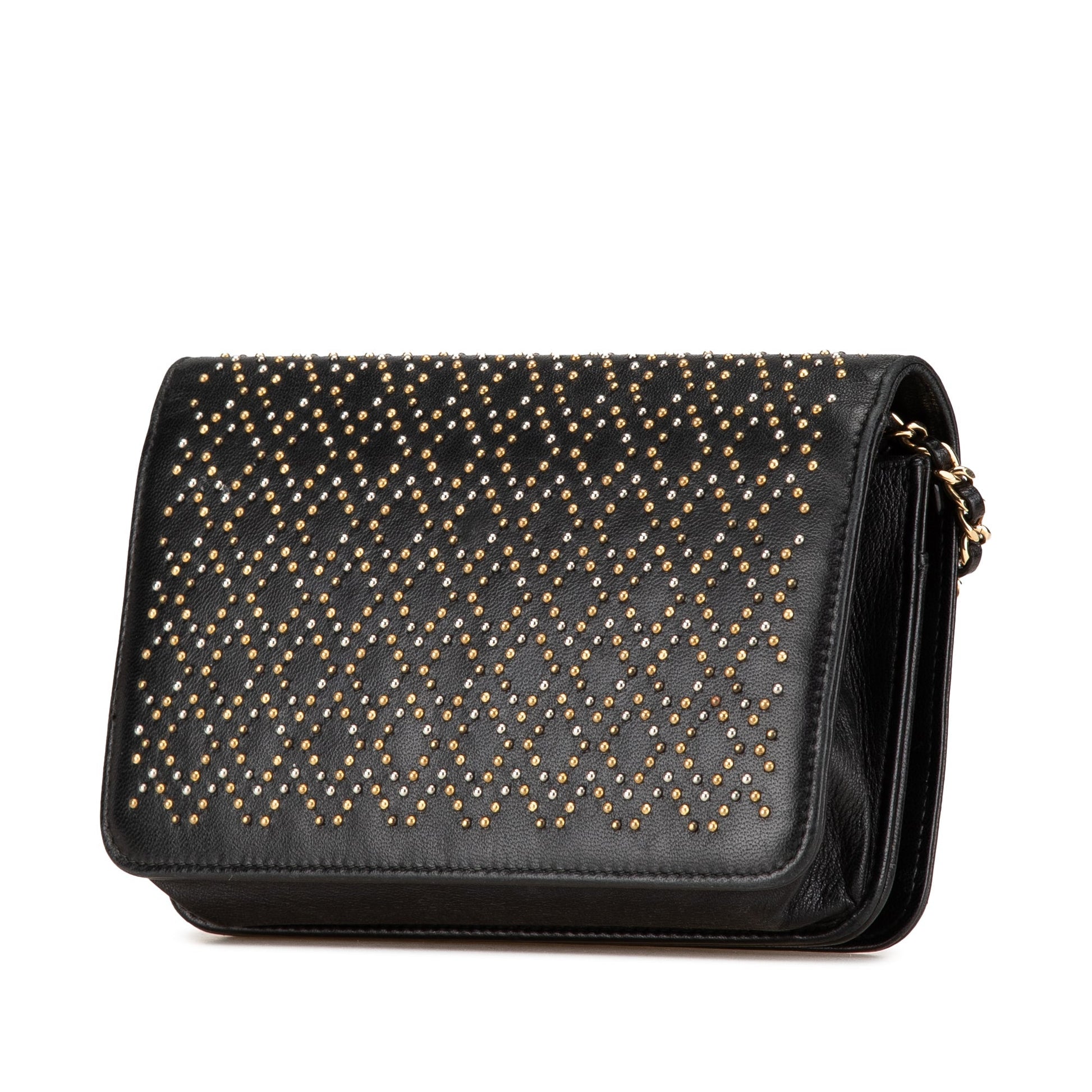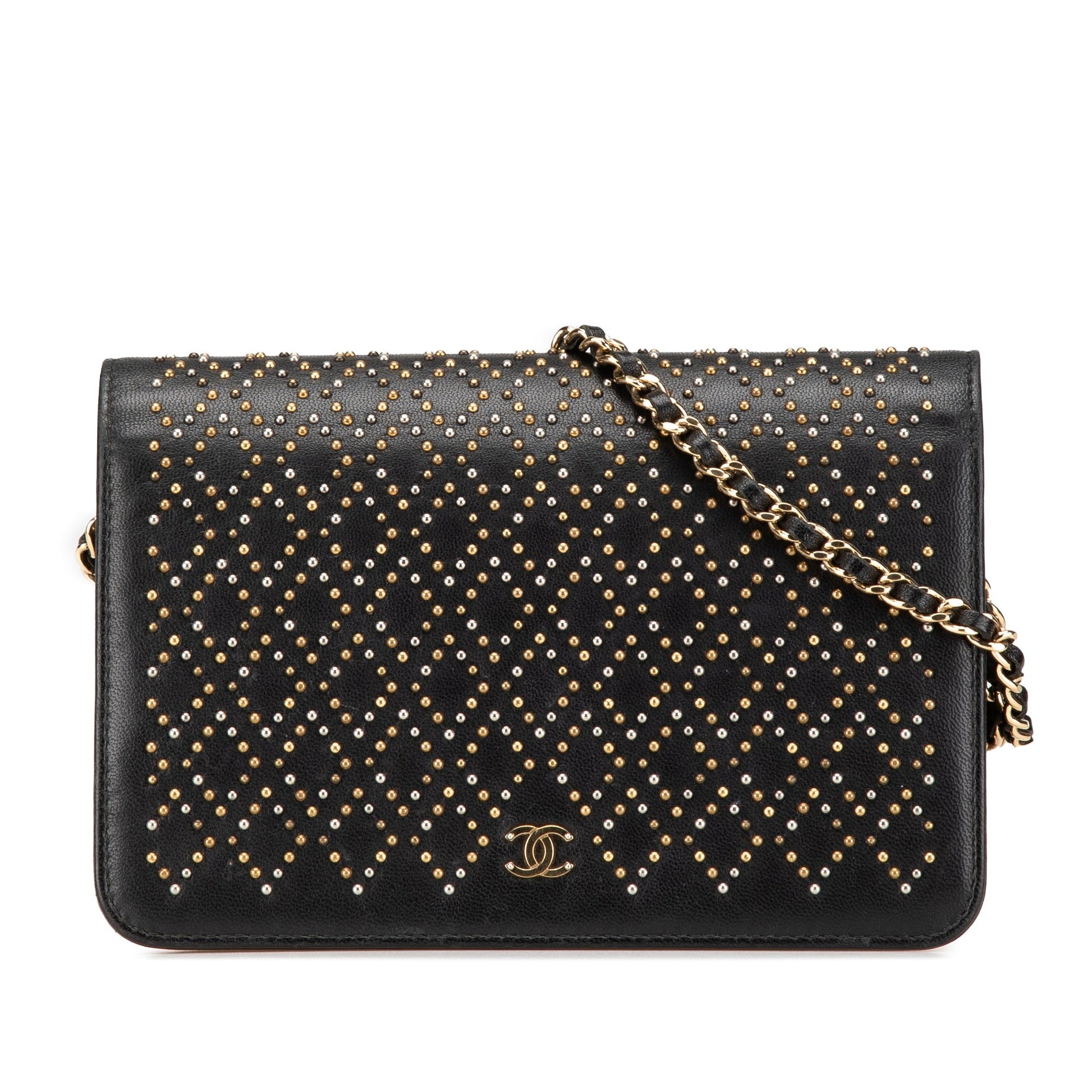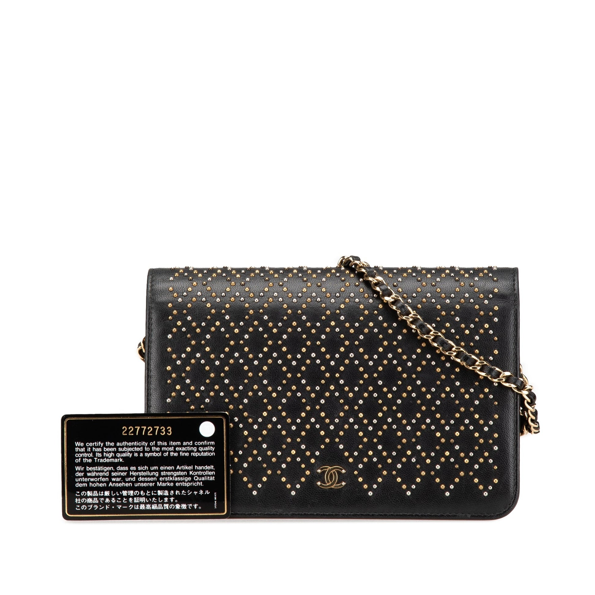 Black Chanel CC Studded Lambskin Wallet on Chain Crossbody Bag