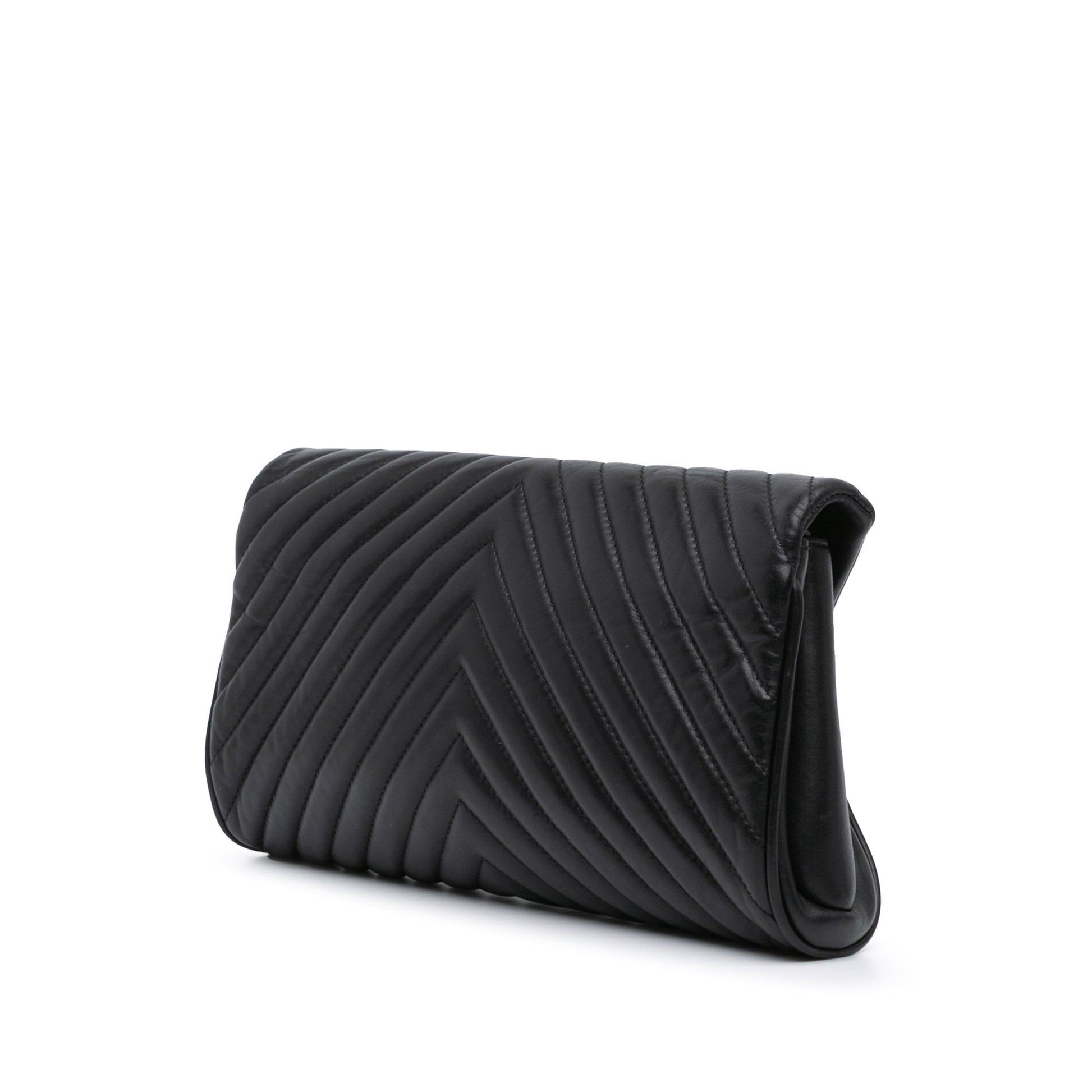 Black Chanel Chevron Lambskin Fold Up Again Clutch