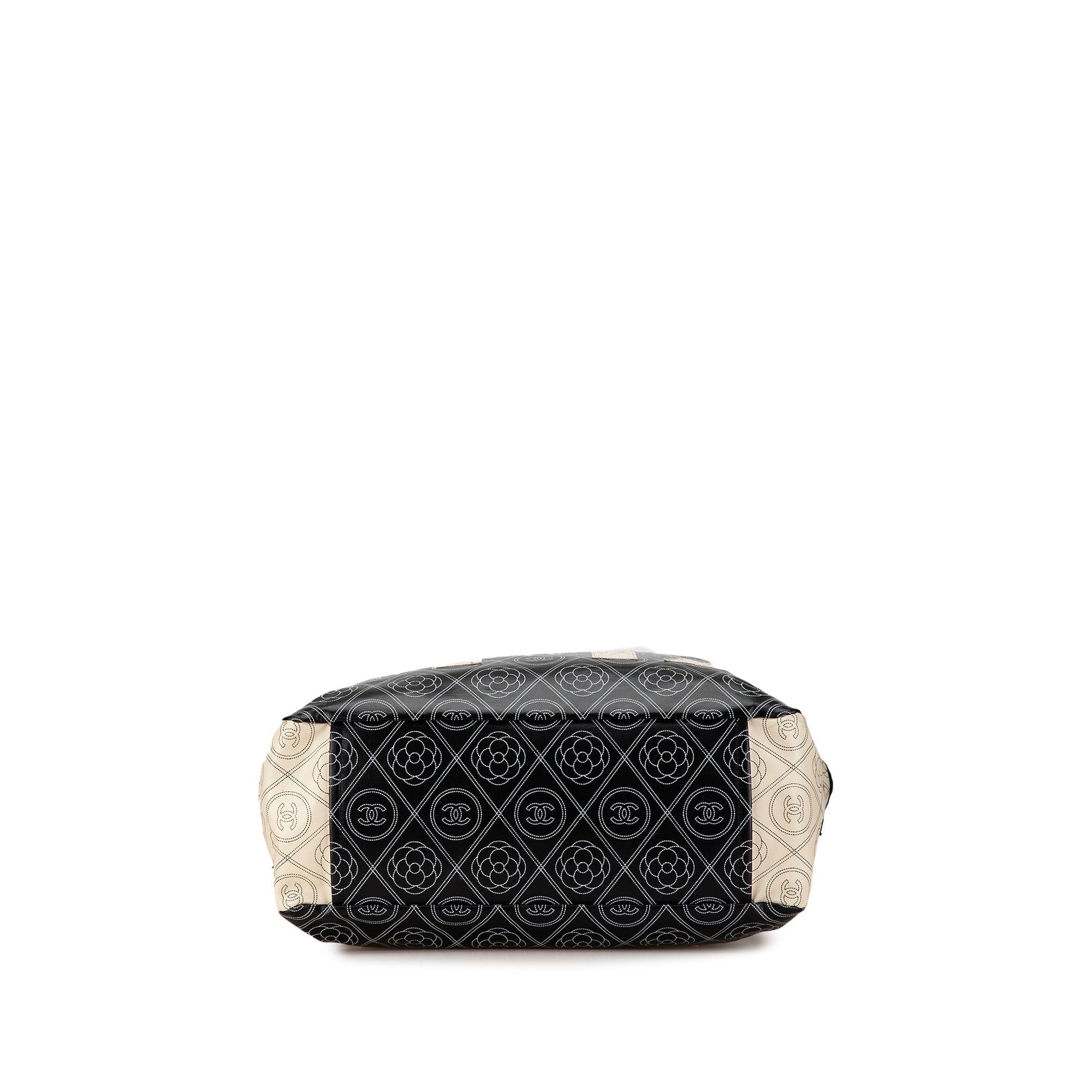 Black Chanel Coated Canvas Camellia Logo Deauville Shopping Tote Satchel