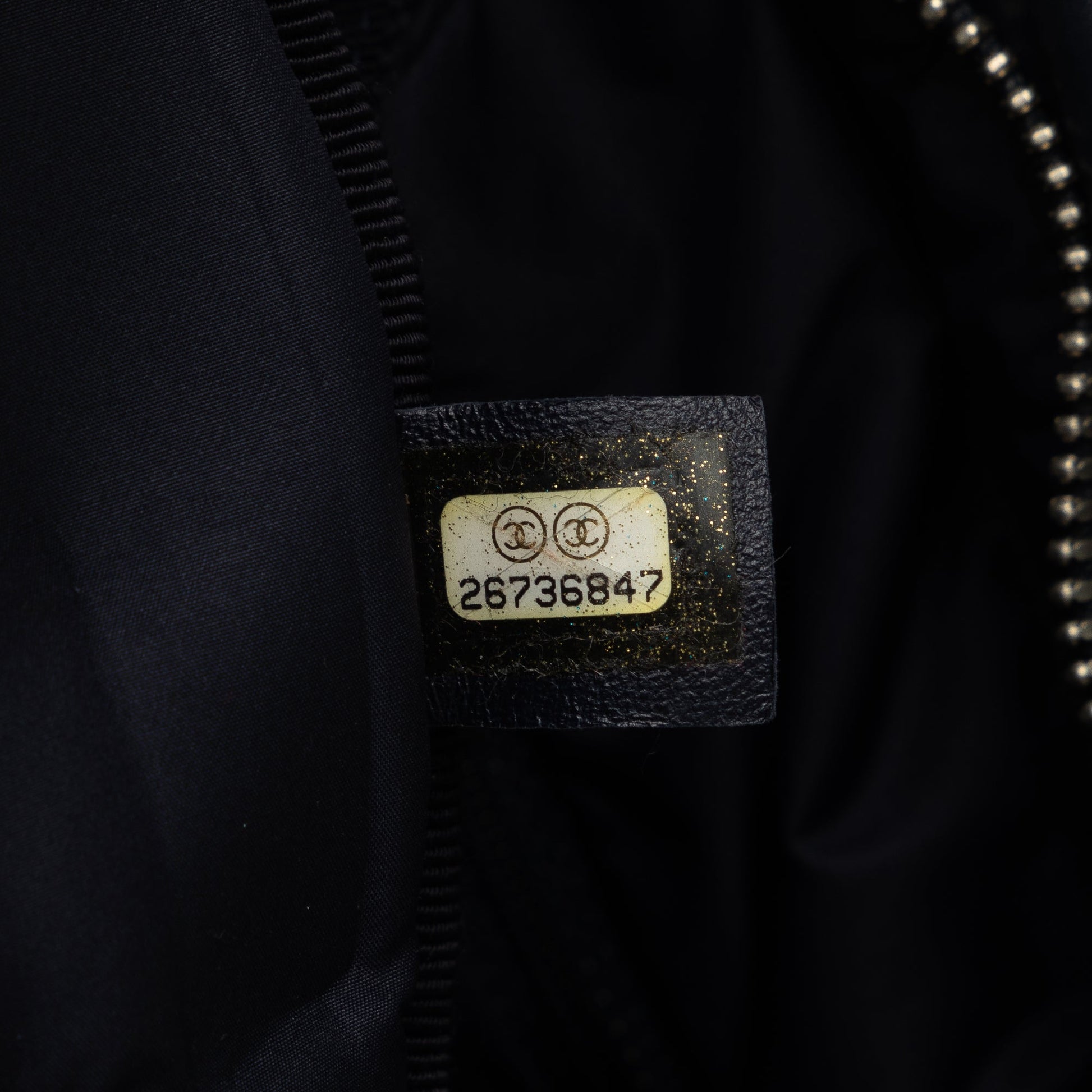 Product Details: Black Chanel Doudoune Crossbody Bag. The Doudoune crossbody bag features an embossed nylon body, a flat strap, a top zip closure, and an interior zip pocket. 9.8" L x 13.8" W x 2.8" D. Serial number 26736847.