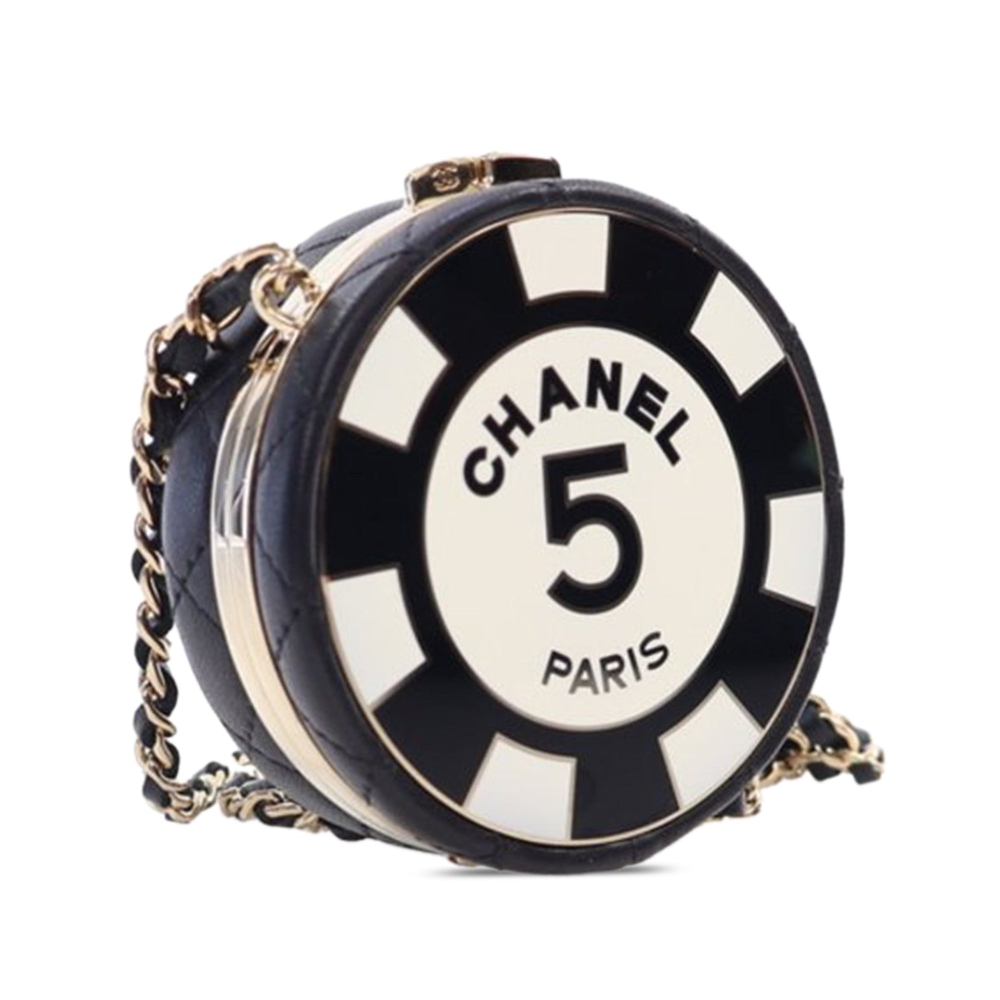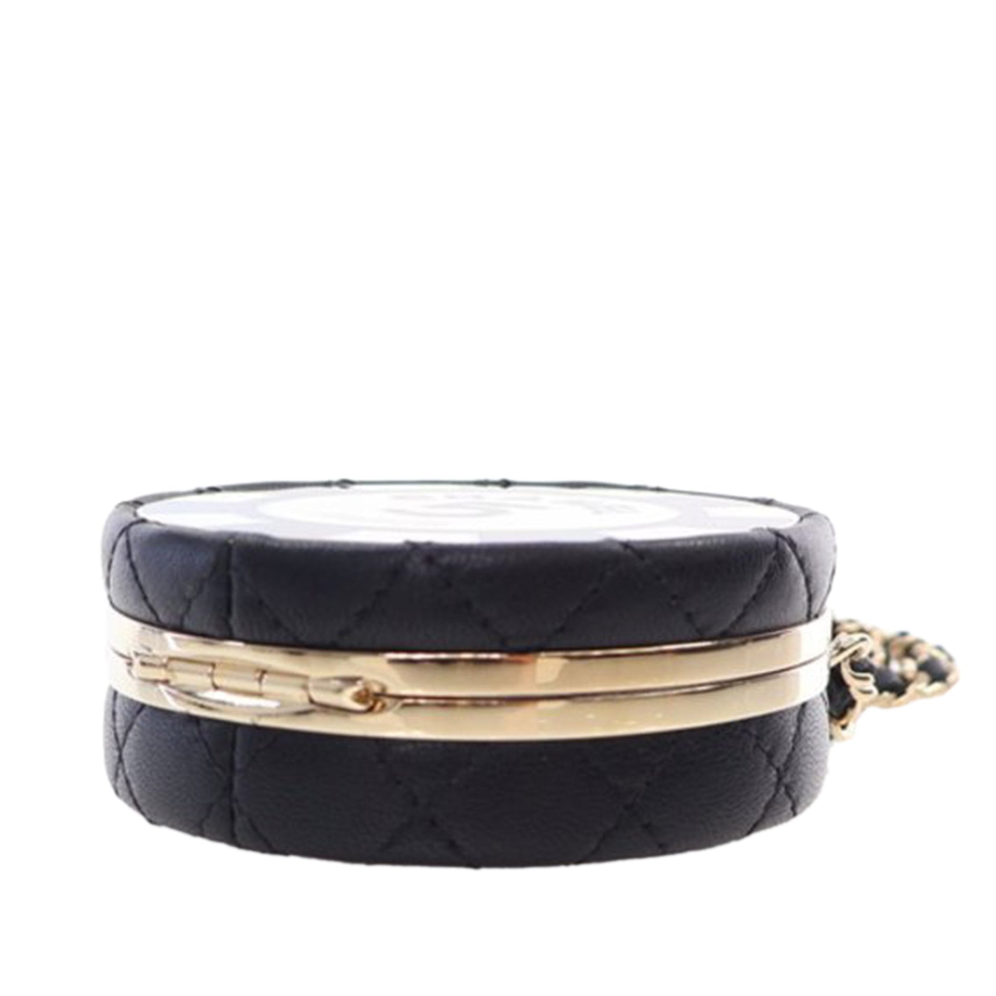 Black Chanel Enamel and Quilted Lambskin Round Poker Chip Clutch with Chain Crossbody Bag