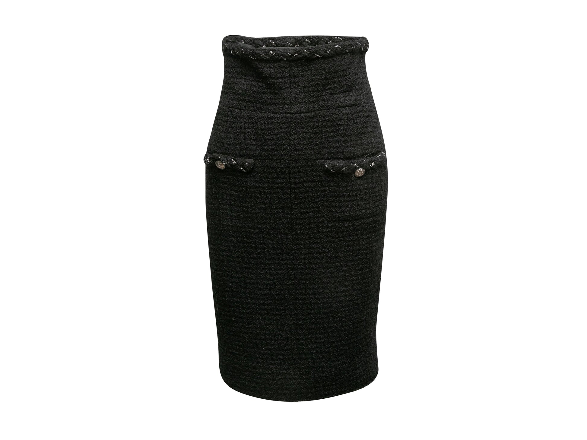 Black Chanel High-Waisted Wool Tweed Pencil Skirt Size FR 40