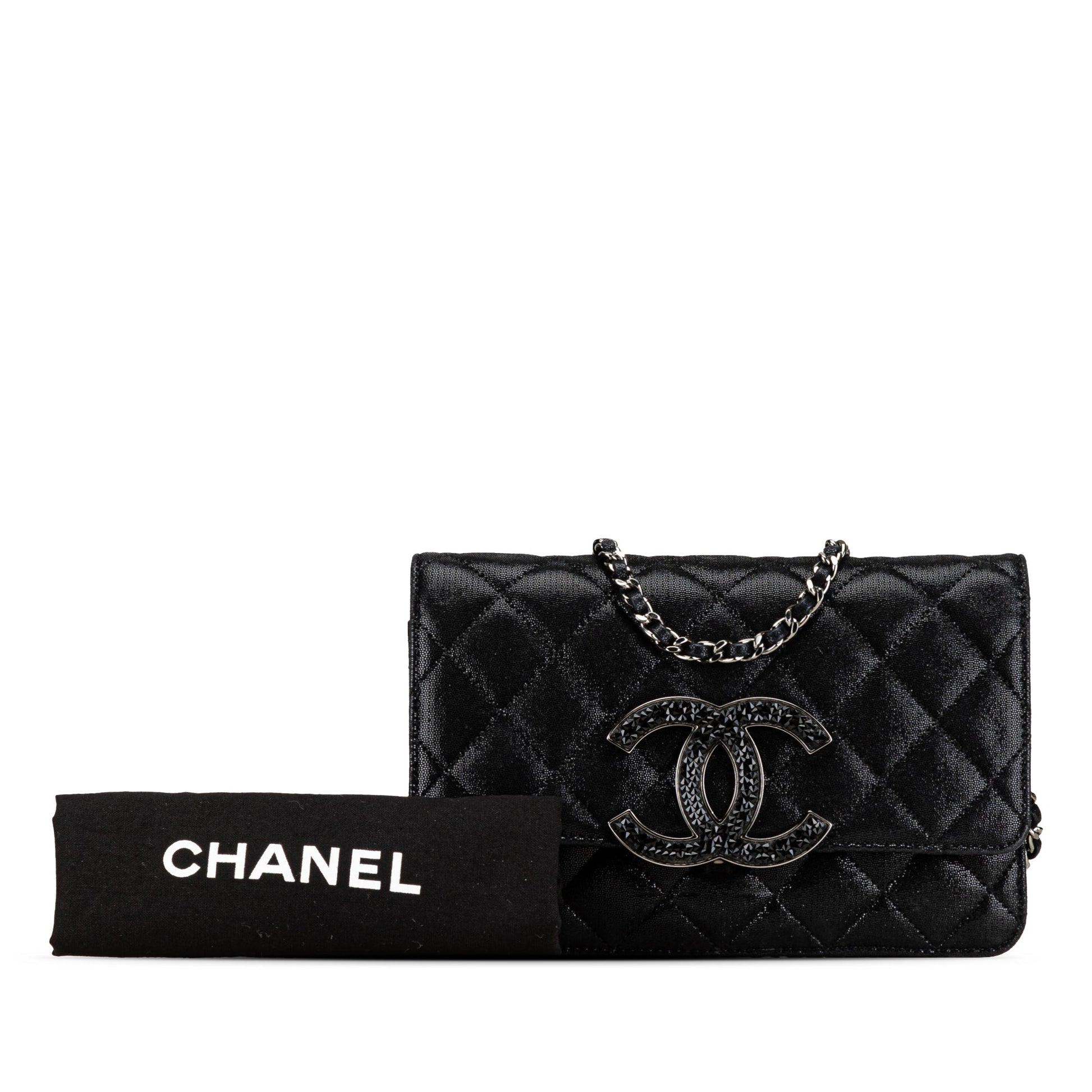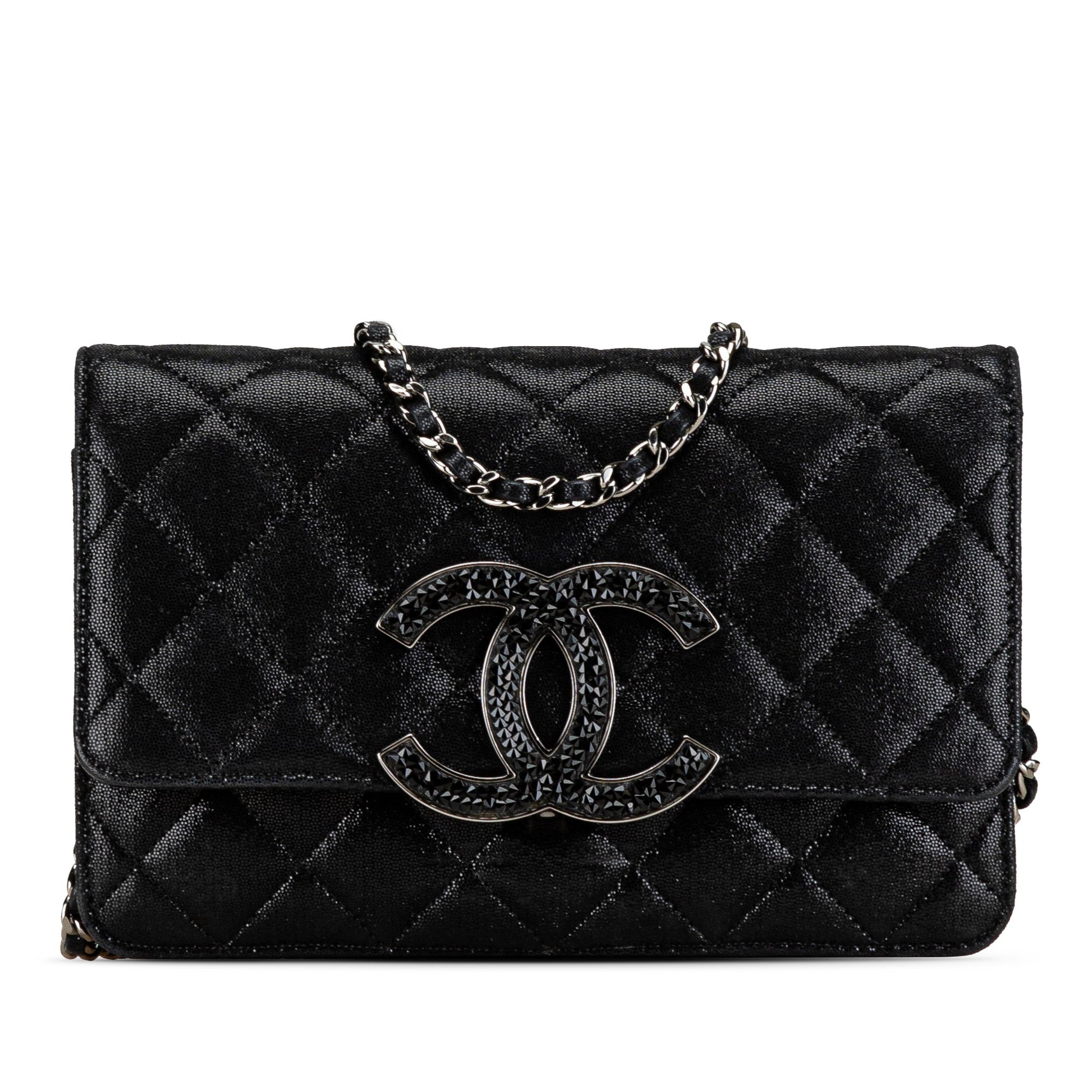 Black Chanel Iridescent Caviar Crystal CC Wallet On Chain Crossbody Bag