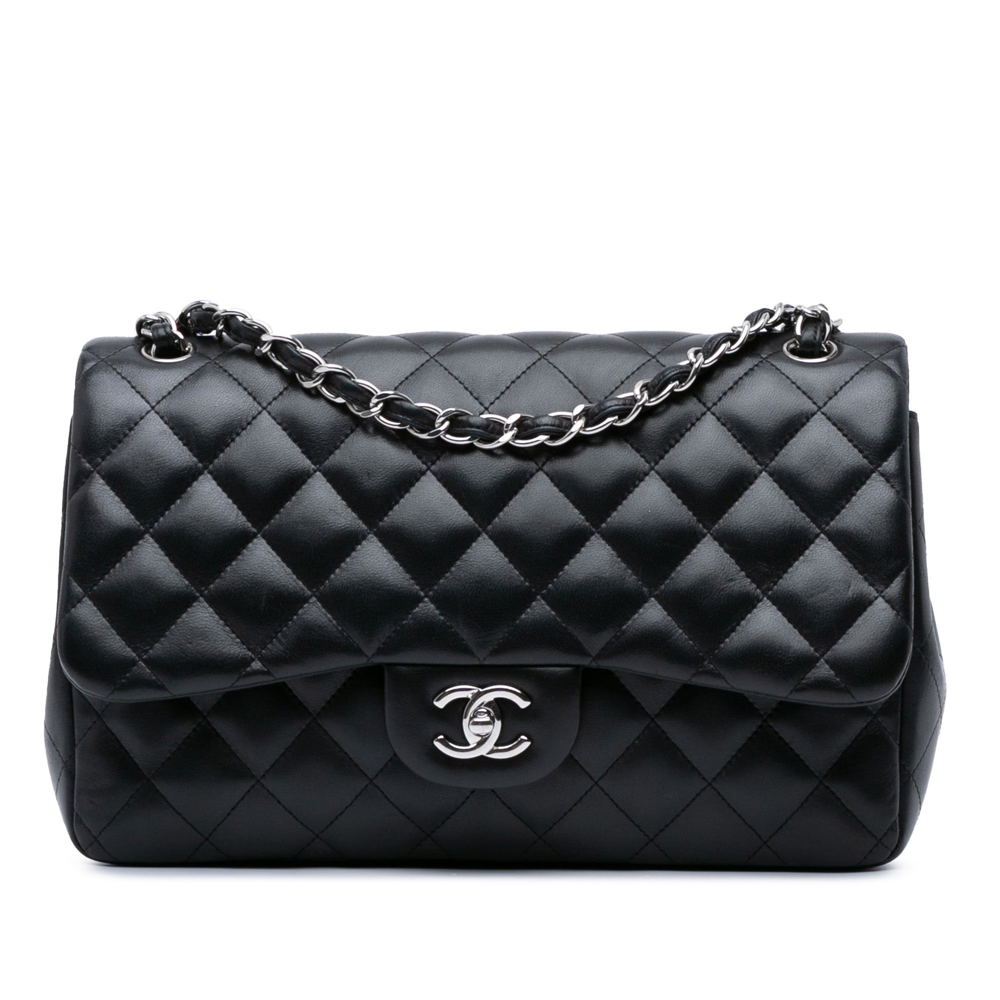 Black Chanel Jumbo Classic Lambskin Double Flap Shoulder Bag