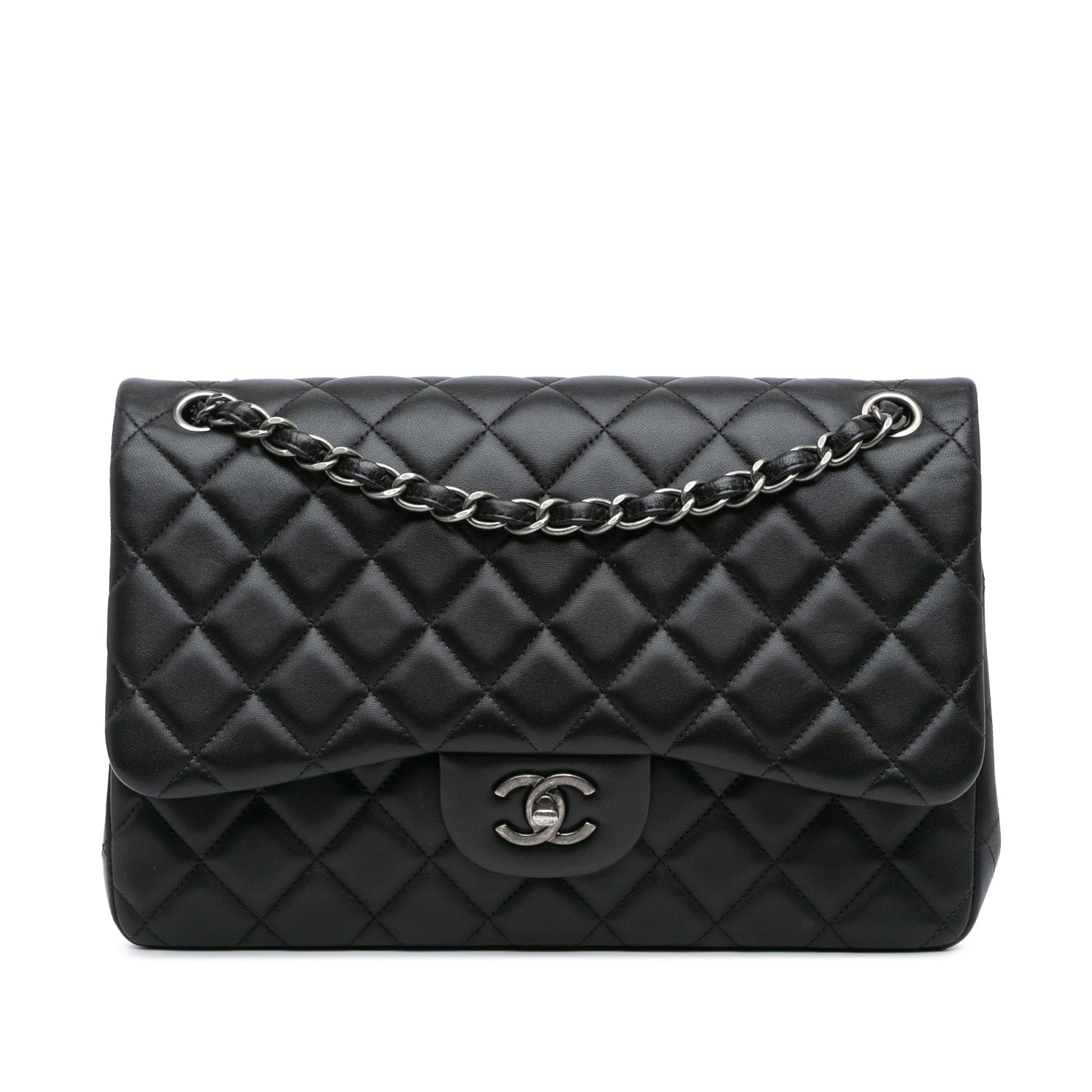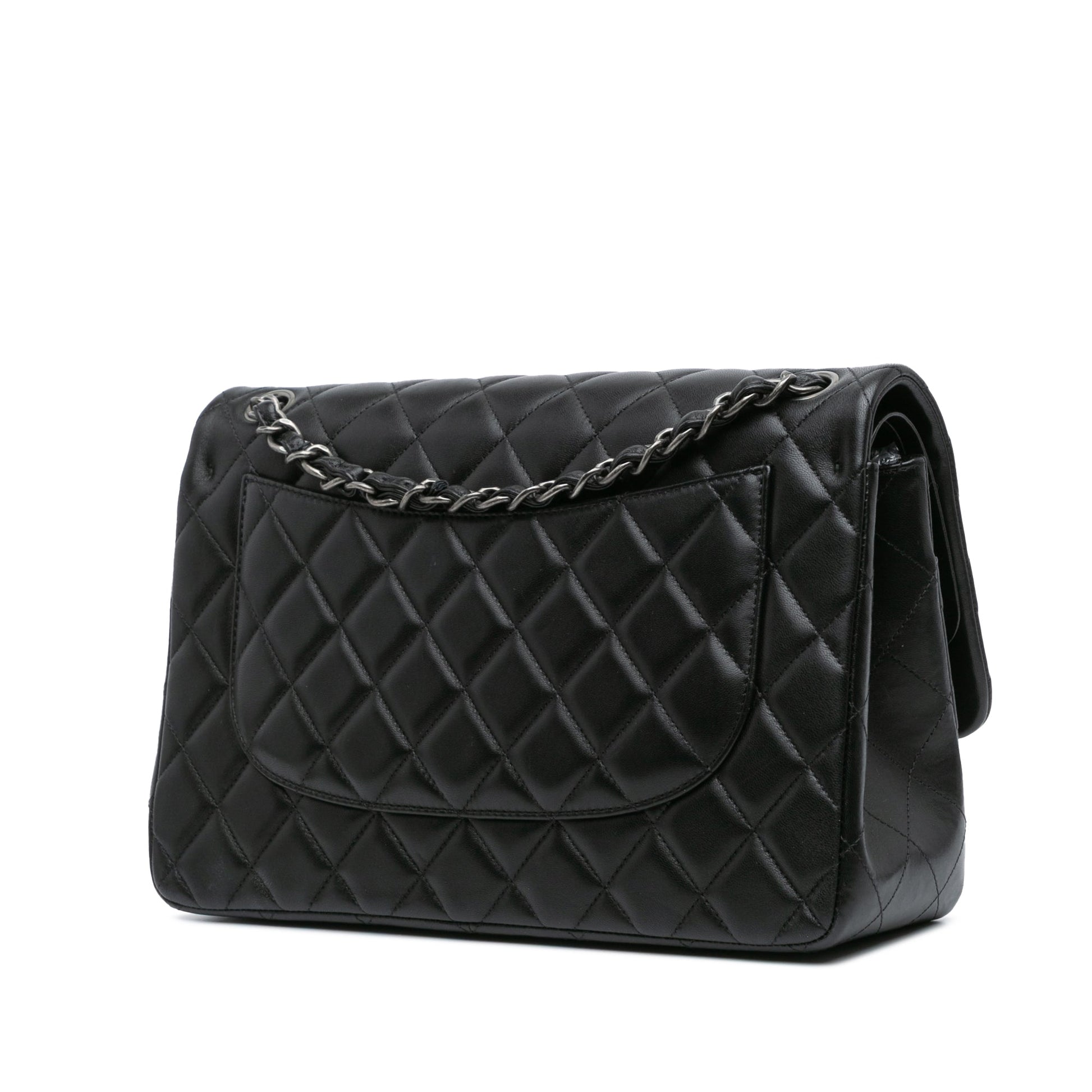 Black Chanel Jumbo Classic Lambskin Double Flap Shoulder Bag