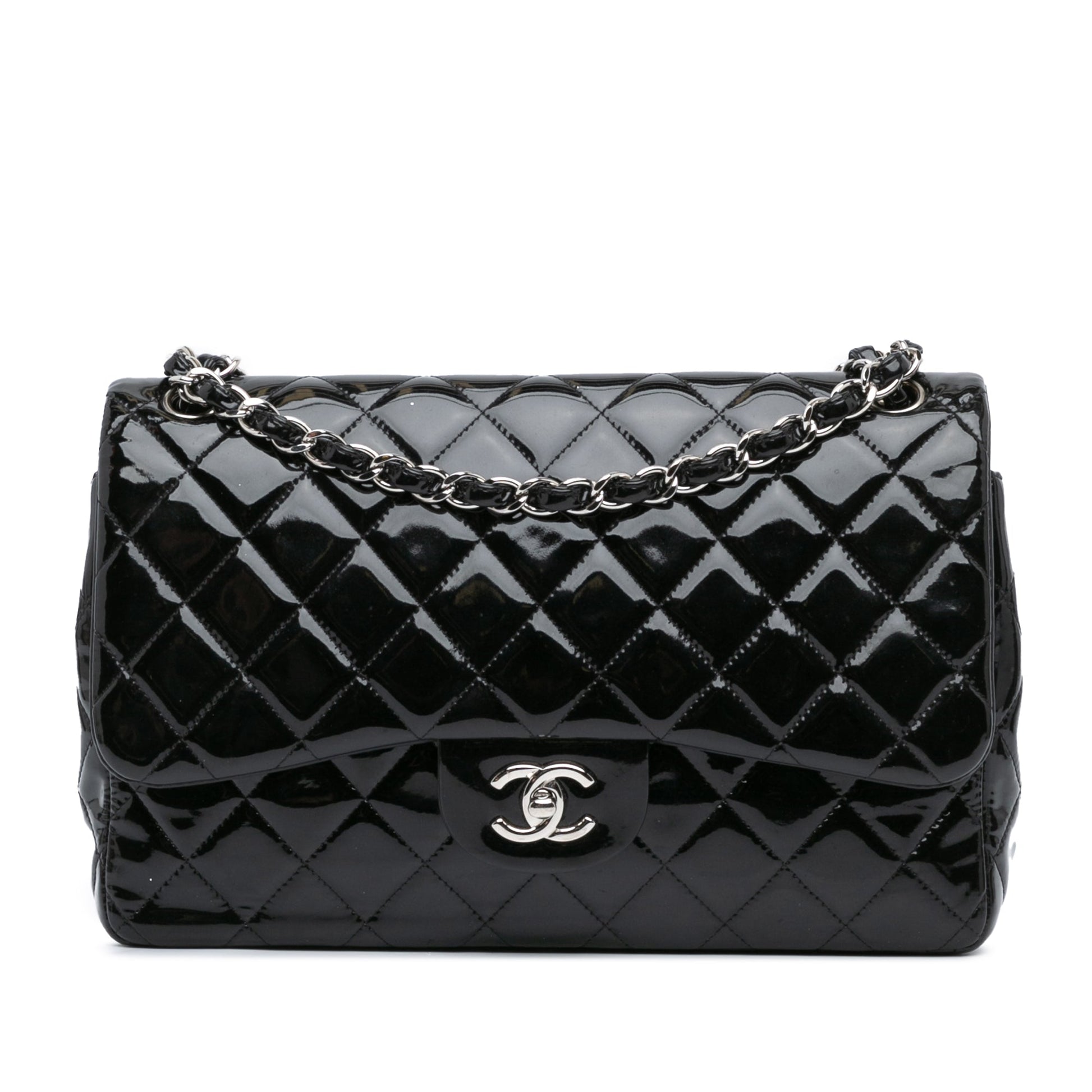 Please note this is a item that may display signs of wear consistent with the condition listed above and shown in photos. Designer Revival this is an Black Chanel Jumbo Classic Patent Double Flap Shoulder Bag or . .