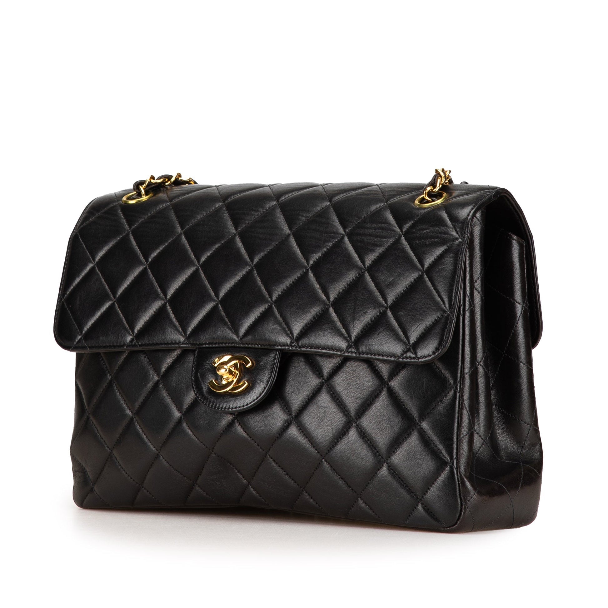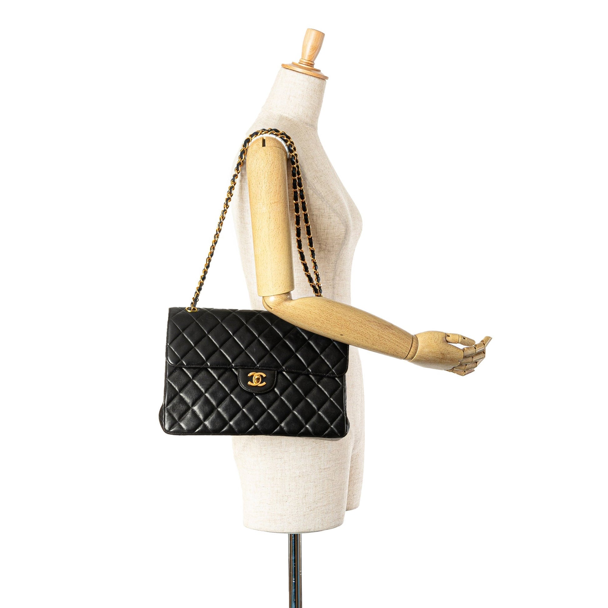Black Chanel Jumbo Lambskin Double Sided Flap Shoulder Bag