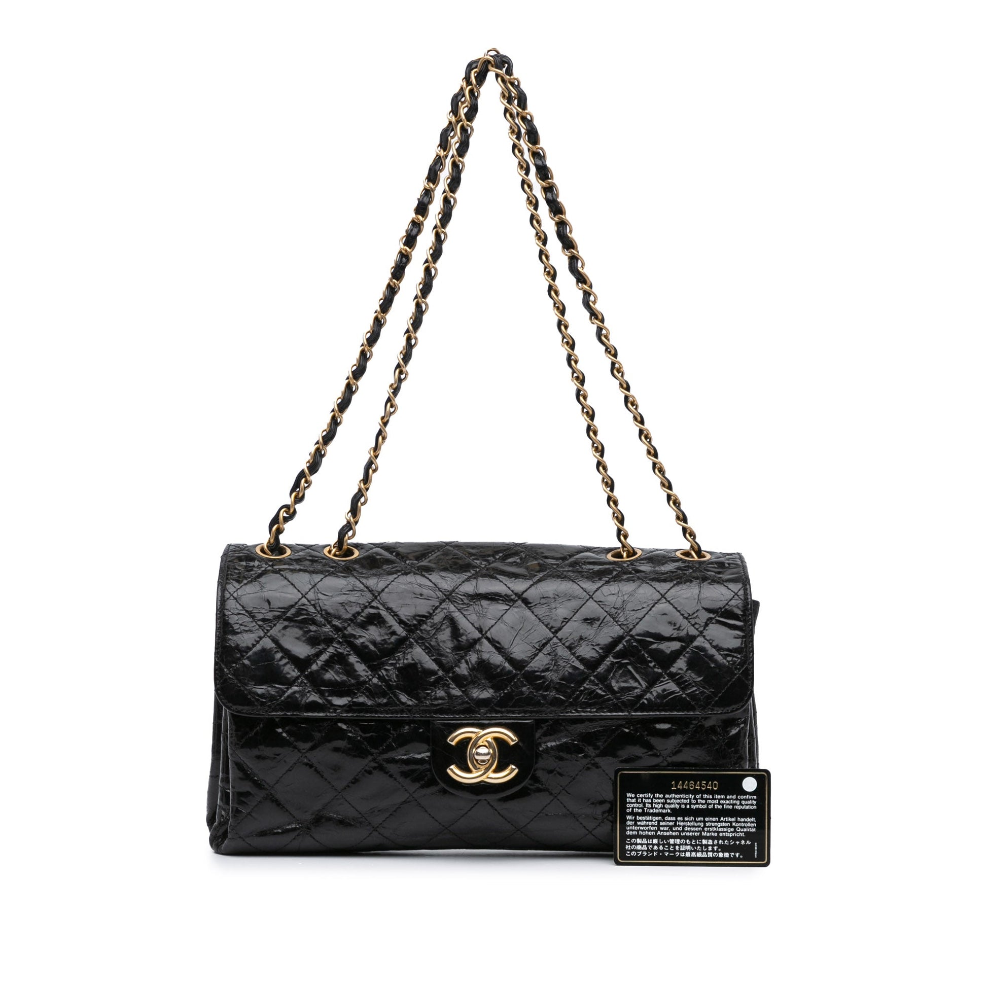Please note this is a item that may display signs of wear consistent with the condition listed above and shown in photos. Designer Revival this is an Black Chanel Jumbo Quilted Glazed Calfskin Clams Pocket Flap Shoulder Bag or . .