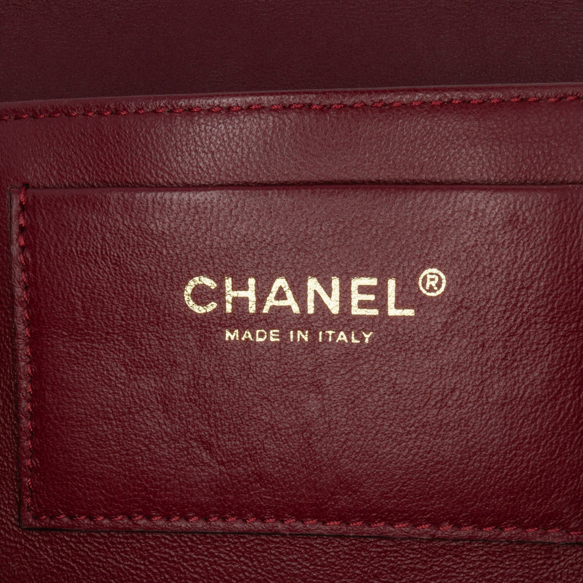 Product Details: Black Chanel Jumbo Quilted Glazed Calfskin Clams Pocket Flap Shoulder Bag. This shoulder bag features a quilted calfskin leather body, leather-woven chain link straps, a flap with CC turn-lock closure, an interior zip compartment, and an interior slip pocket. 7.1" L x 11.8" W x 2.8" D, 10.6" drop. Serial number 14464540.