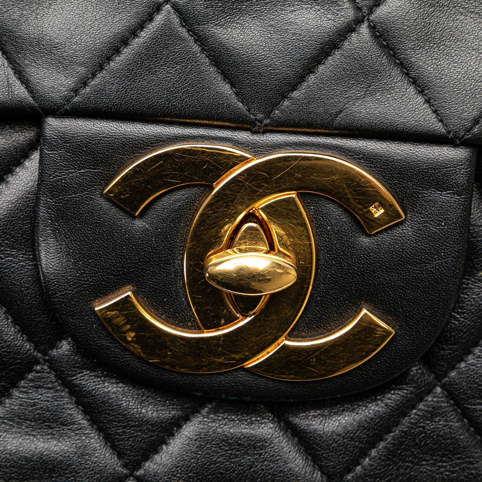 Please note this is a item that may display signs of wear consistent with the condition listed above and shown in photos. Designer Revival this is an Black Chanel Maxi XL Classic Lambskin Single Flap Shoulder Bag or . .