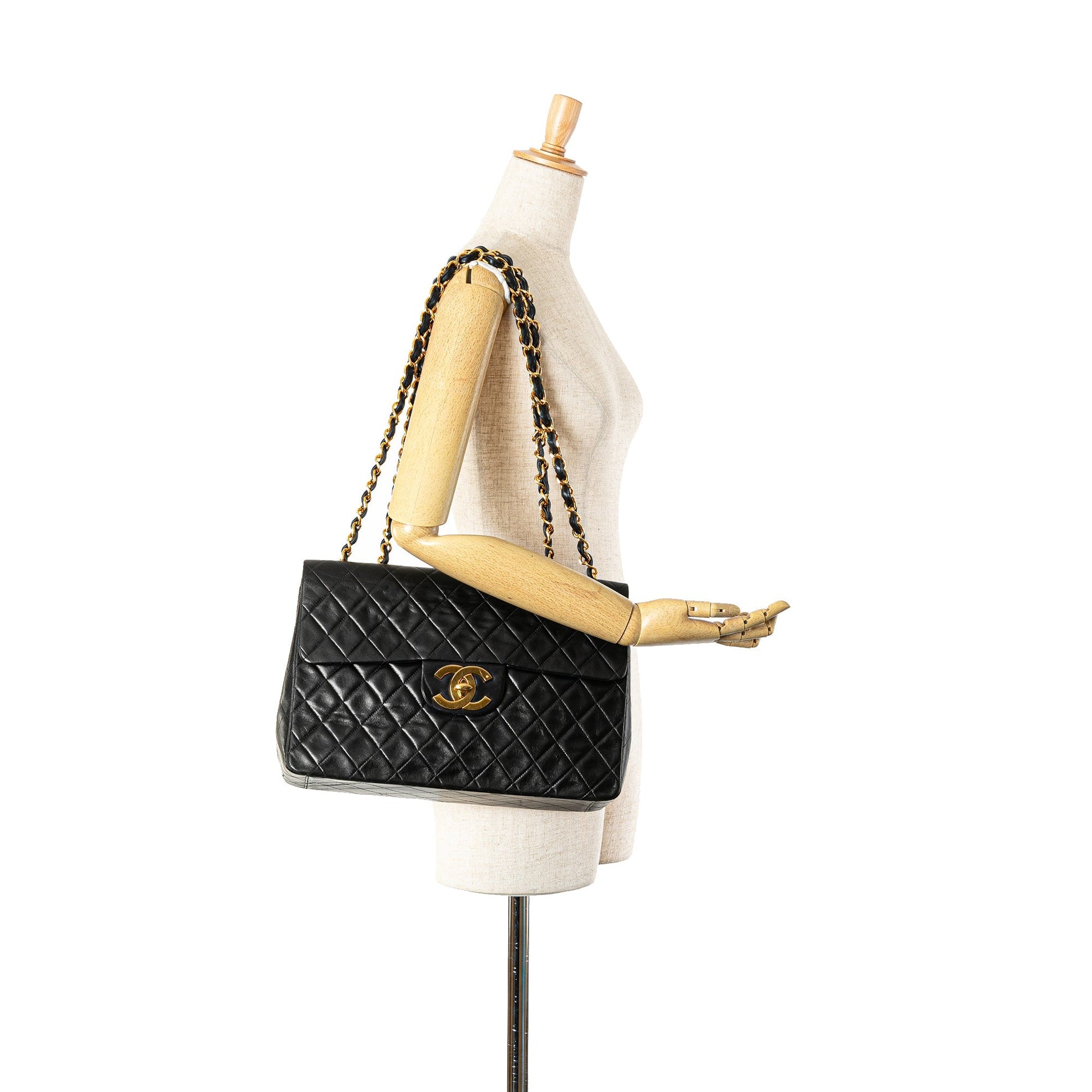 Black Chanel Maxi XL Classic Lambskin Single Flap Shoulder Bag