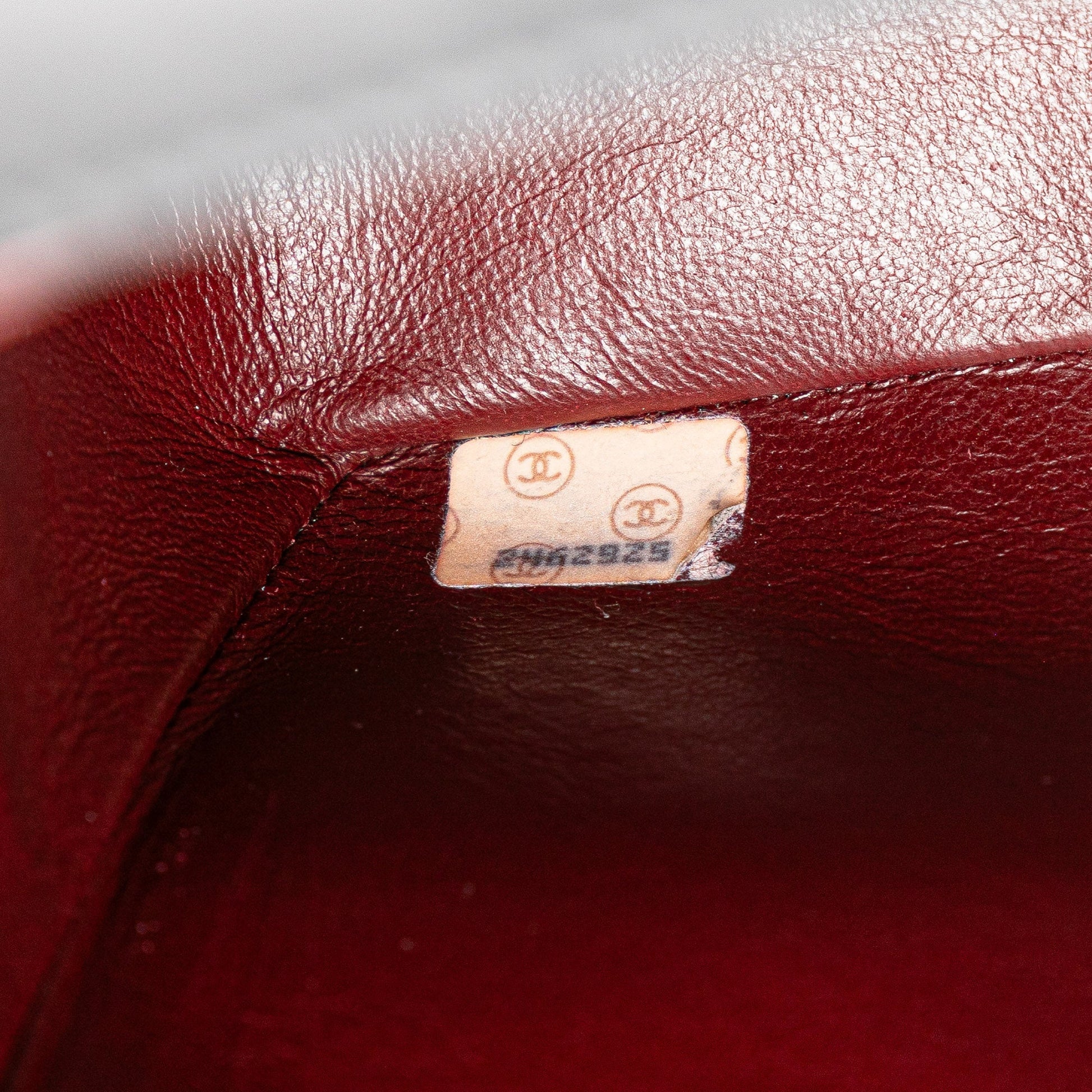 Product Details: Black Chanel Maxi XL Classic Lambskin Single Flap Shoulder Bag. This flap bag features a lambskin leather body, leather woven chain straps, a front flap with an oversize CC turn lock closure, a back exterior slip pocket, and interior zip and slip pockets. 8.3" L x 13.4" W x 3.9" D, 13.2" drop. Serial number 3462925.
