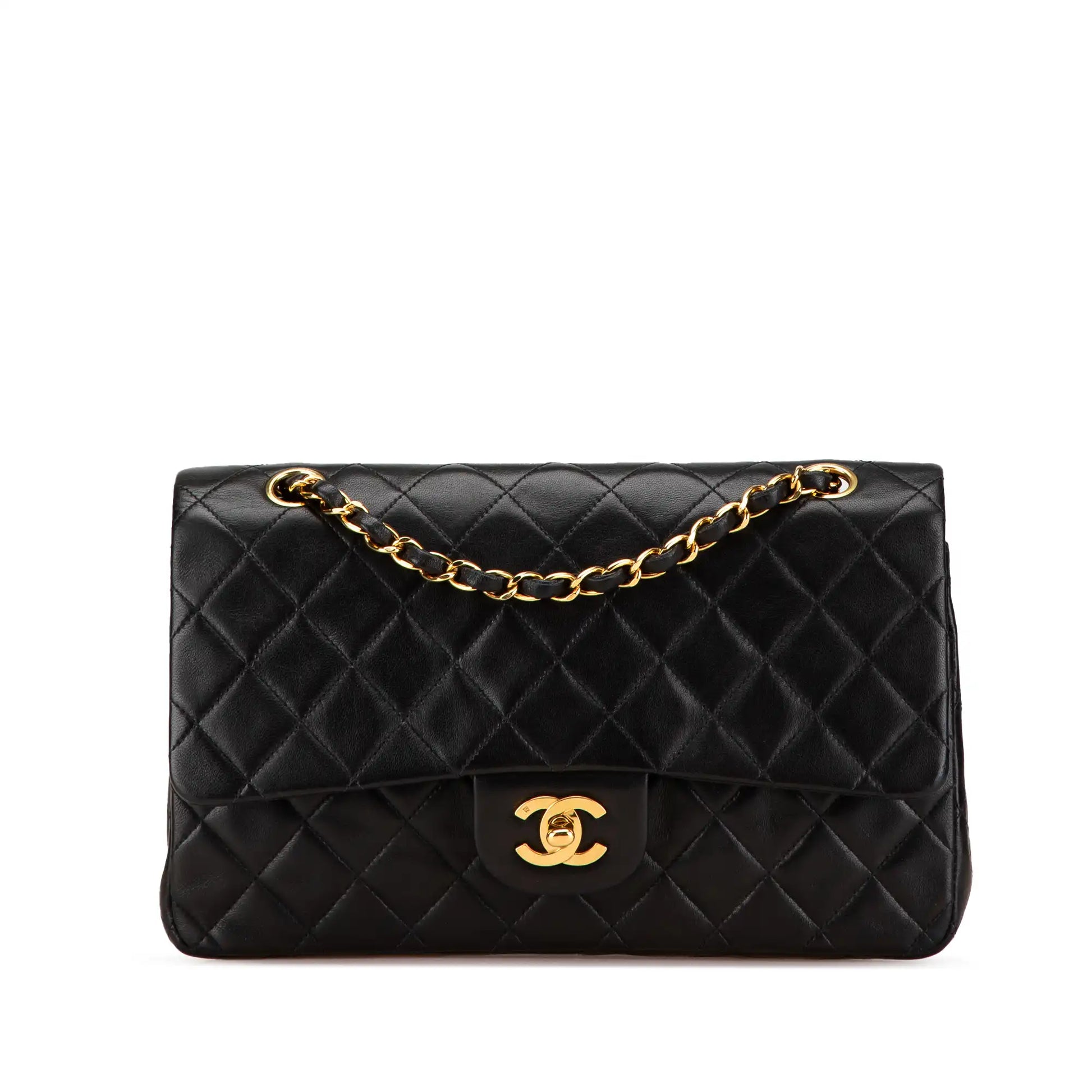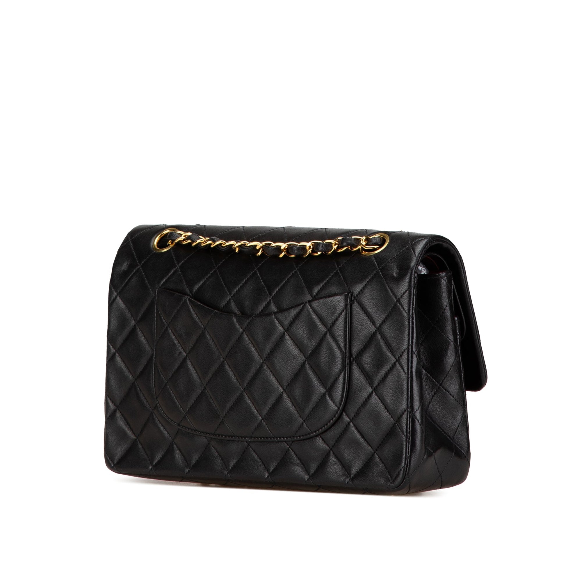 Black Chanel Medium Classic Lambskin Double Flap Shoulder Bag