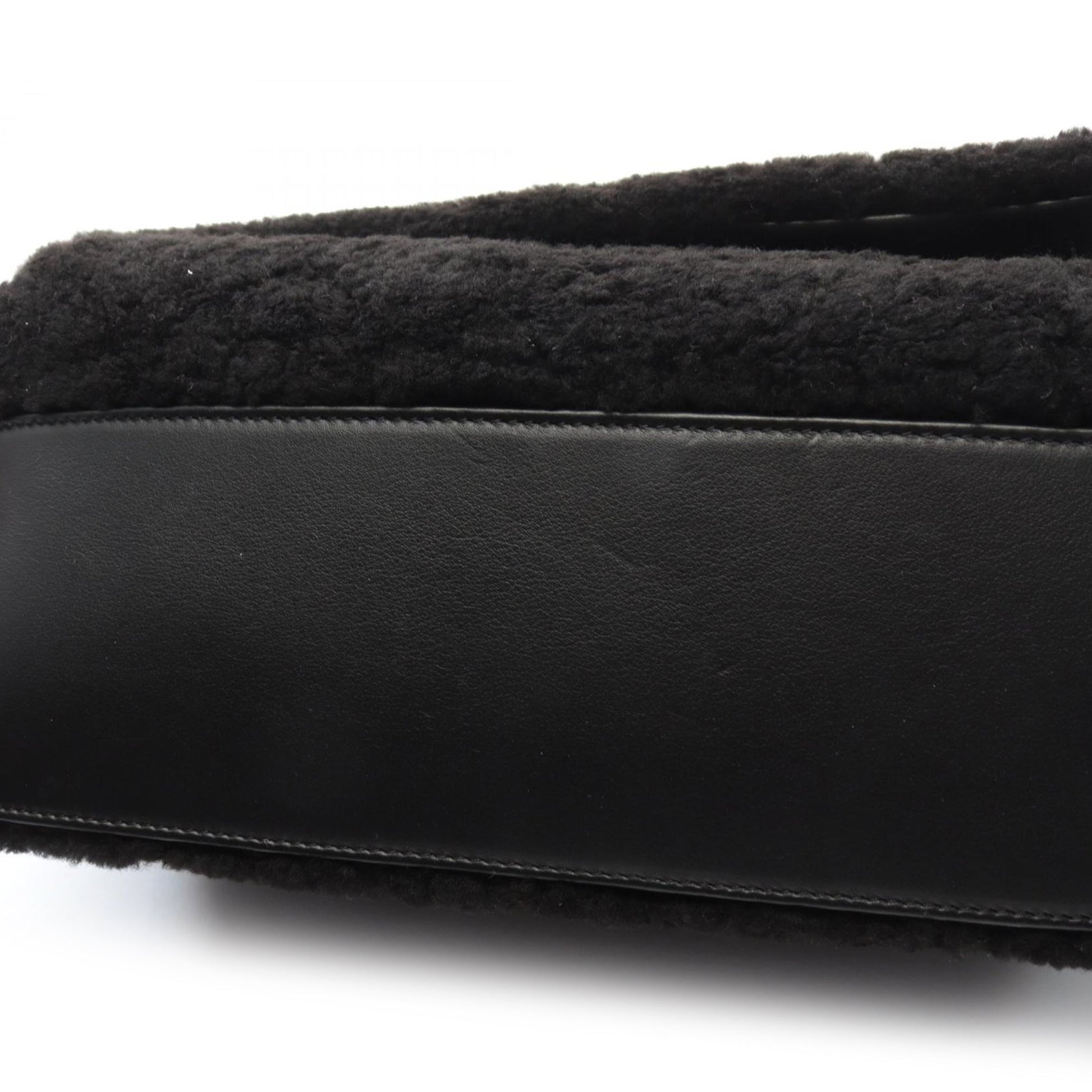 Product Details: Black Chanel Medium Shearling Coco Top Handle Bag Satchel. This flap features a shearling body, a rolled leather top handle, a leather woven chain link strap with leather guard, a flap with CC twist lock closure, and interior zip and slip pockets. 7.3" L x 11" W x 4.3" D, 5.1" drop. Serial number 23282766.