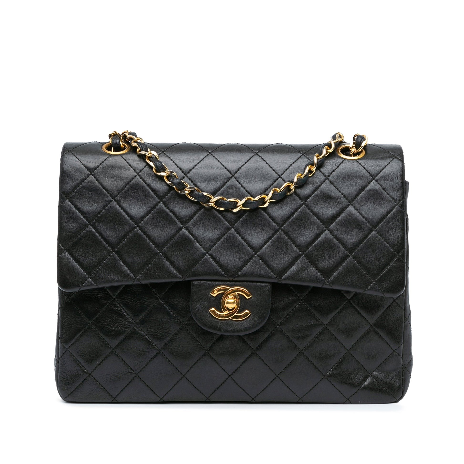 Black Chanel Medium Tall Classic Lambskin Double Flap Shoulder Bag