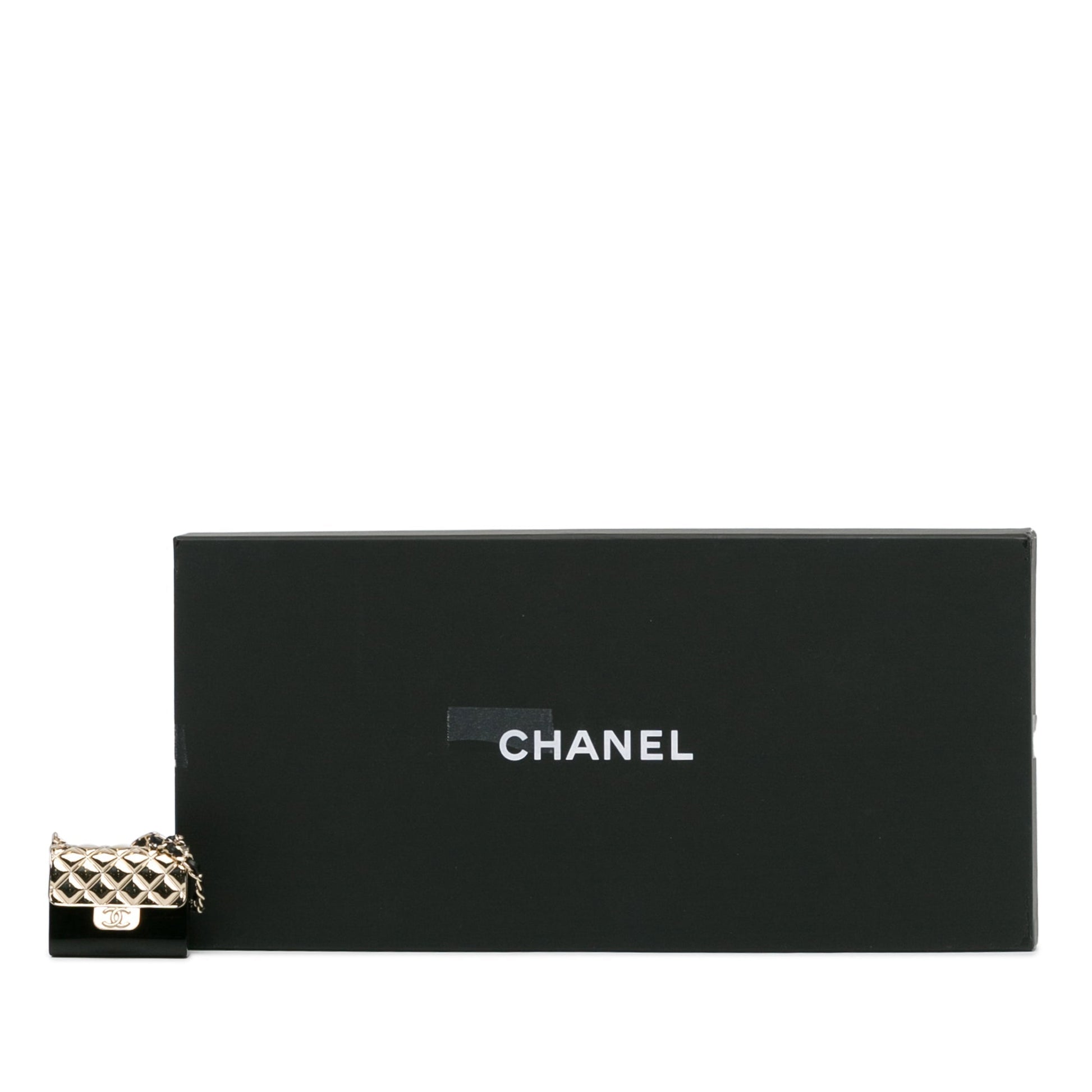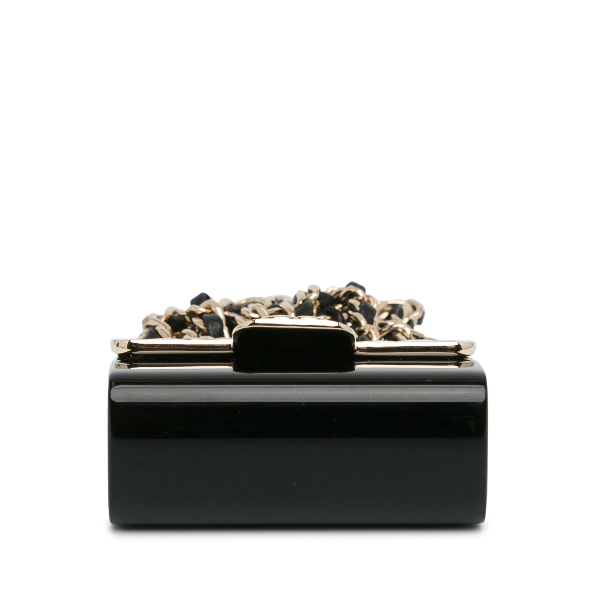 Black Chanel Metal And Resin Chain Flap Pendant Necklace