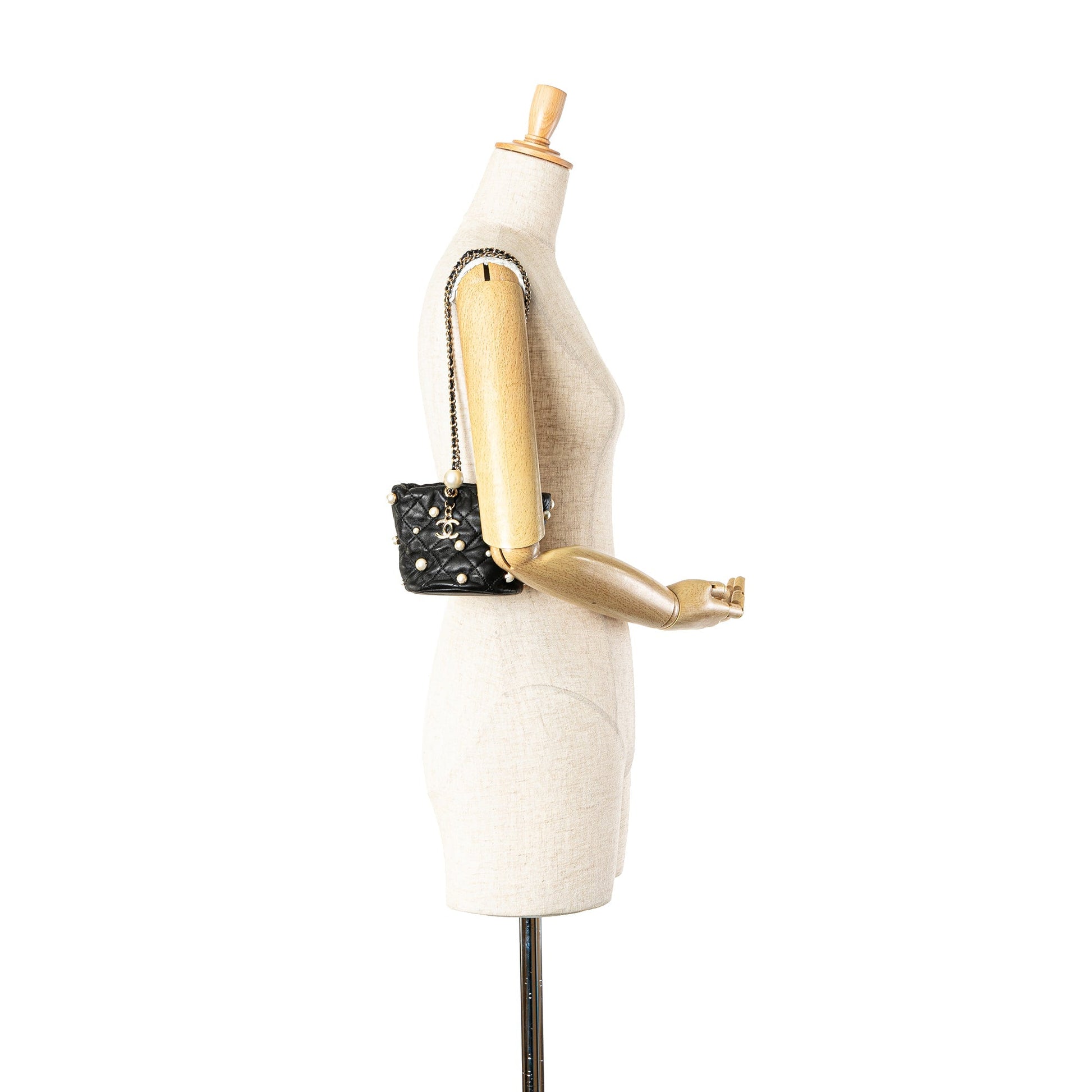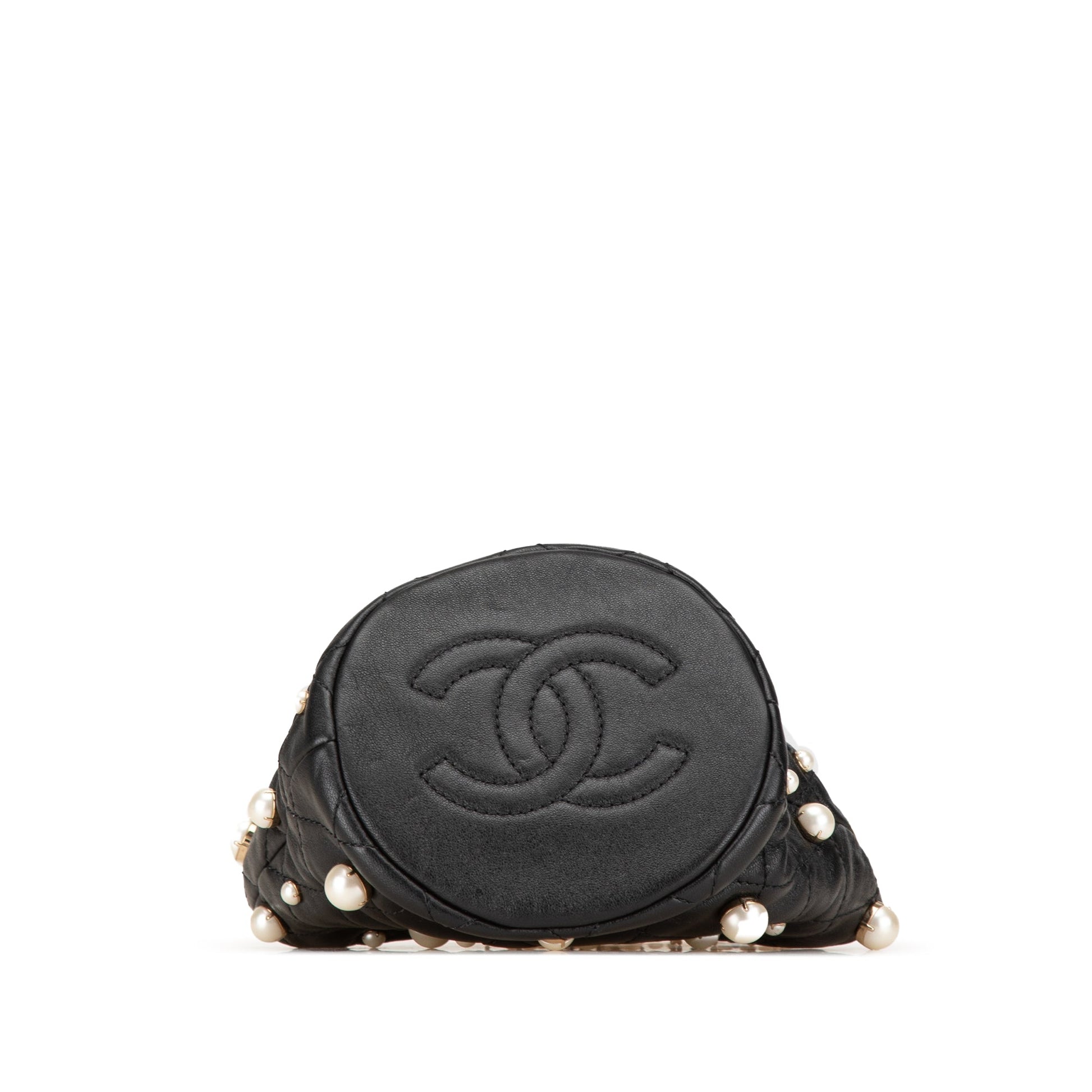 Black Chanel Mini Calfaskin About Pearls Drawstring Bucket Bag