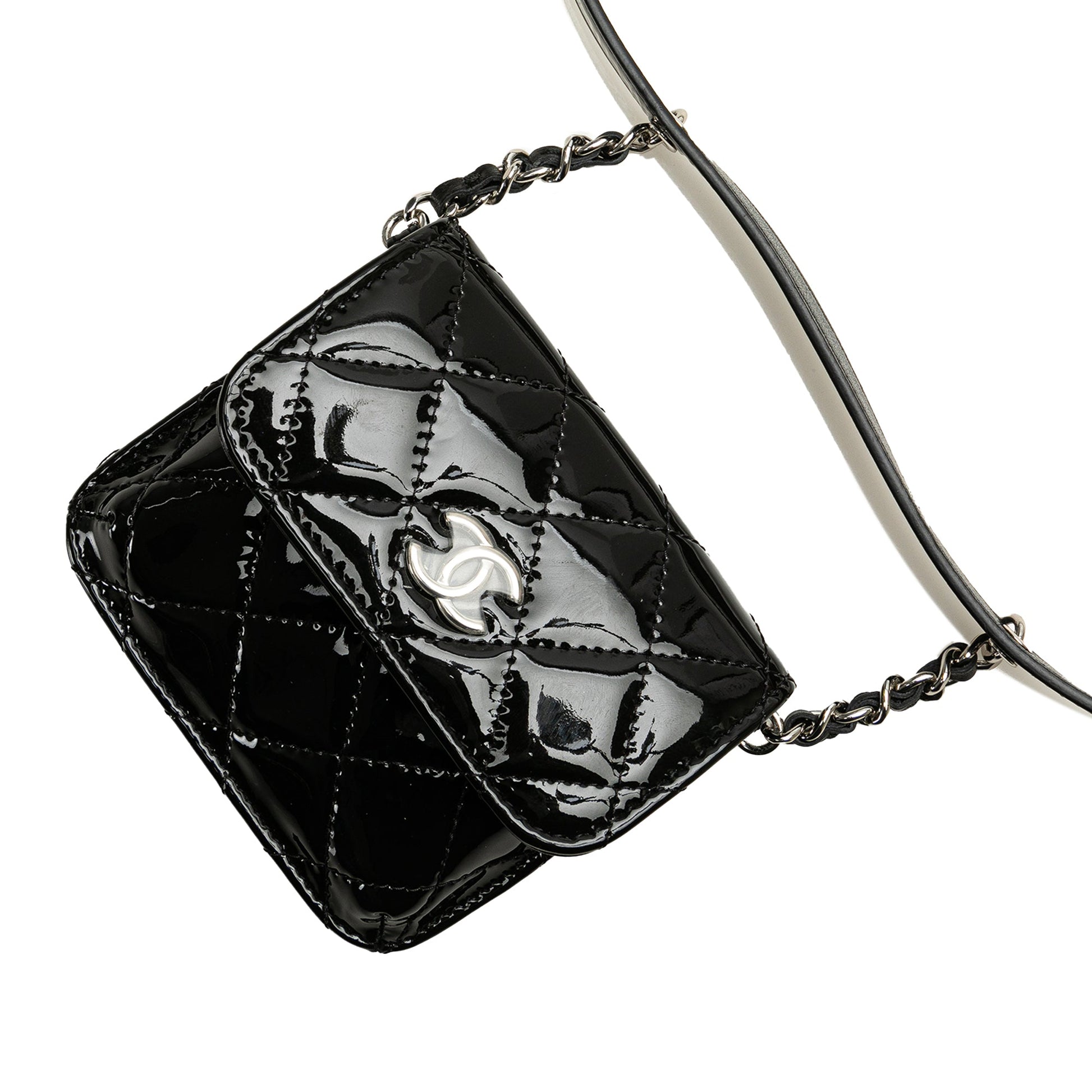 Black Chanel Mini Patent Belt in Love Double Flap Belt Bag