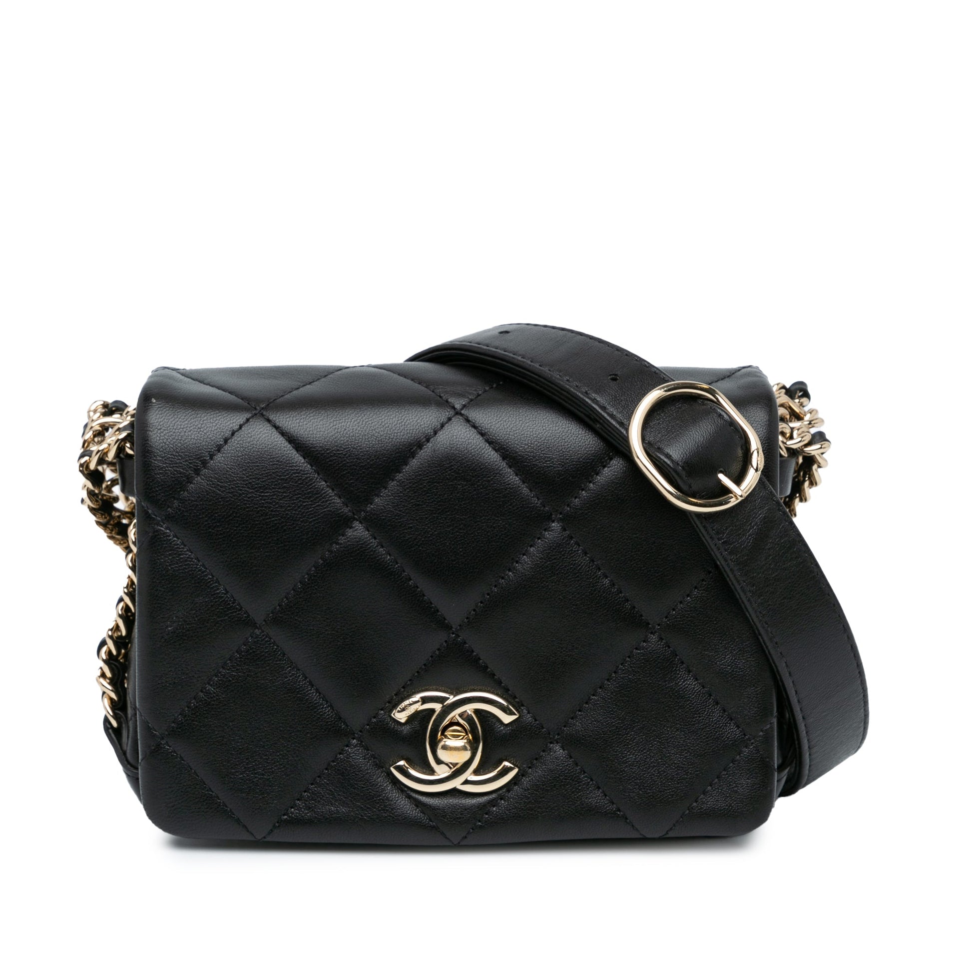 Black Chanel Mini Quilted Lambskin Multi Chain Flap Crossbody Bag