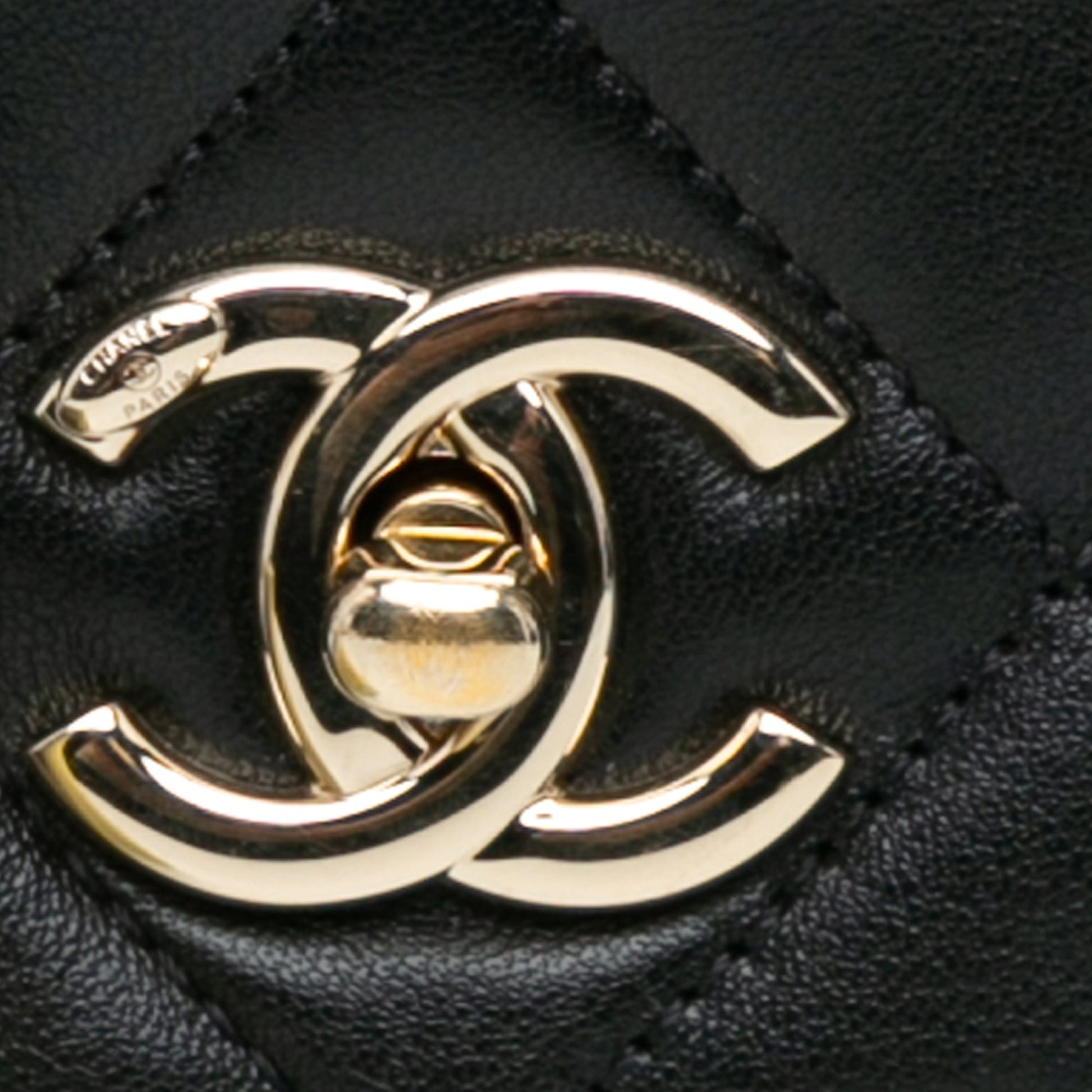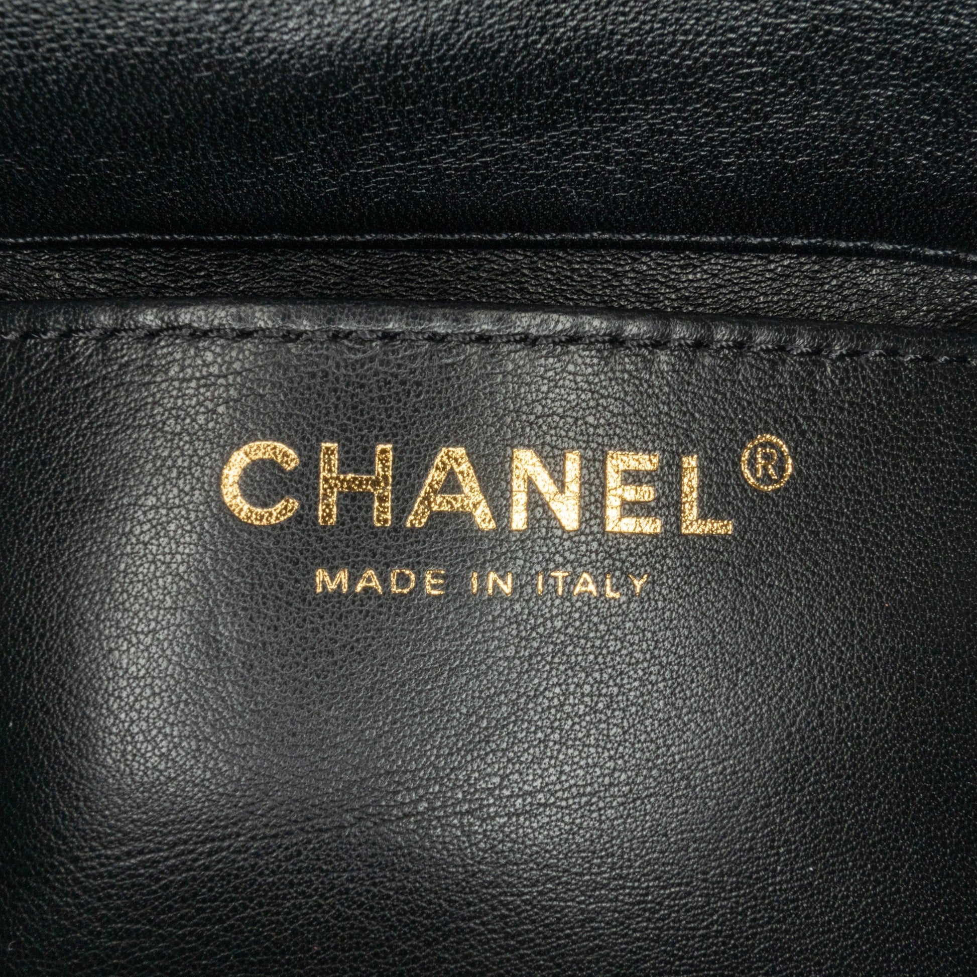 Product Details: Black Chanel Mini Quilted Lambskin Multi Chain Flap Crossbody Bag. This crossbody bag features a quilted lambskin leather body, chain link and leather woven chain link straps, a front flap with CC turnlock closure, and an interior slip pocket. 4.3" L x 7.1" W x 2.4" D. Serial number UTHGGU33.