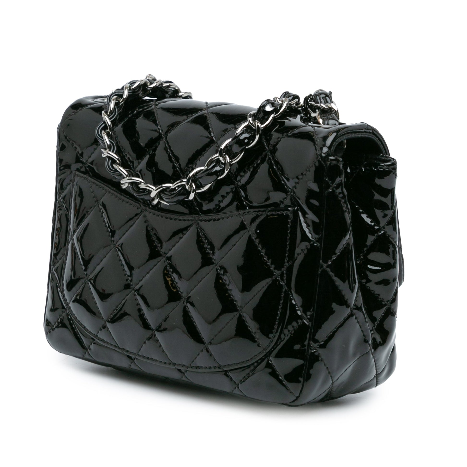 Black Chanel Mini Square Classic Patent Single Flap Crossbody Bag