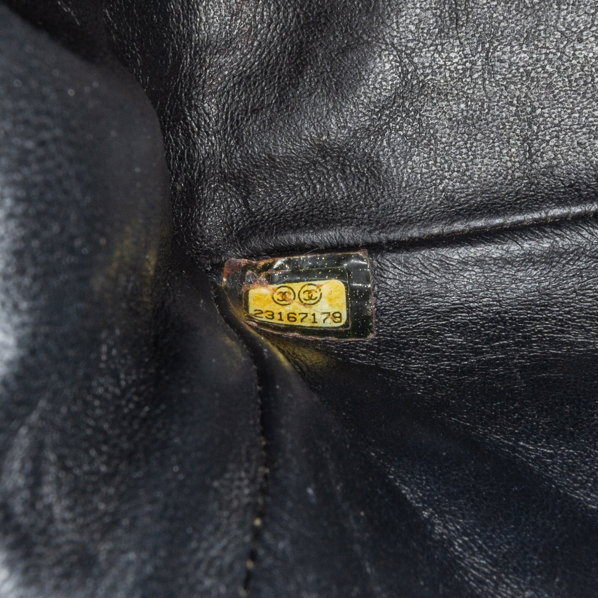 Product Details: Black Chanel Mini Square Classic Patent Single Flap Crossbody Bag. This flap bag features a quilted patent leather body, a leather woven chain shoulder strap, a front flap with interlocking Cs and a twist lock closure, an exterior back slip pocket, and interior zip and slip pockets. 5.3" L x 6.7" W x 2.8" D. Serial number 23167179.