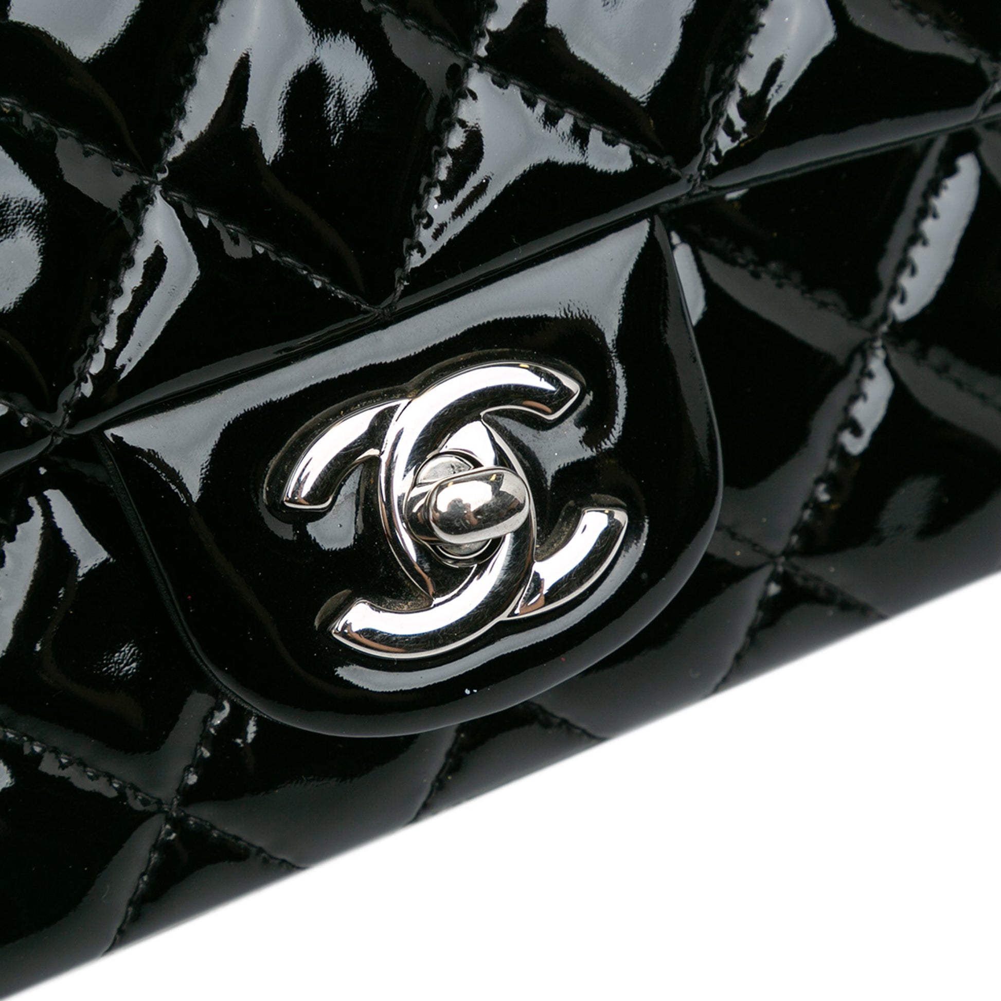 Black Chanel Mini Square Classic Patent Single Flap Crossbody Bag