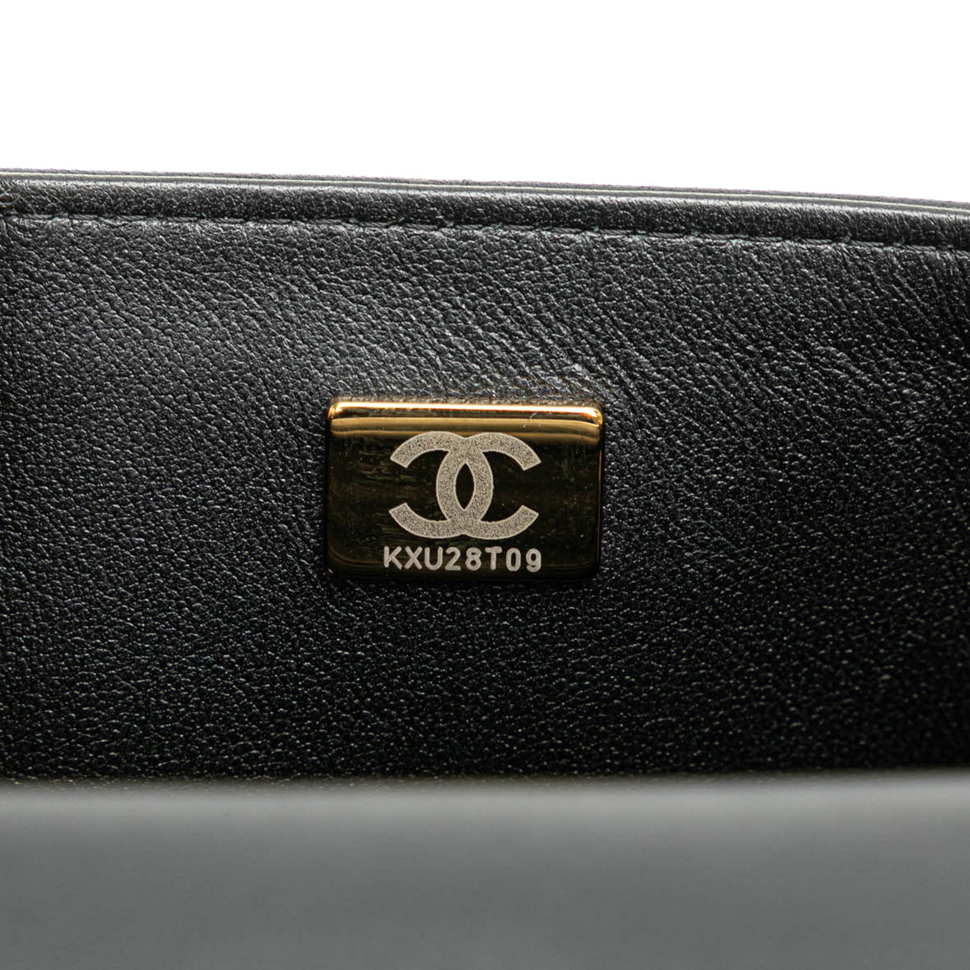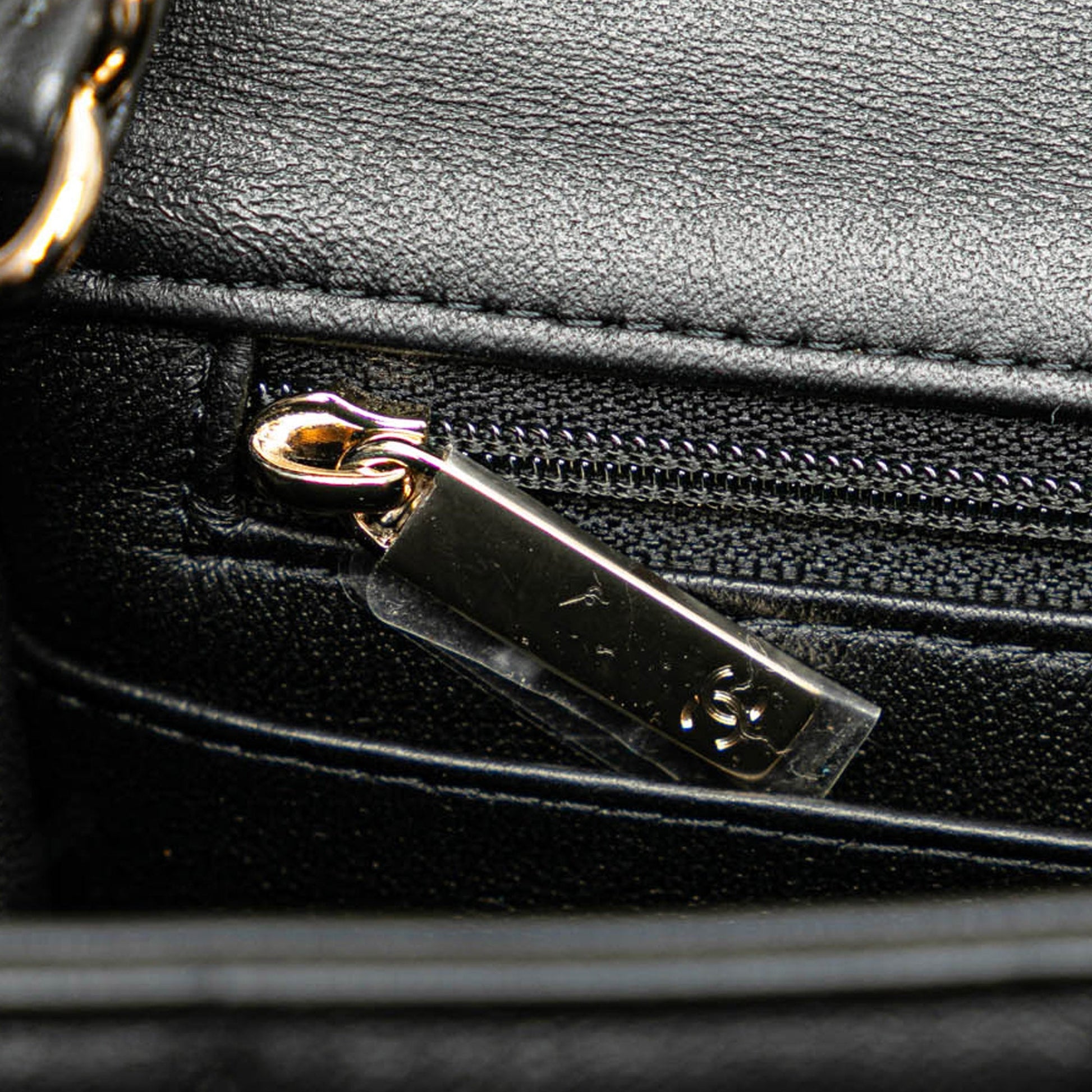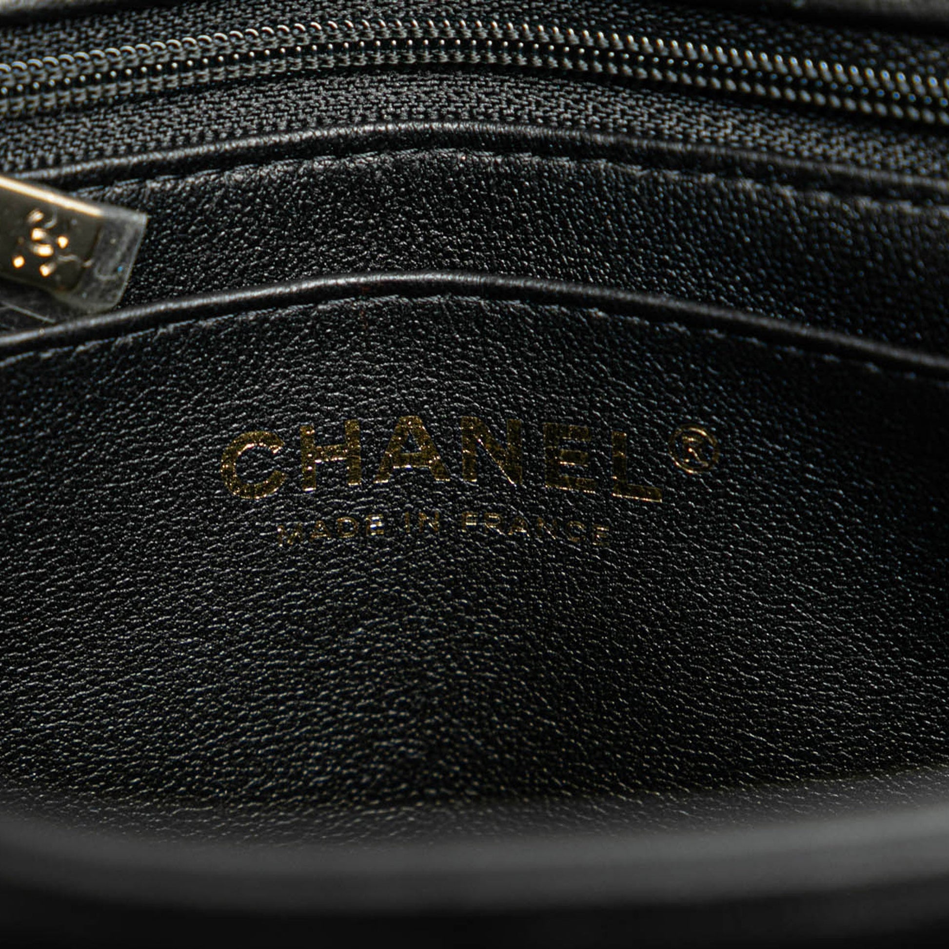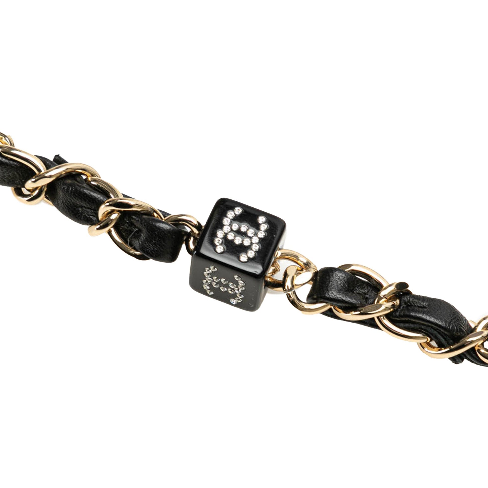 Product Details: Black Chanel Mini Square Lambskin Resin Crystal Monacoco Flap Crossbody Bag. This crossbody bag features a quilted leather body, leather woven chain link strap with resin dice details, a front flap with twist lock closure, an exterior back slip pocket, and interior zip and slip pockets. 5.1" L x 5.9" W x 2.8" D. Serial number KXU28T09.