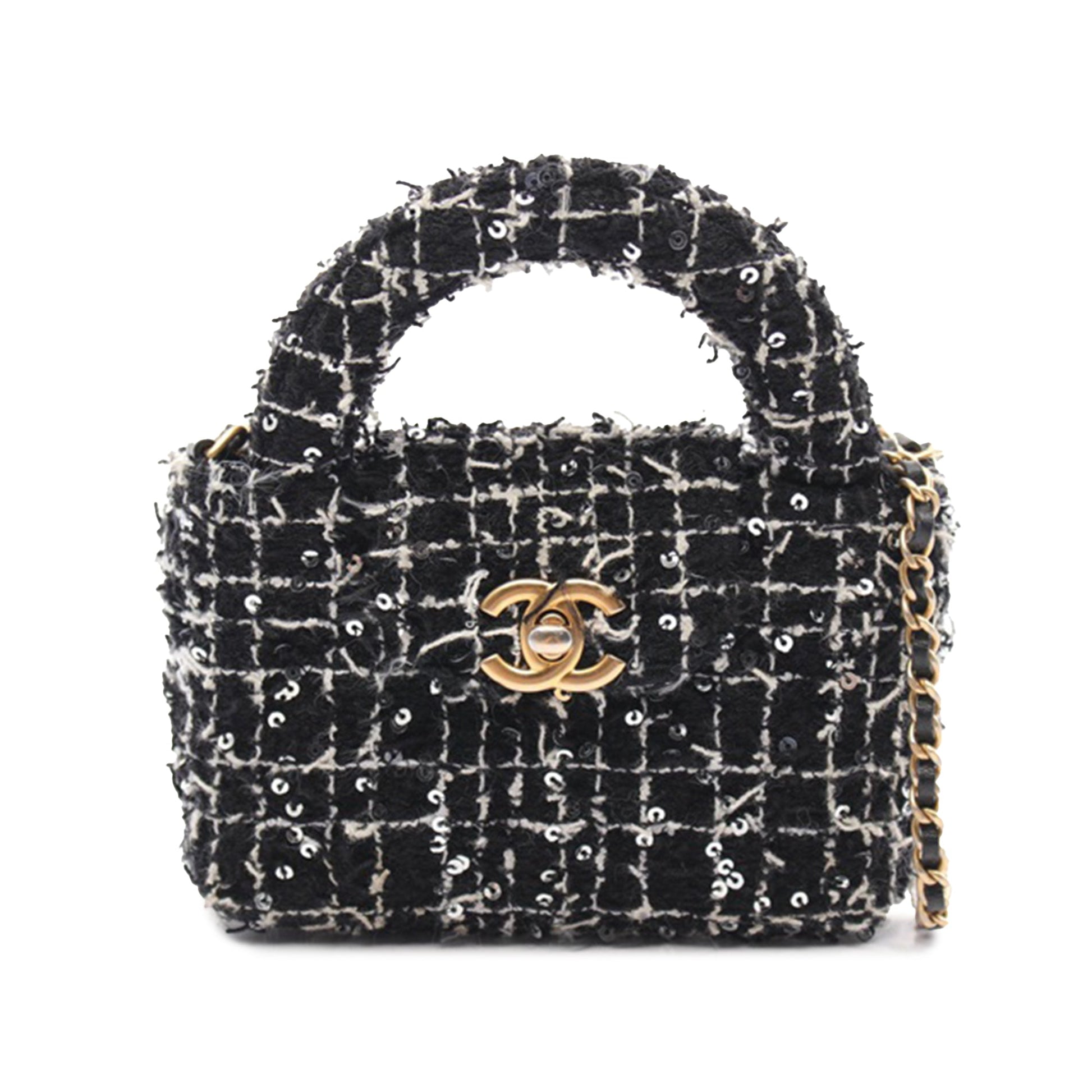 Black Chanel Nano Tweed Kelly Clutch on Chain Satchel