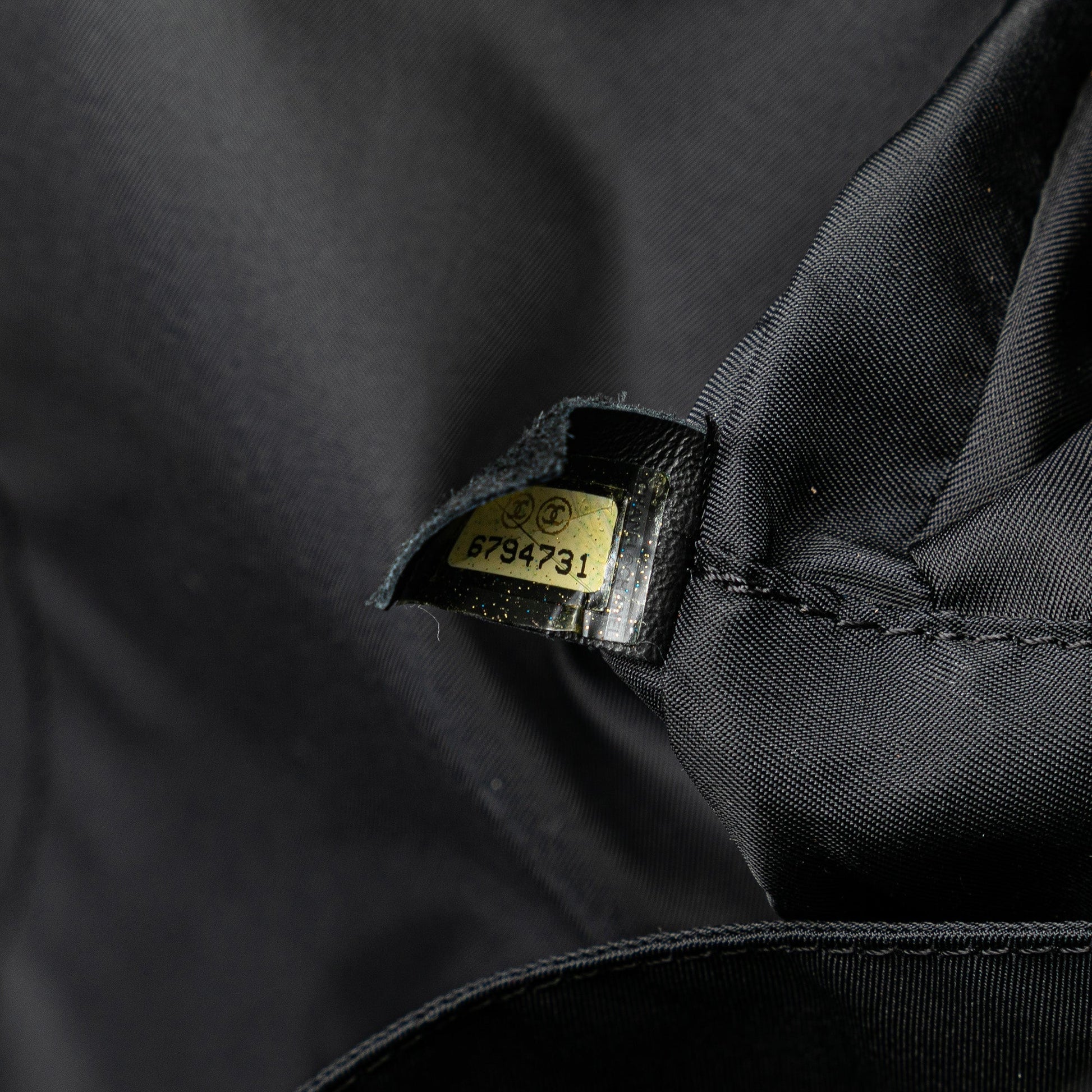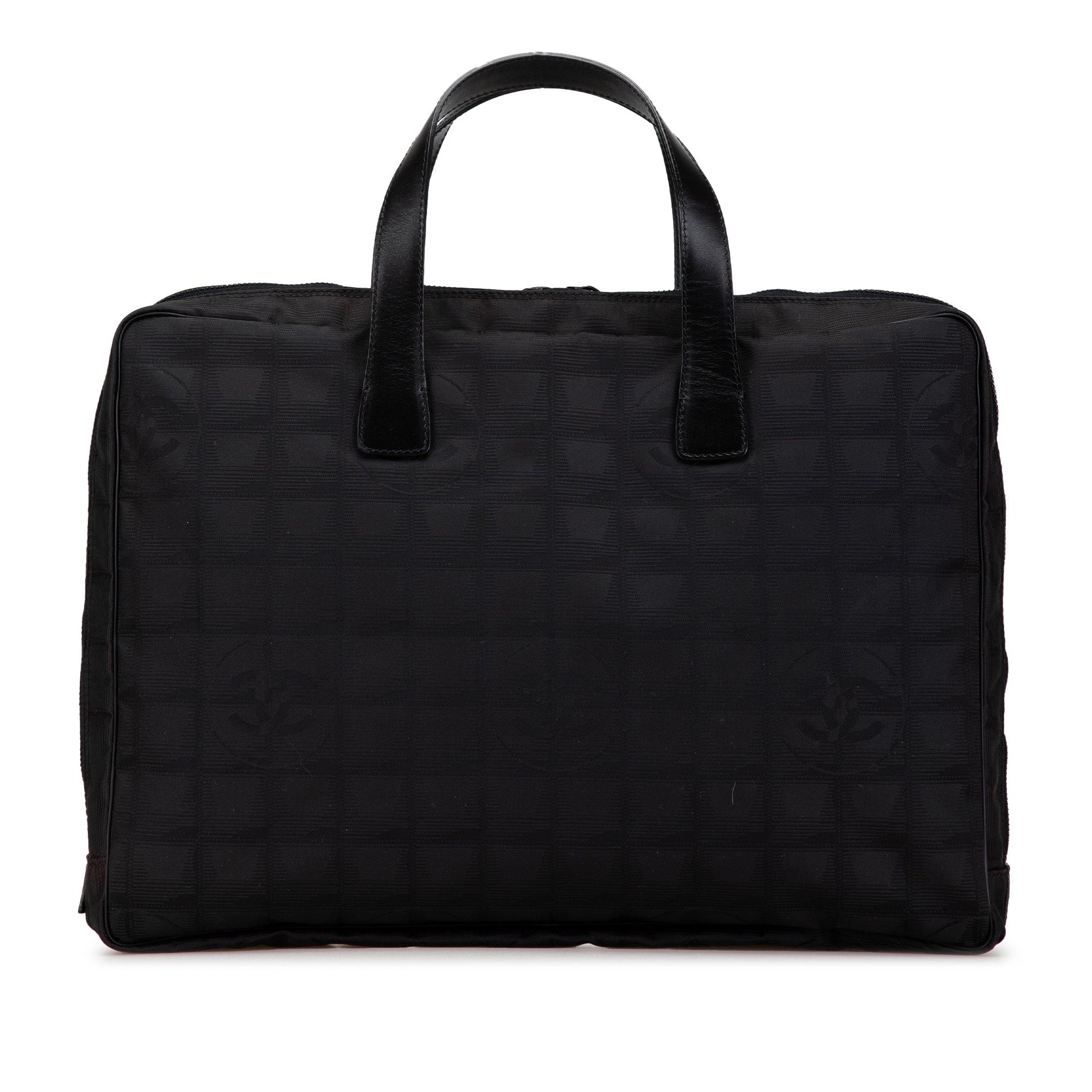 Product Details: Black Chanel New Travel Line Business Bag. This business bag features a nylon body with leather trim, flat leather handles, a top zip closure, and an interior slip pocket. 10.6" L x 14.6" W x 2.2" D, 5.1" drop. Serial number 6794731.
