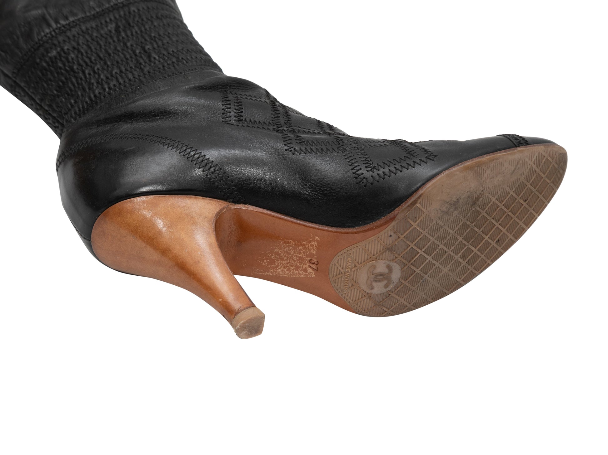Black Chanel Pointed-Toe Knee-High Boots Size 37