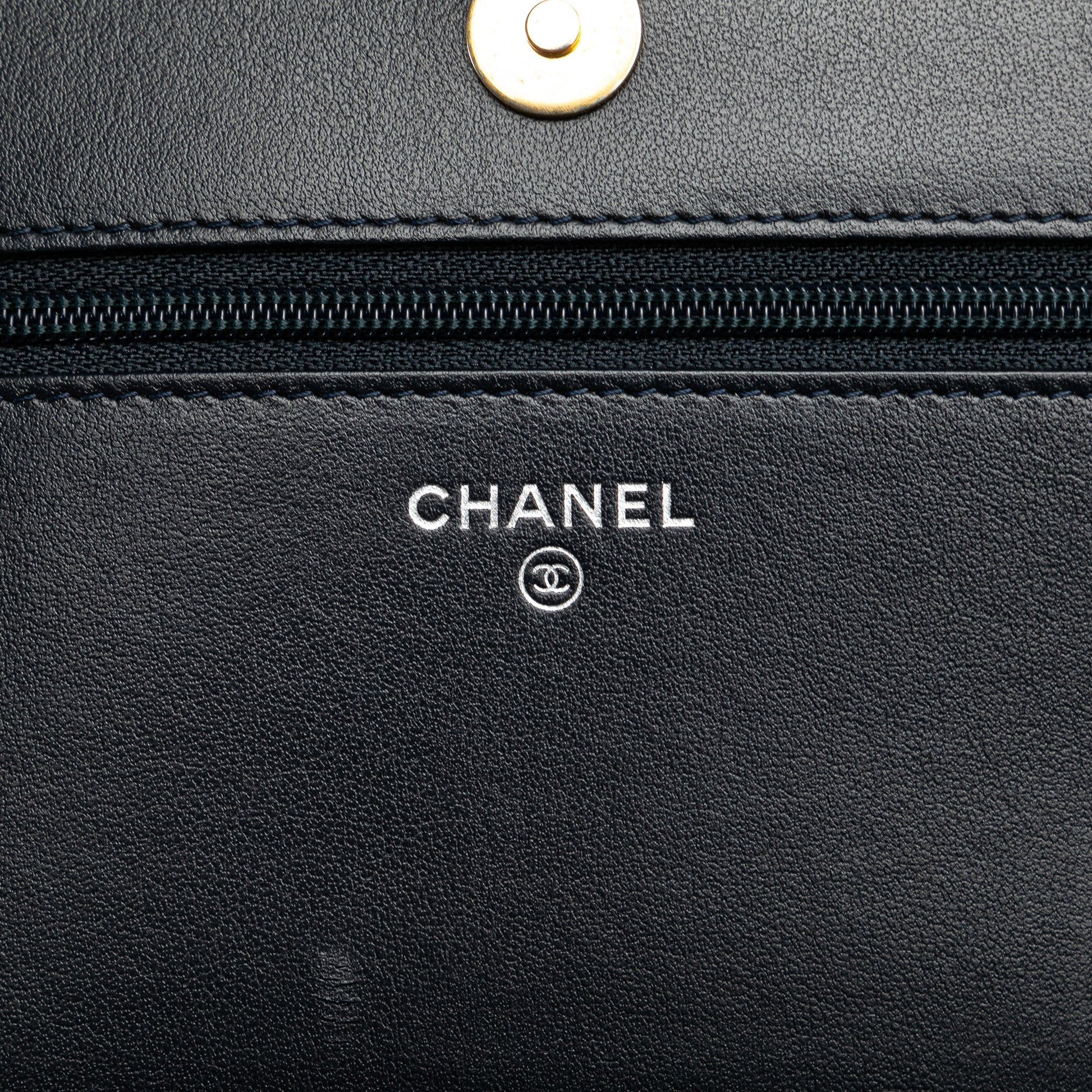 Product Details: Black Chanel Quilted Aged Calfskin Gabrielle Wallet On Chain Crossbody Bag. This wallet on chain features a quilted calfskin leather body, a leather woven chain strap, a front flap with a magnetic closure, interior zip and slip pockets, and interior card slots. 4.9" L x 7.5" W x 1.6" D. Serial number 28333292.