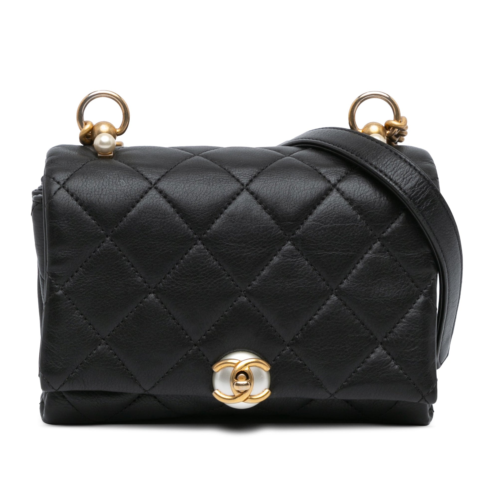 Black Chanel Quilted Calfskin Pearl CC Accordion Flap Crossbody Bag