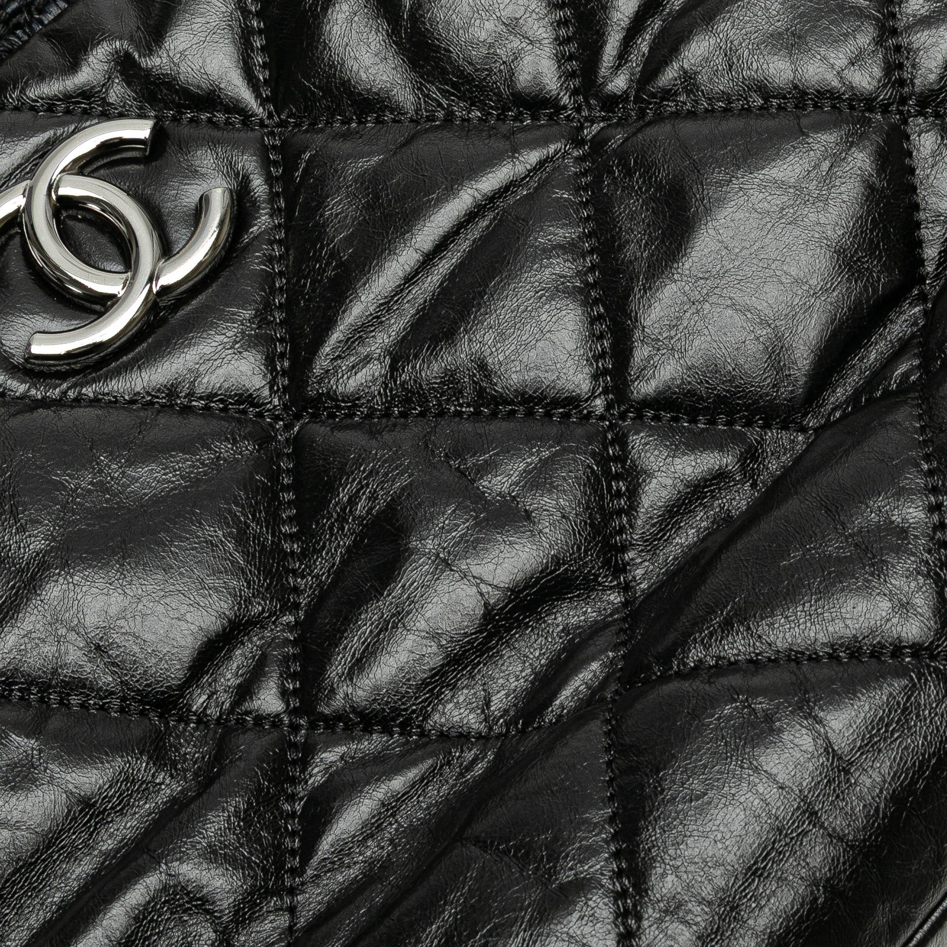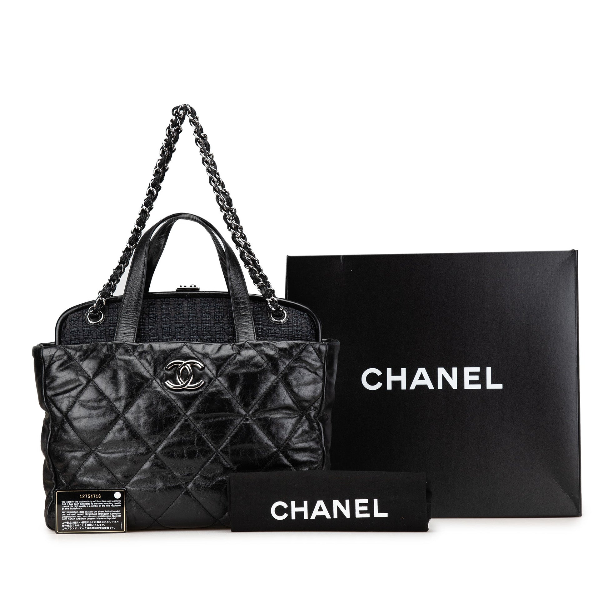 Black Chanel Quilted Glazed Calfskin and Tweed Portobello Frame Satchel