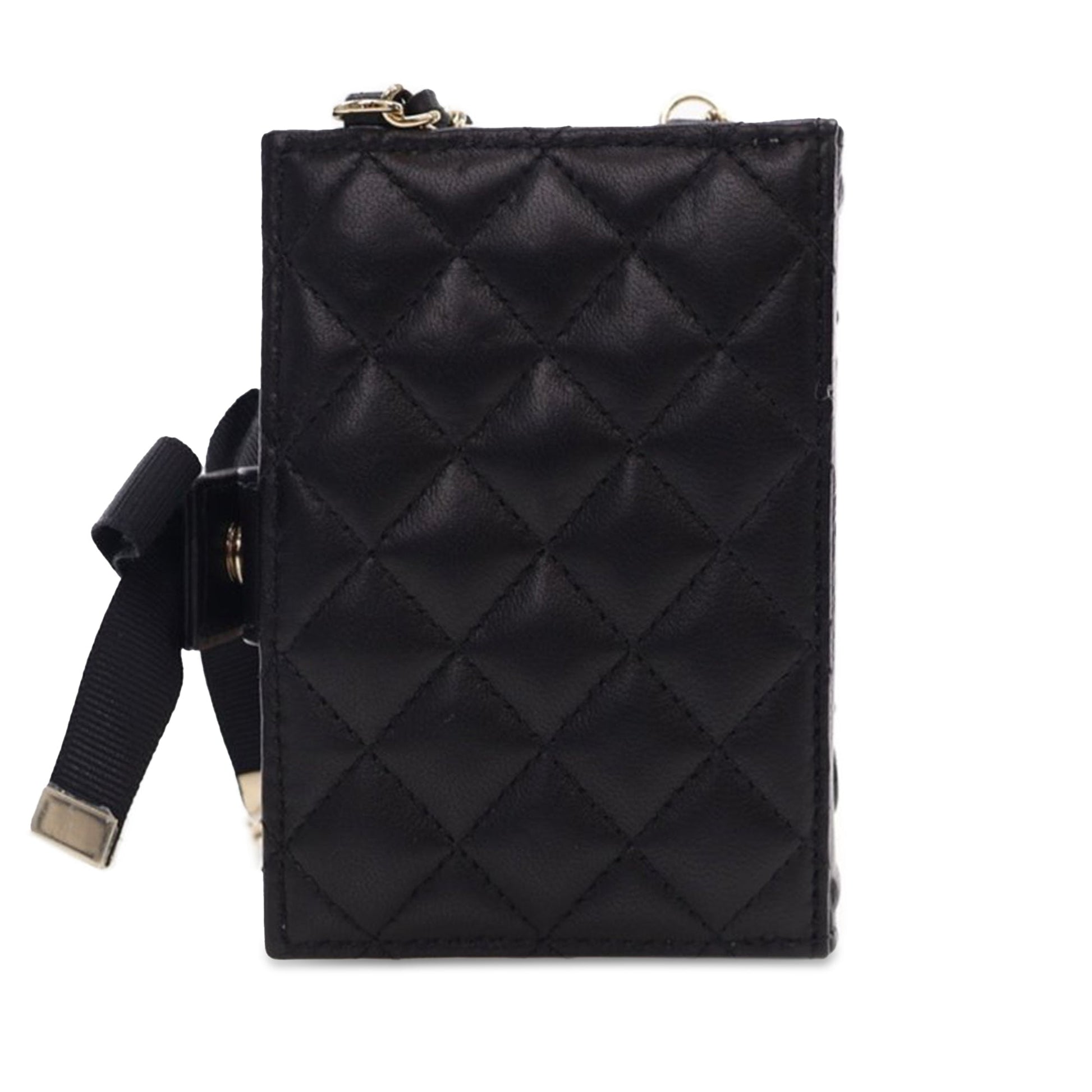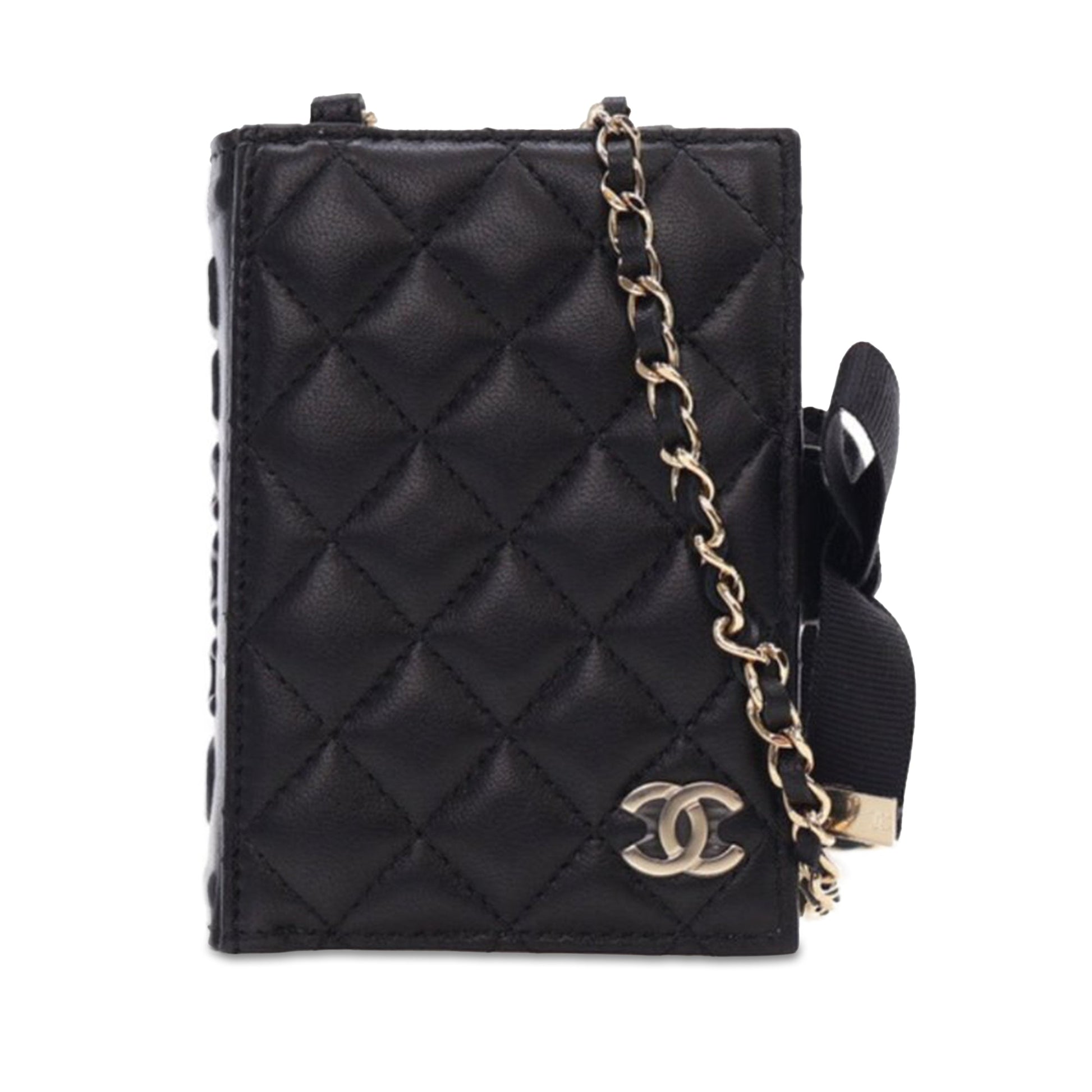 Black Chanel Quilted Lambskin Book Card Holder On Chain Crossbody Bag