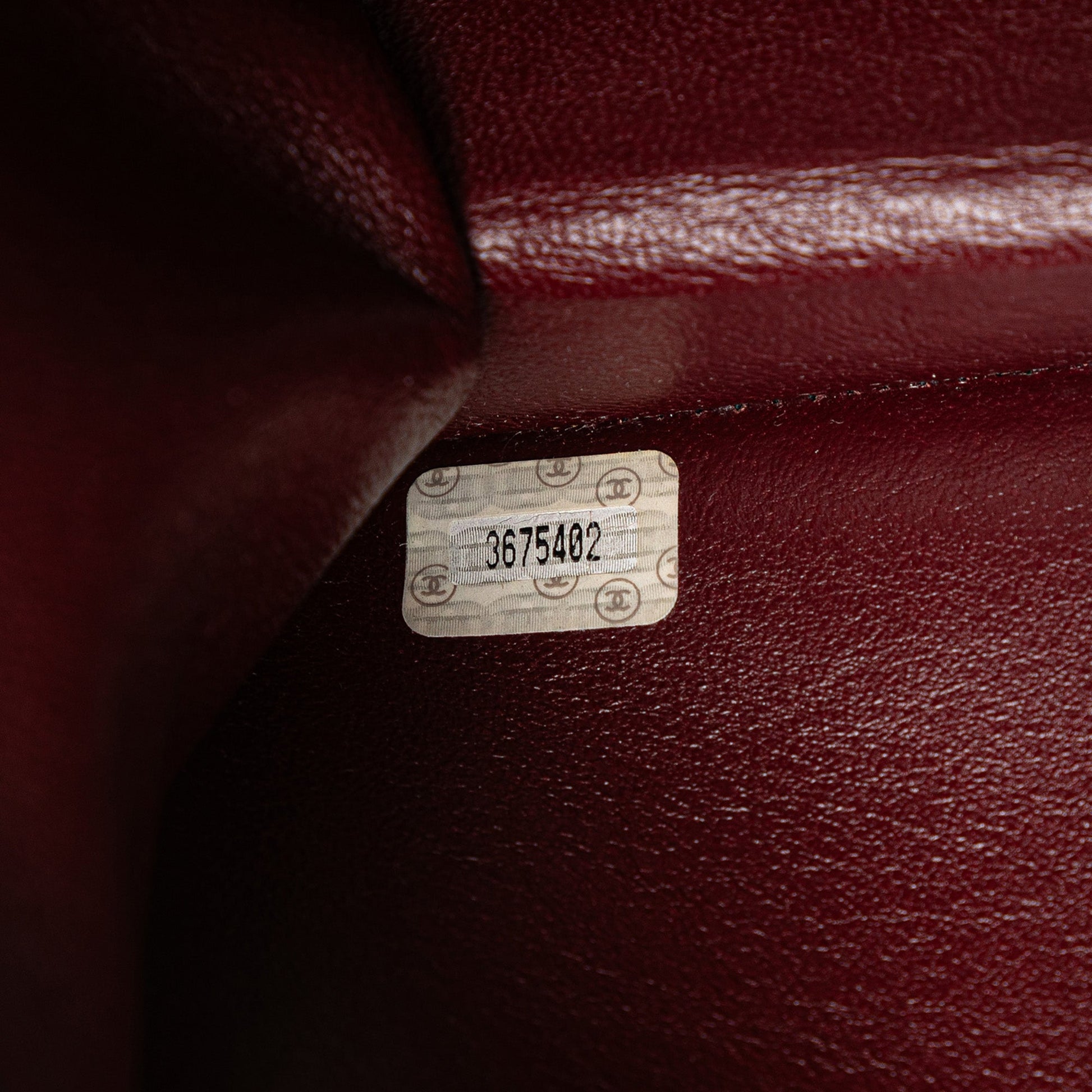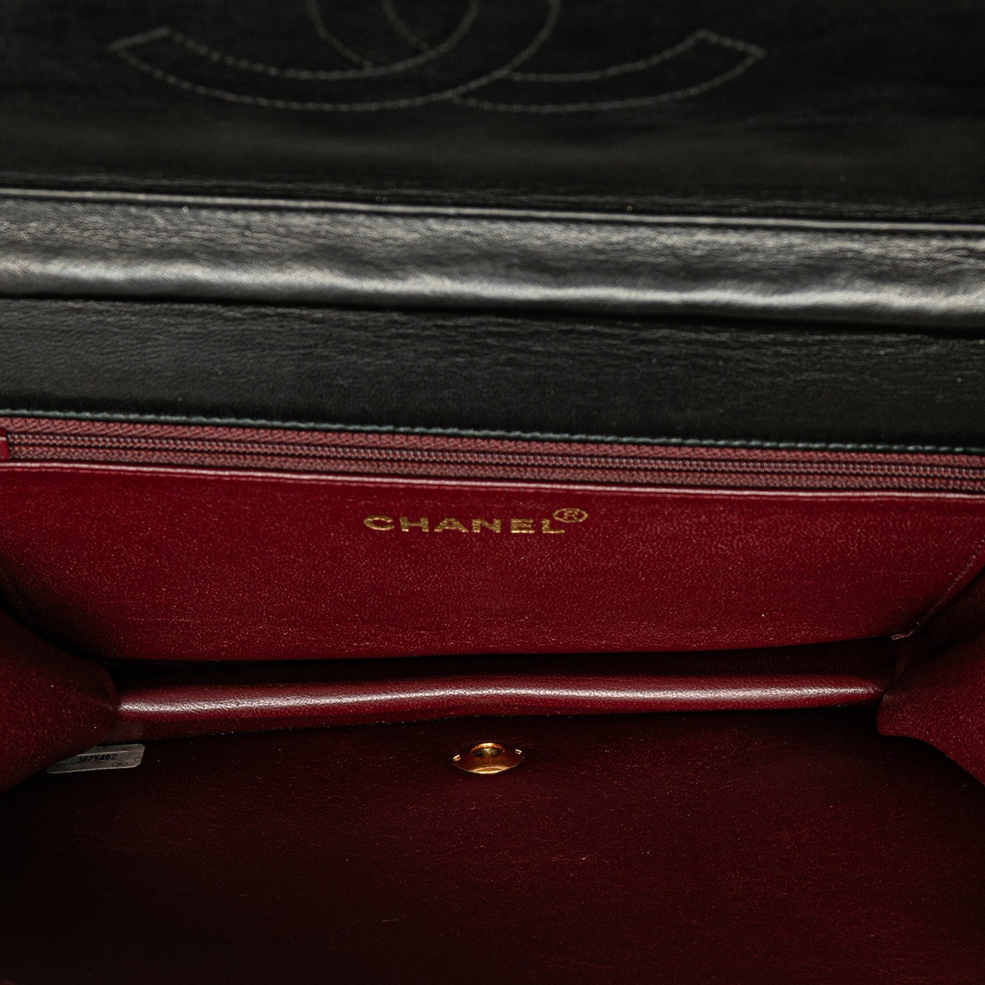 Product Details: Black Chanel Quilted Lambskin CC Full Single Flap Crossbody Bag. This crossbody bag features a quilted lambskin leather body, a leather woven chain link strap, a front flap with CC, and an interior slip pocket. 5.9" L x 9.3" W x 1.8" D. Serial number 3675402.