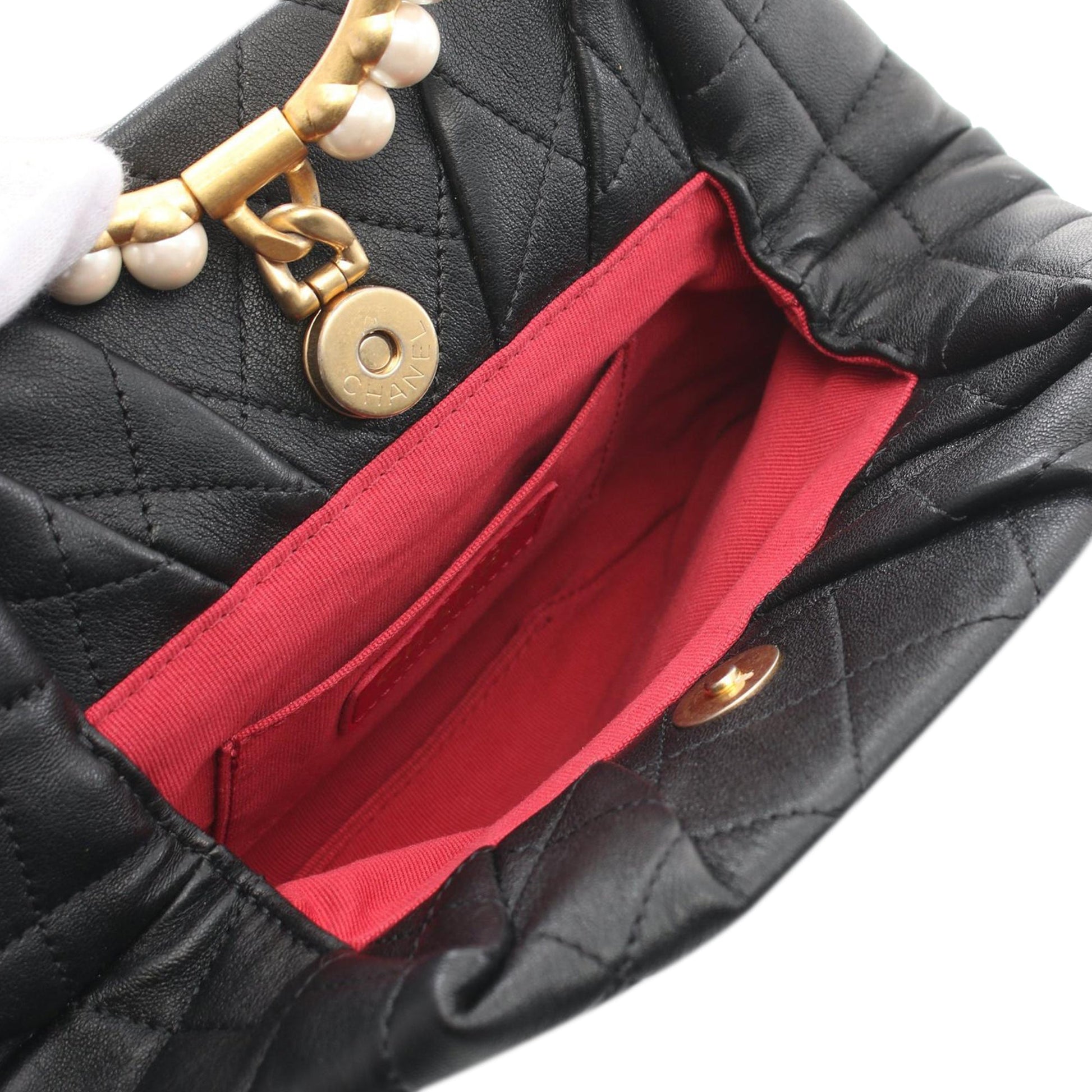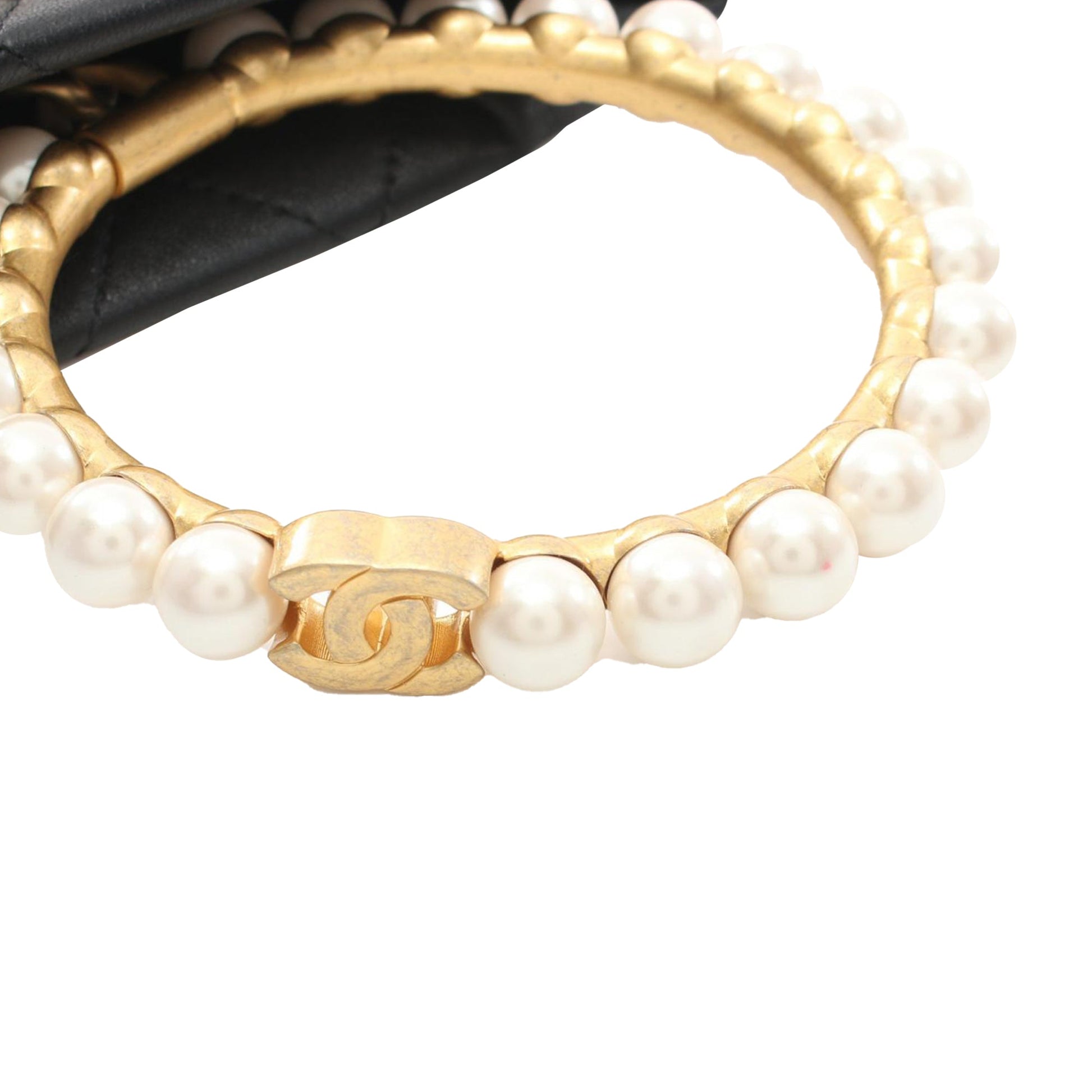 Black Chanel Quilted Lambskin Pearl Crown Handle Clutch Handbag