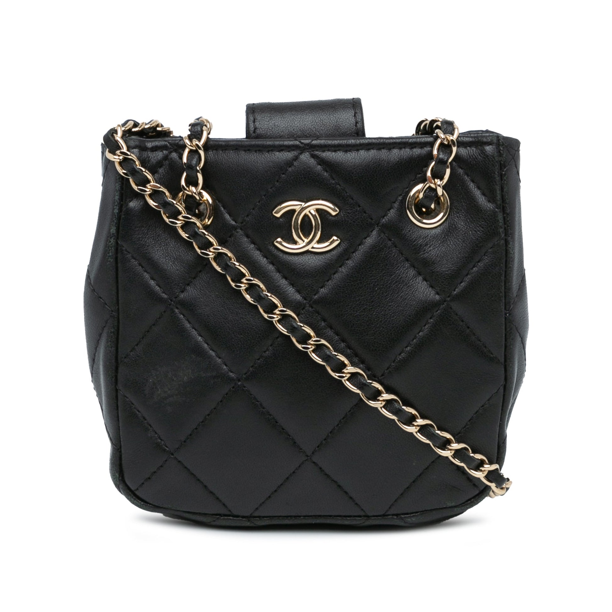 Black Chanel Quilted Lambskin Tiny Shopping Clutch With Chain Crossbody Bag
